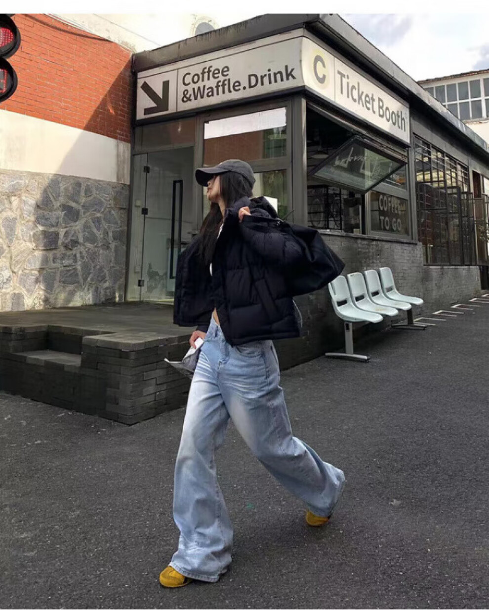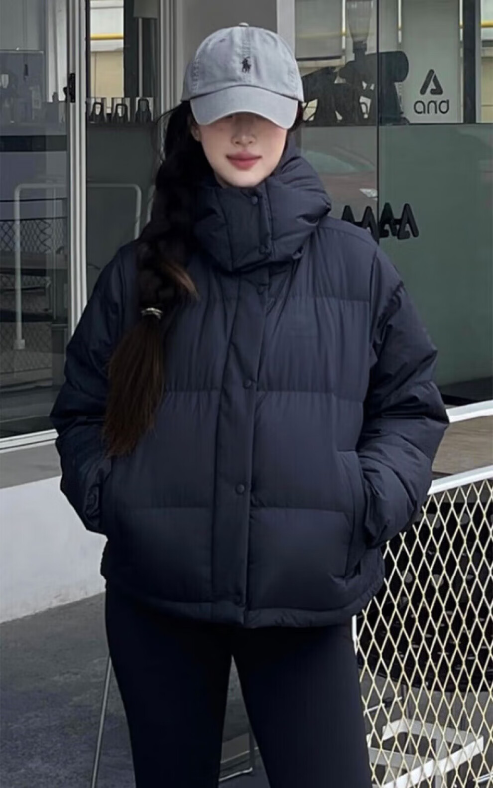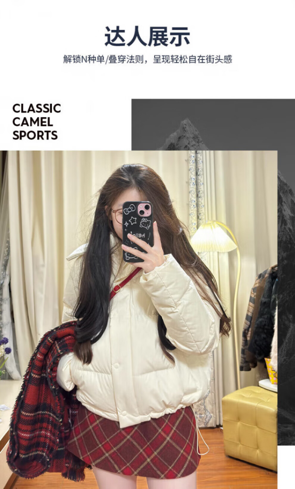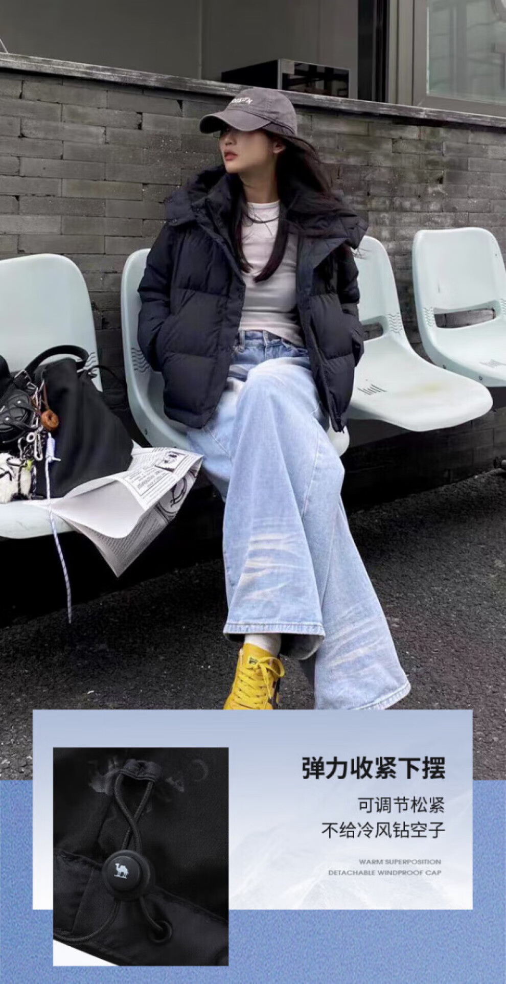 骆驼730高蓬泡芙羽绒服女短款加厚防风御寒保暖蓄热面包服女 C24CY09643A,幻影黑,女 L