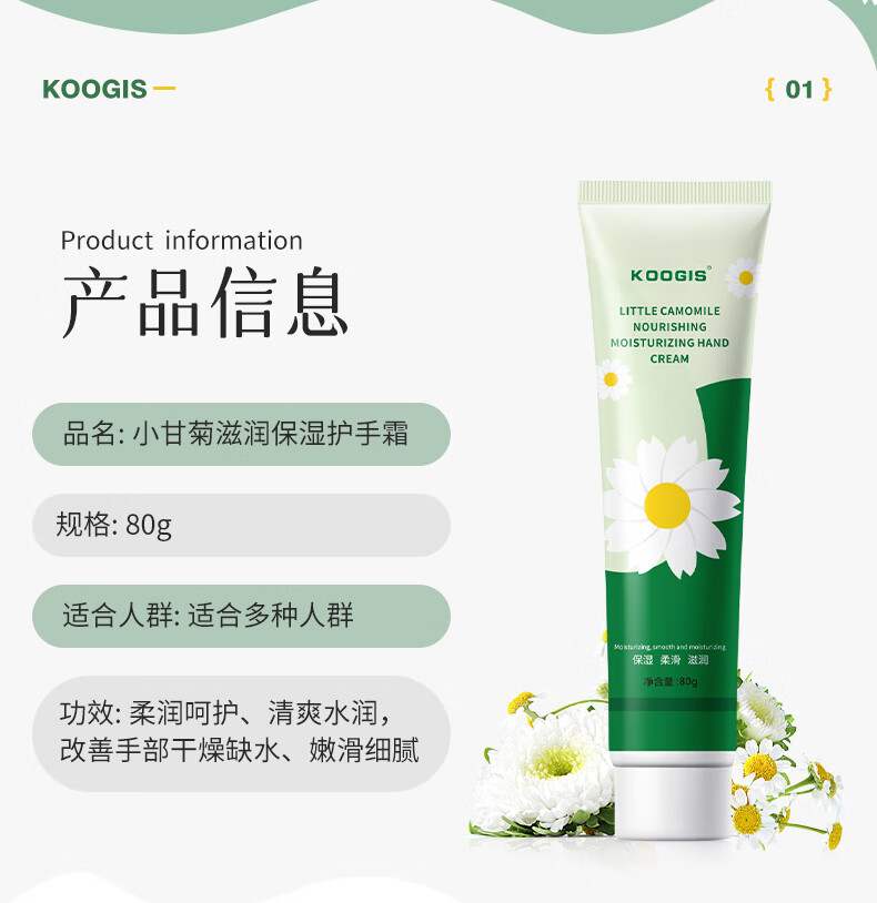 KOOGIS小甘菊护手霜洋甘菊补水保湿滋润防干裂手干燥粗糙防干裂皲裂男女