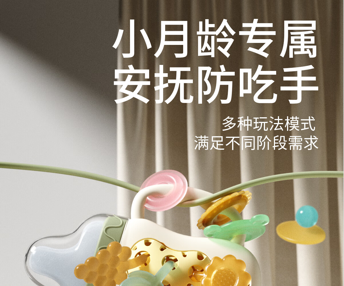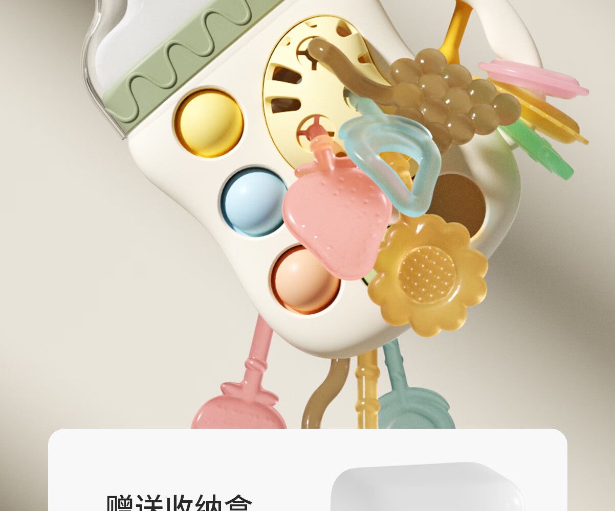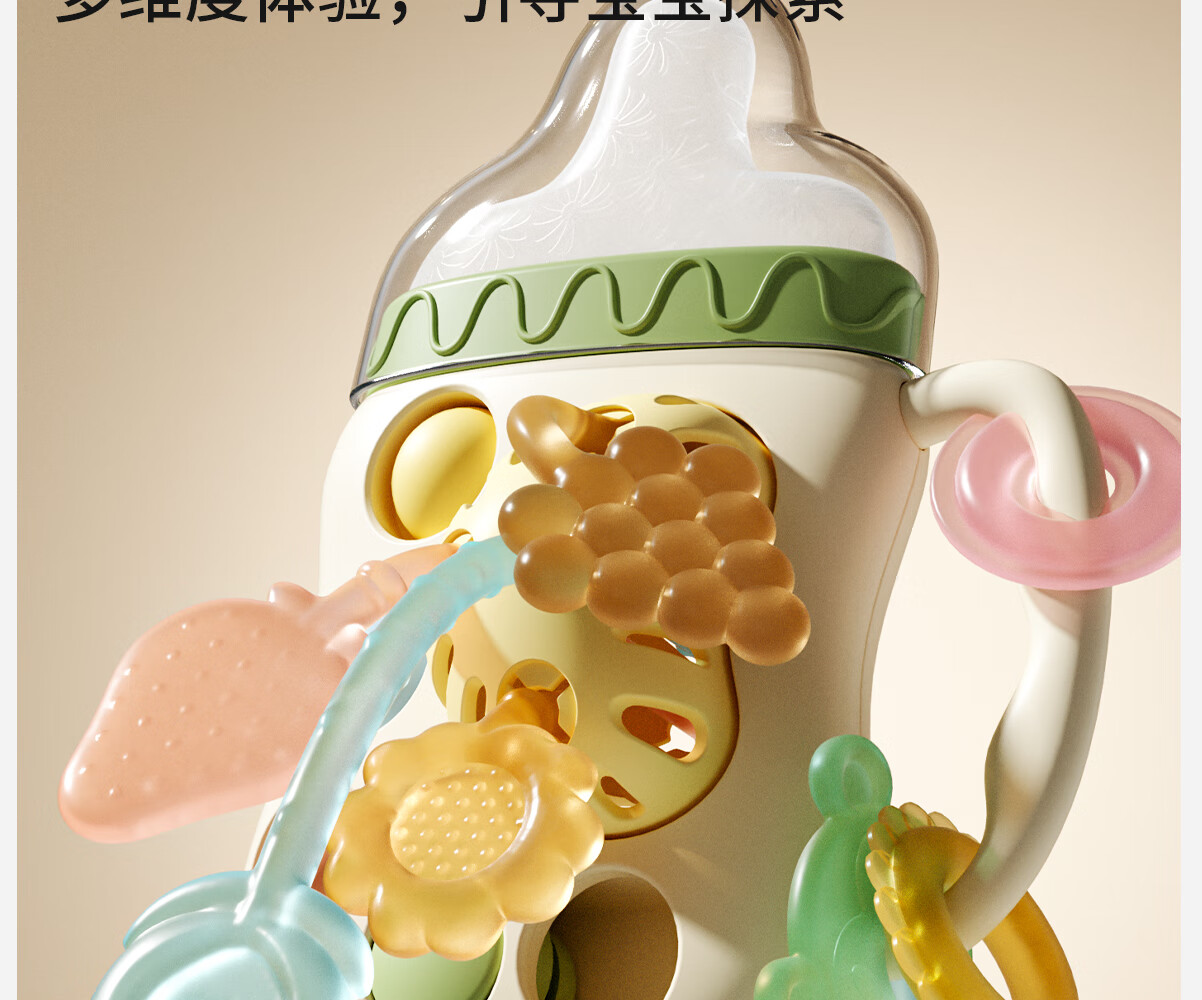 知贝婴儿玩具0-1岁奶瓶拉拉乐可啃咬牙胶6安抚挂件新生儿8抓握抽抽乐 升级版|硅胶奶嘴+拉条+吊绳 宝宝专注力训练周岁满月礼物