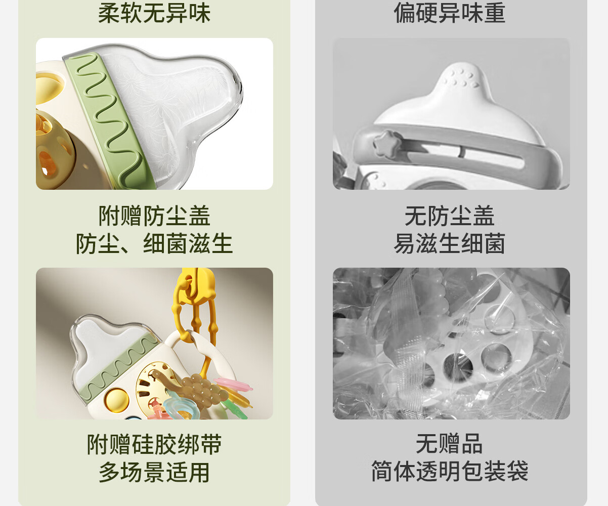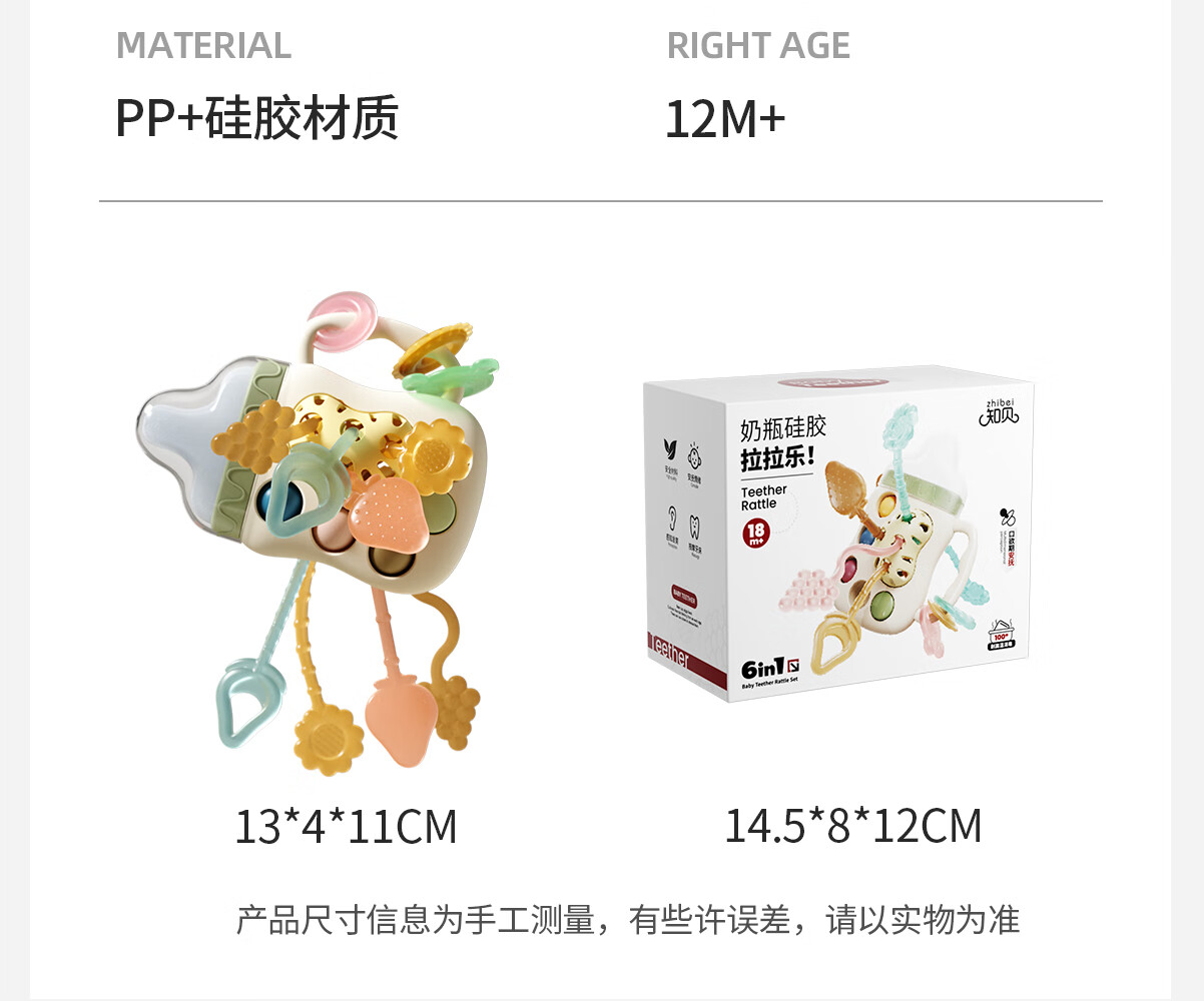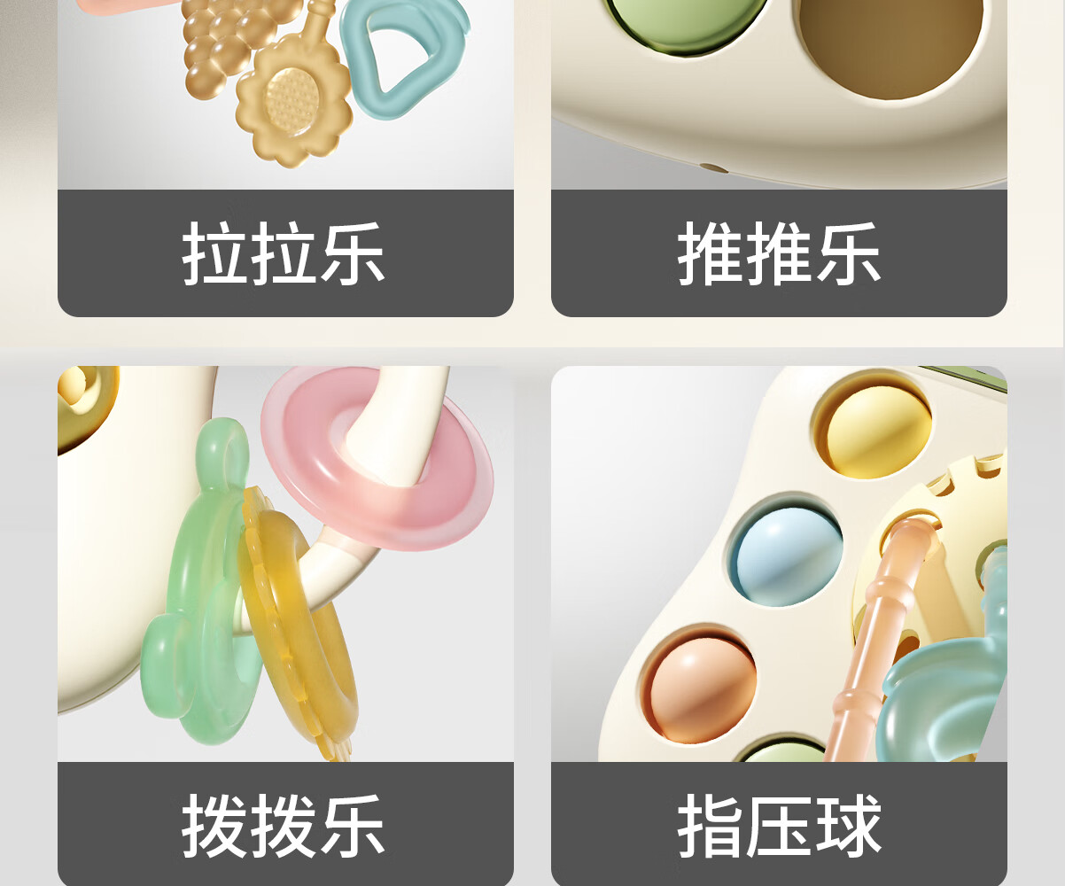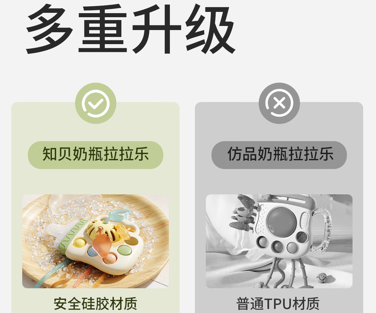 知贝婴儿玩具0-1岁奶瓶拉拉乐可啃咬牙胶6安抚挂件新生儿8抓握抽抽乐 升级版|硅胶奶嘴+拉条+吊绳 宝宝专注力训练周岁满月礼物