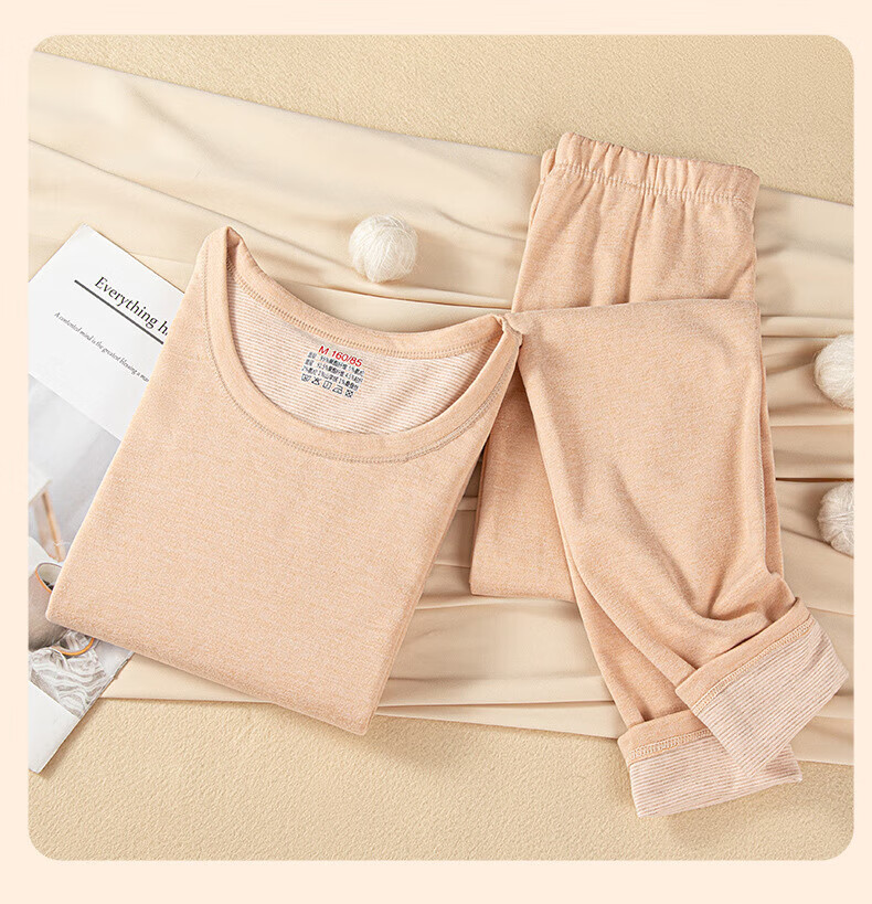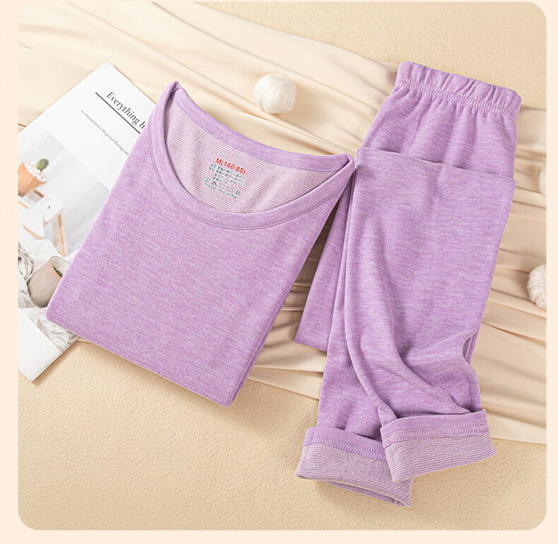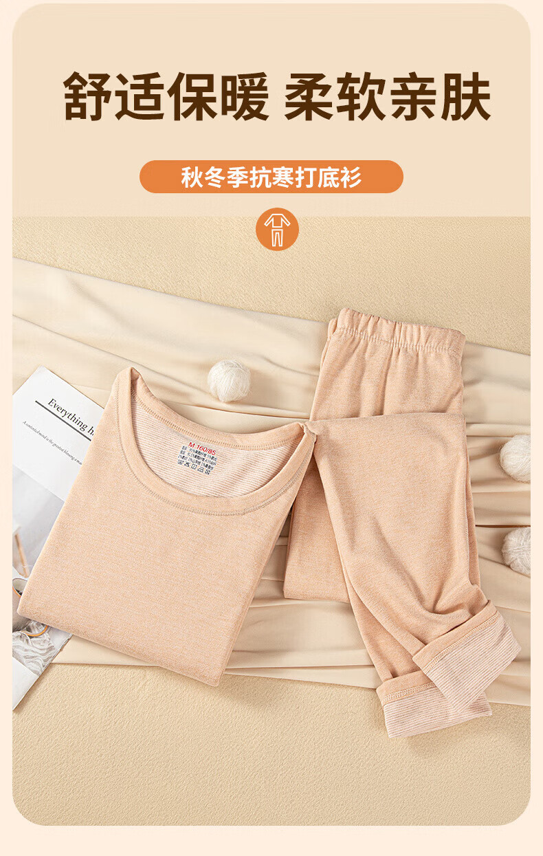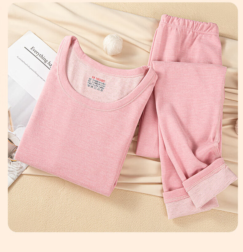 有只绵双面绒无痕保暖男内衣套装女士秋衣秋裤冬季打底情侣保暖内衣 女款山羊绒蚕丝粉色 XL