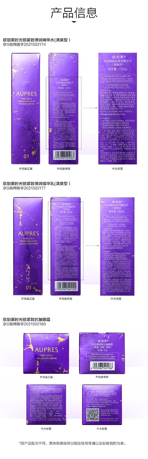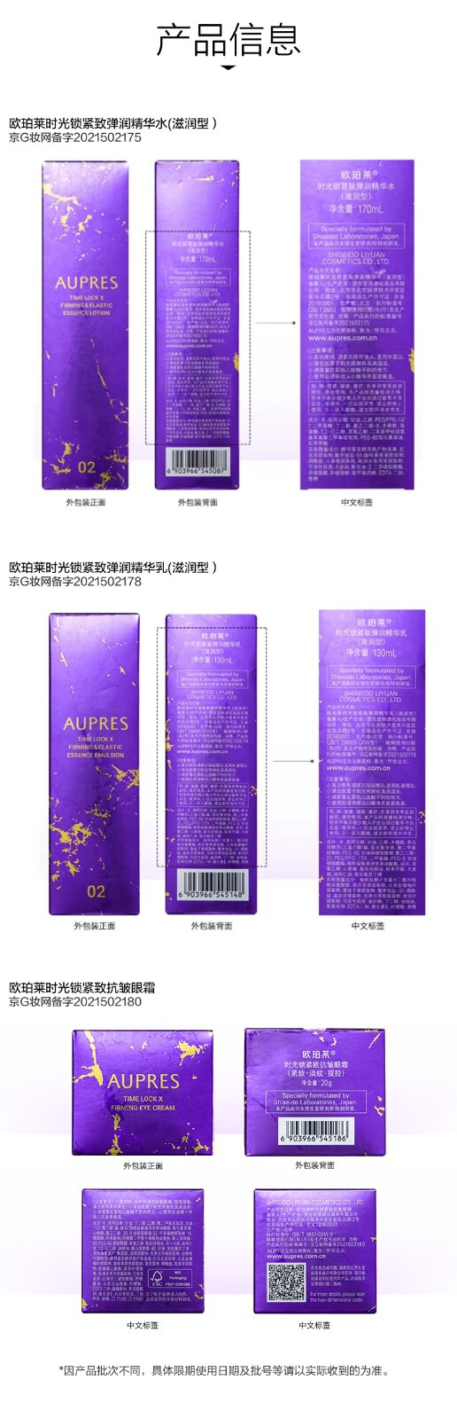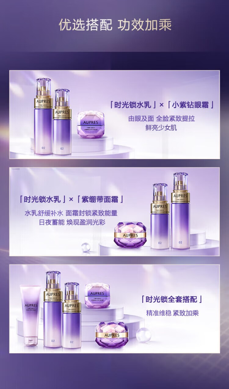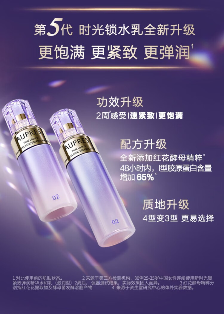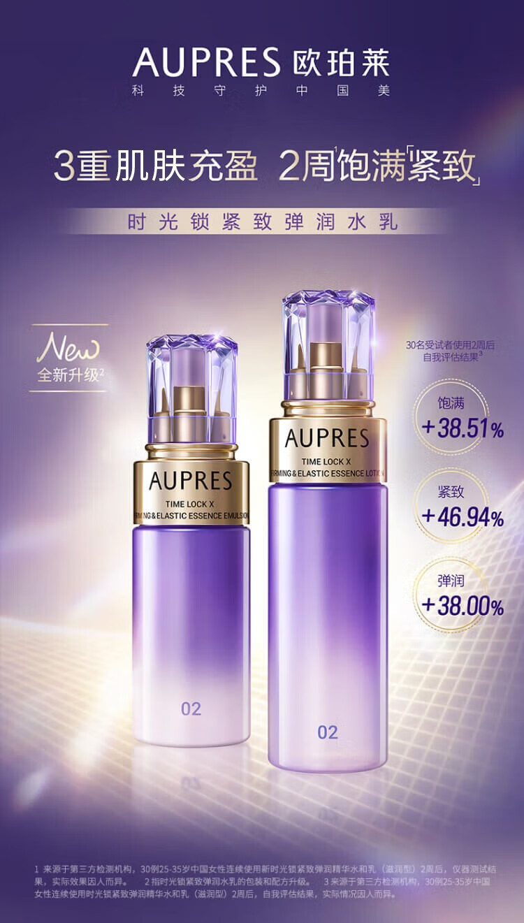 欧珀莱(AUPRES)生日礼物送妈妈保湿紧致时光锁5代水乳洁面眼霜套装 含补充装 滋润型水乳+眼霜25g+洁面 4件套