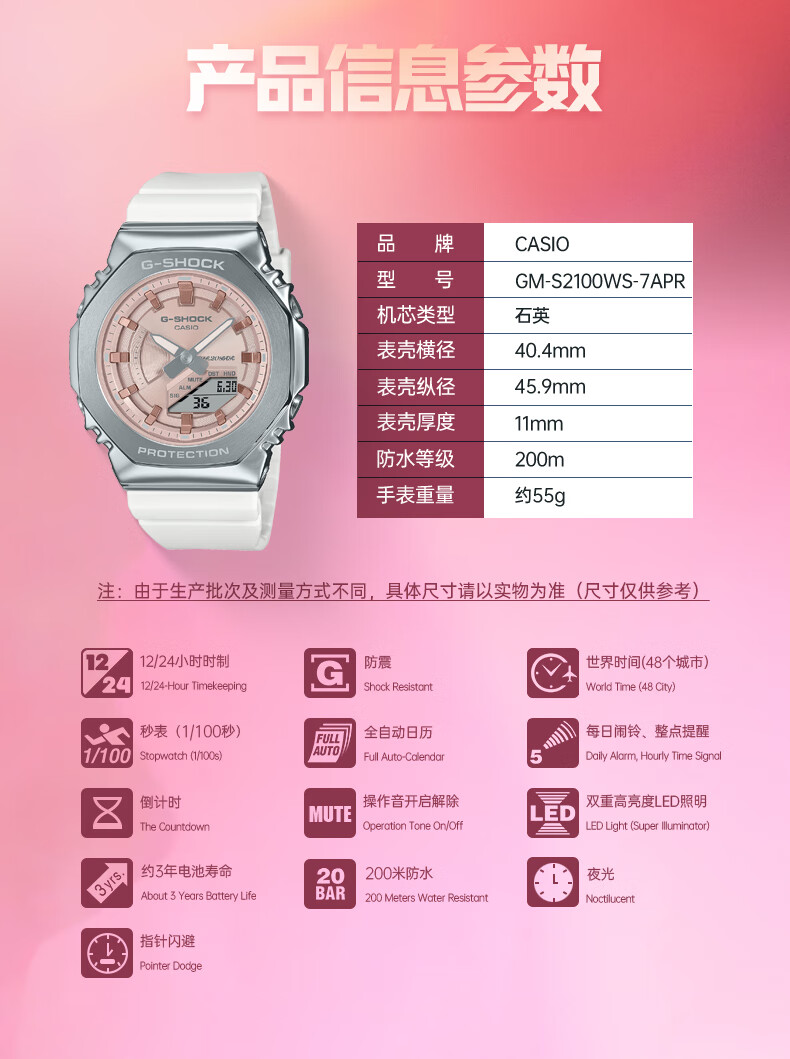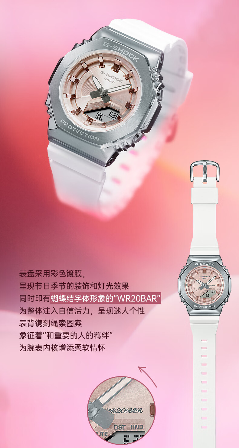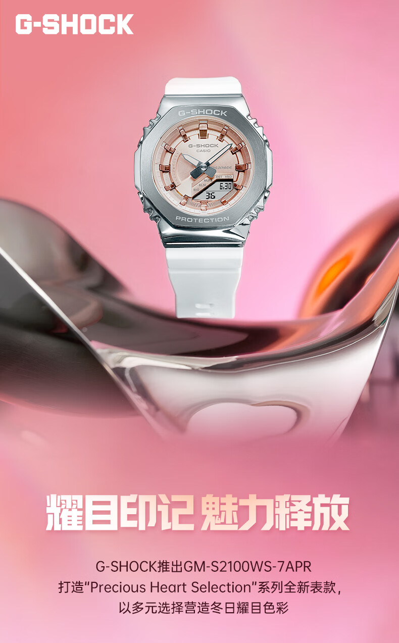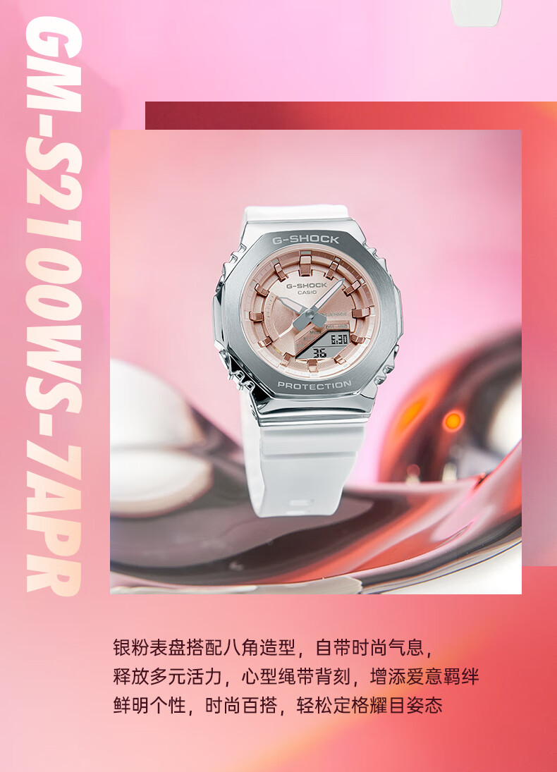 卡西欧(CASIO)G-SHOCK 冬日璀璨主题 GMA-S2100运动女士手表防水手表 送女友 GM-S2100WS-7APR