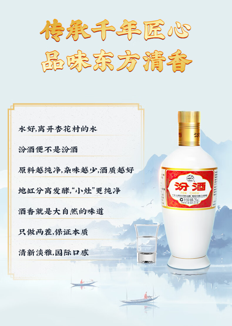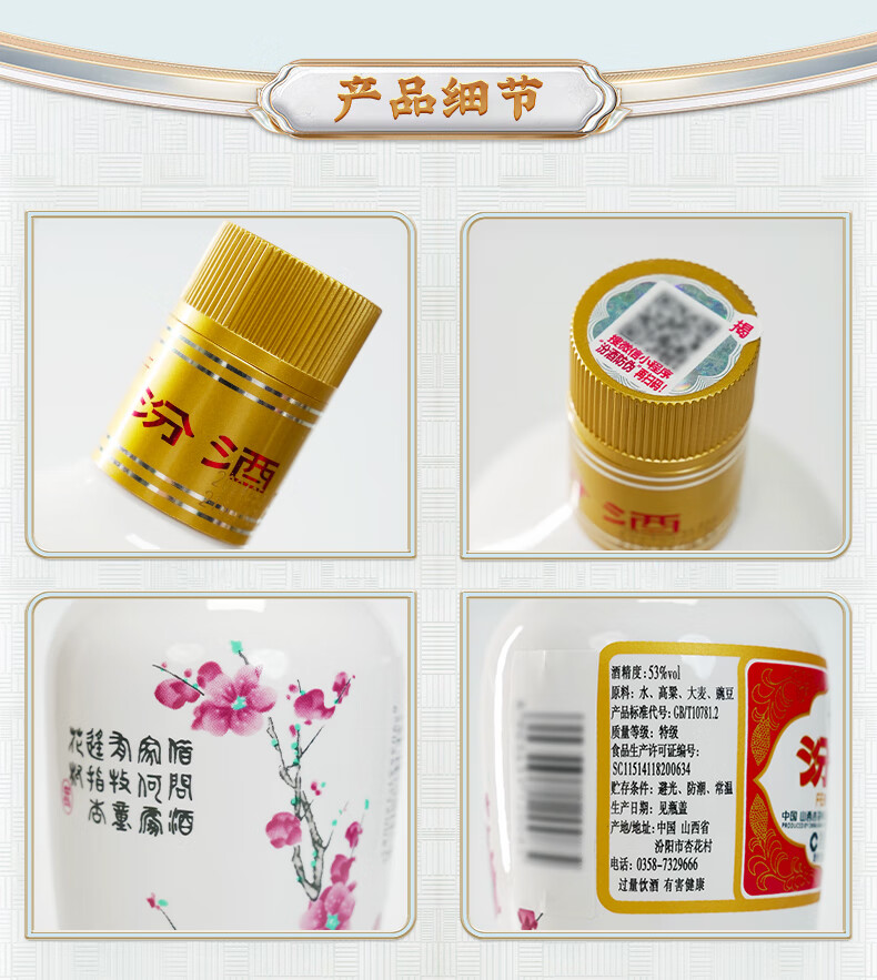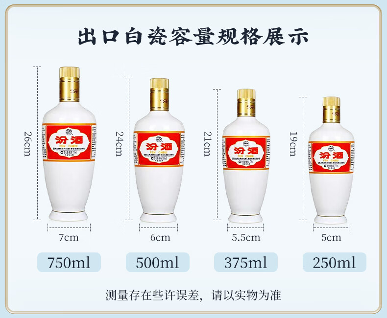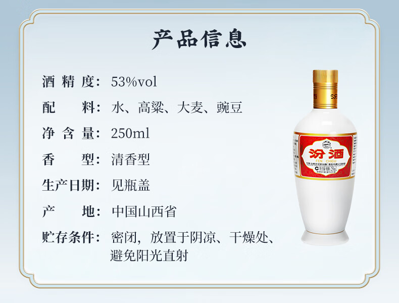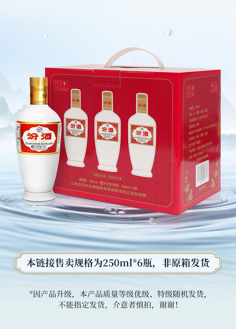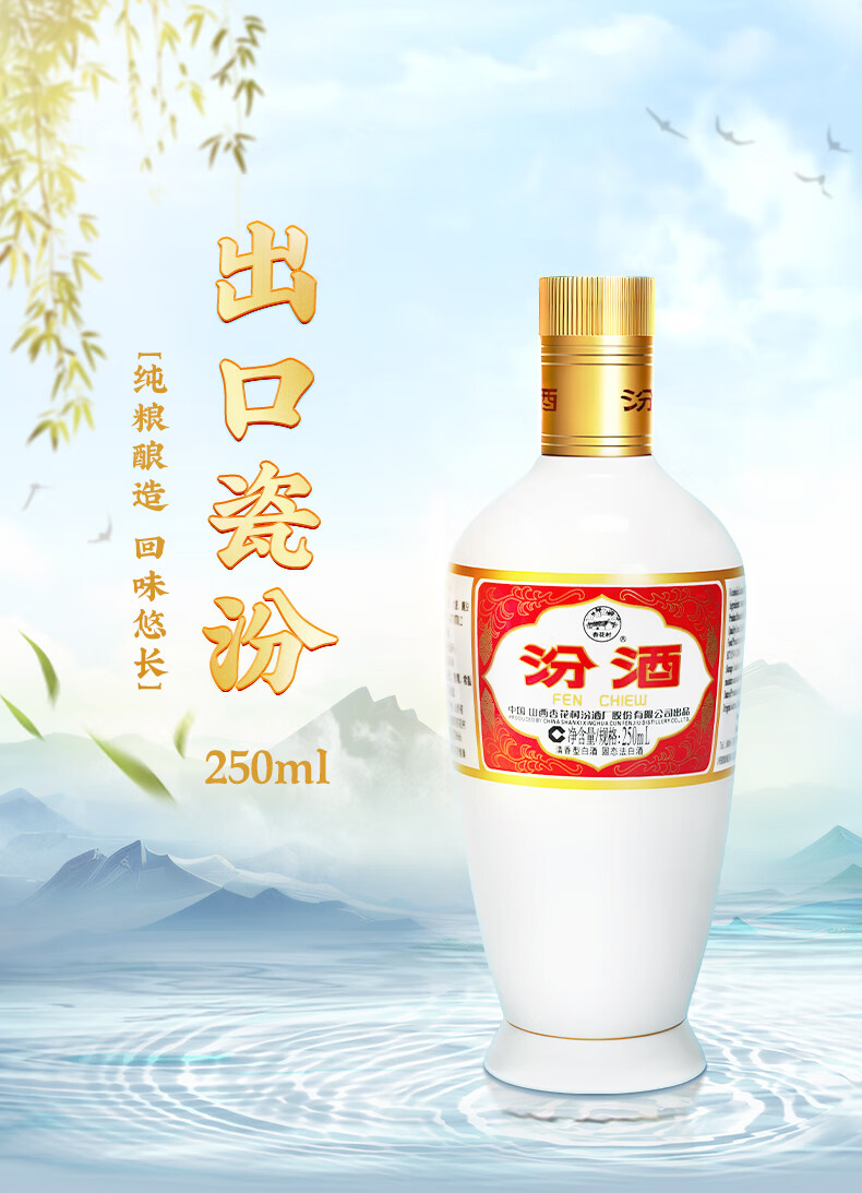 汾酒 出口白瓷 清香型白酒 53度 250mL*6瓶 箱装 非原箱发货 宴请礼赠