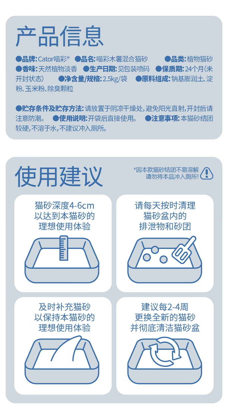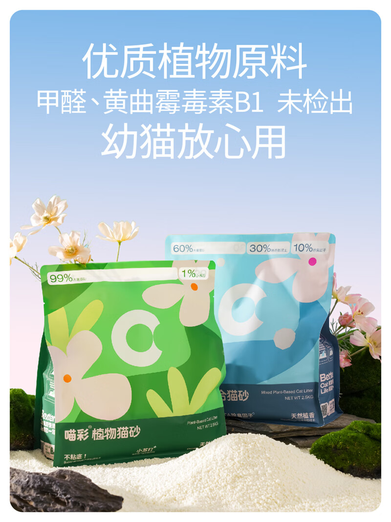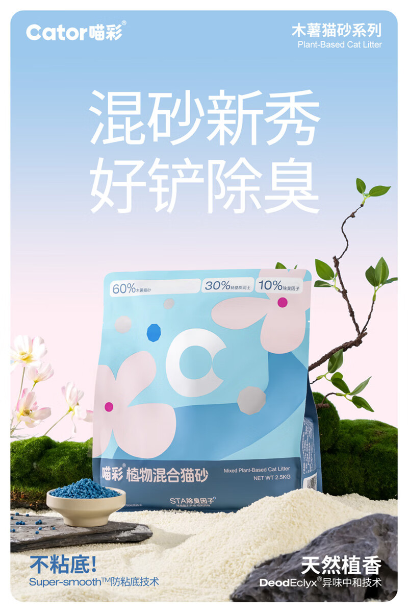 喵彩植物木薯膨润土混合猫砂除臭强吸水不沾底 4包【20斤】囤货更优惠
