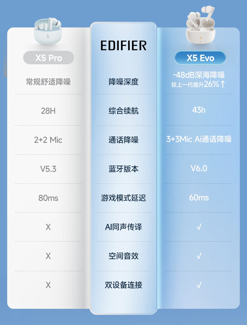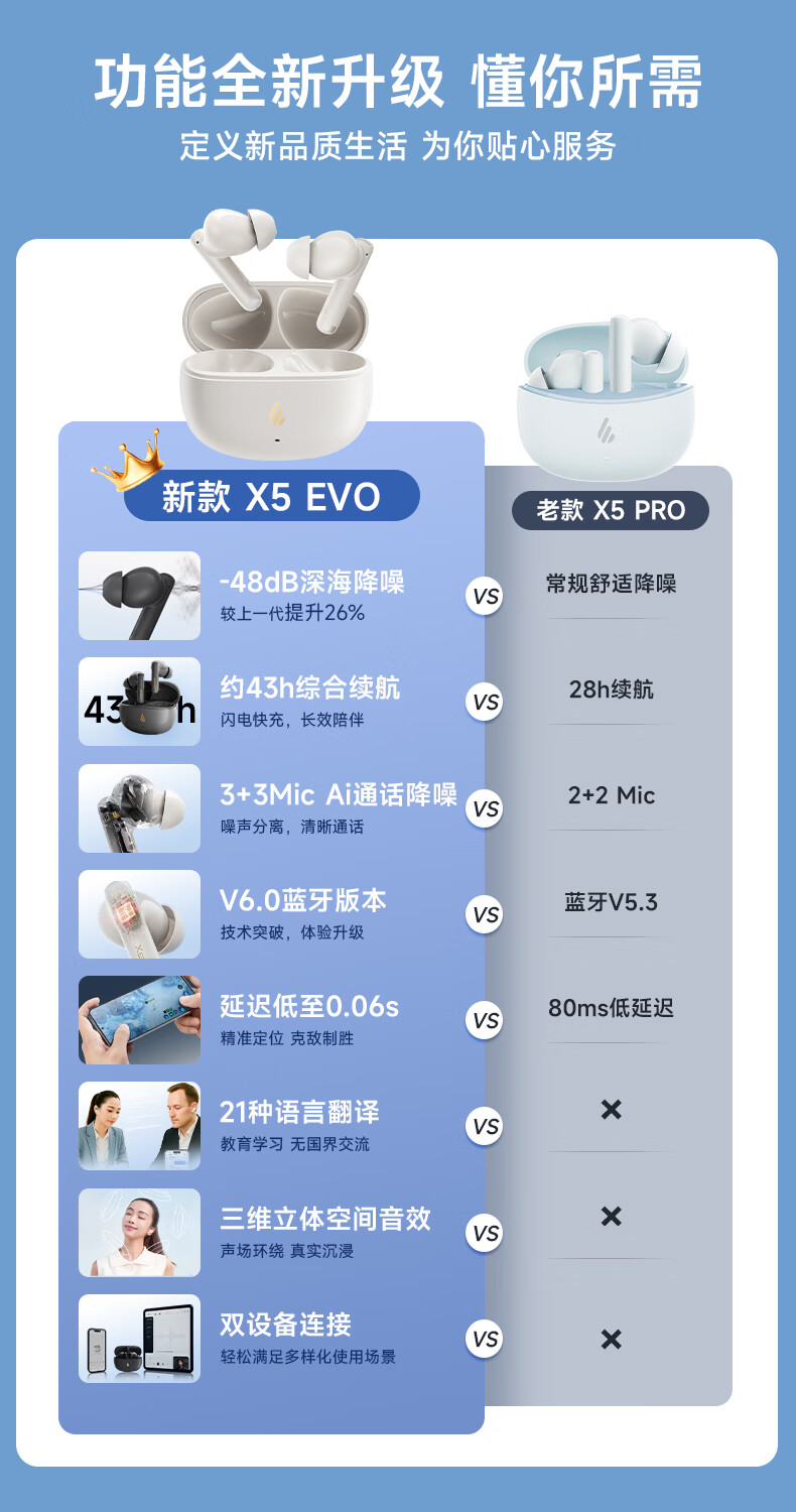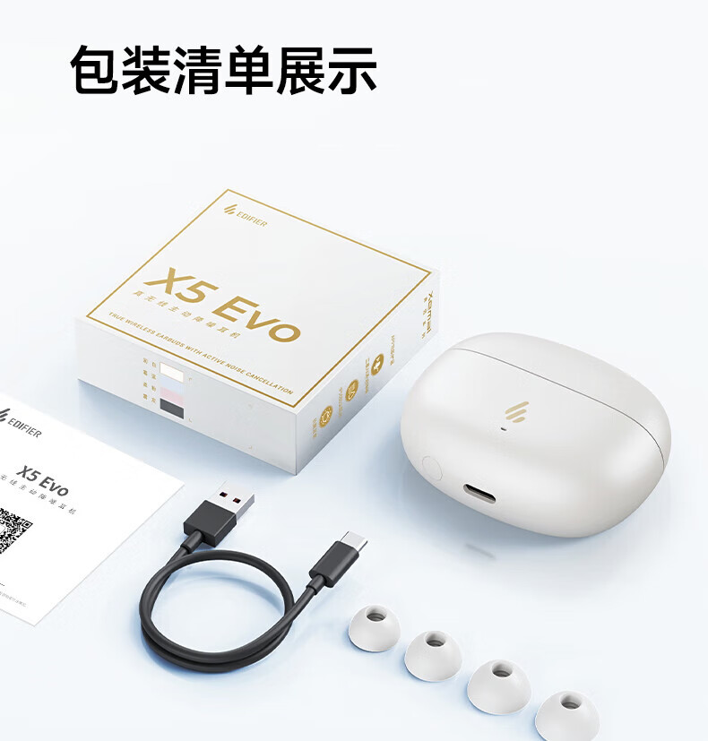 漫步者(EDIFIER)X5 Evo蓝牙耳机Pro升级版主动降噪入耳式无线Ai翻译耳麦游戏2025最新款超长续航适配苹果华为小米 润白色