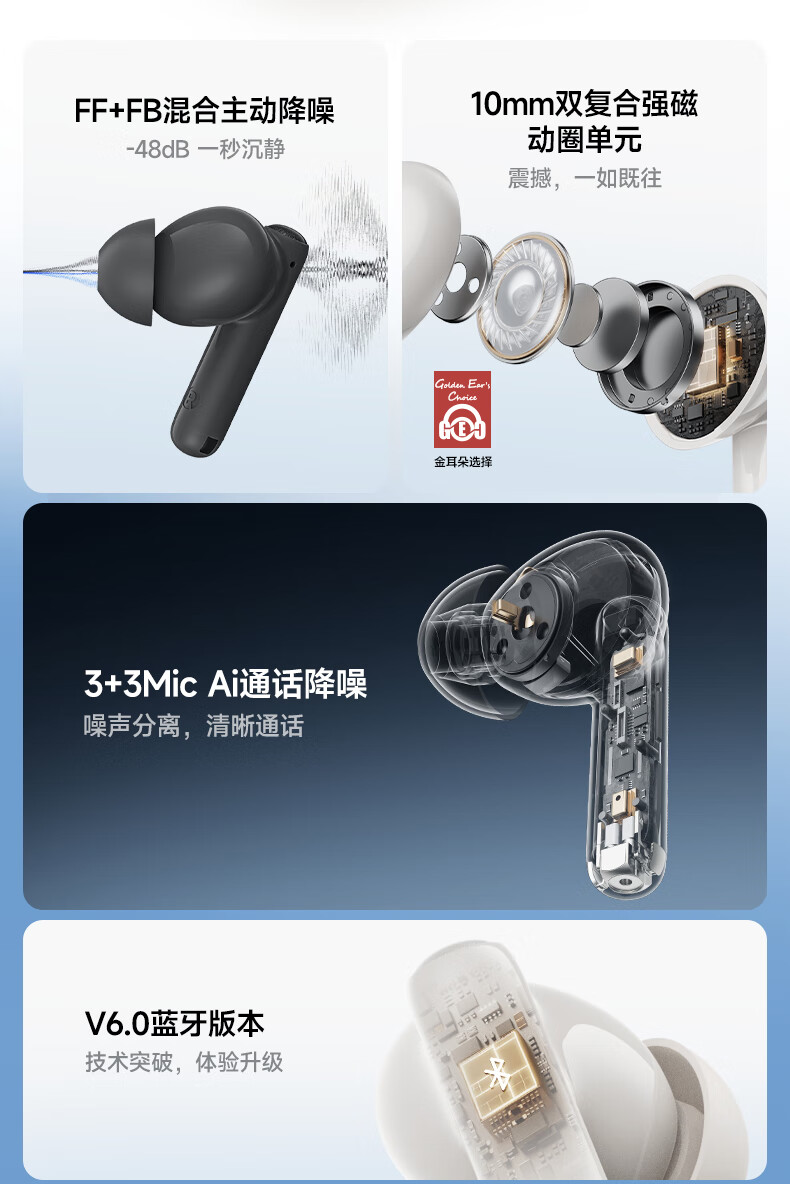 小米(MI)REDMI Buds 6 Pro真无线降噪耳机 入耳式 适用于安卓苹果手机 冰釉白