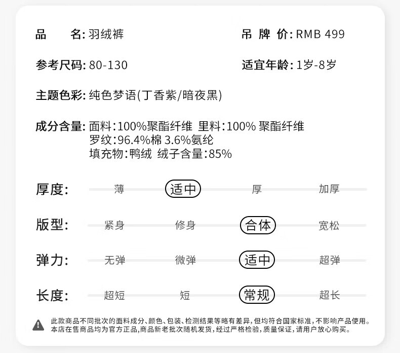 丽婴房(Les enphants)丽婴房儿童羽绒裤男女童冬季保暖裤宝宝长裤2025新款 暗夜黑 110 cm
