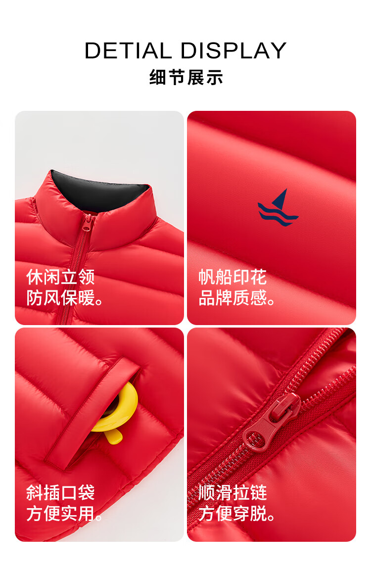 纳维凯尔儿童棉服冬季新款男童外套女童上衣学生袄子中大童开衫保暖抗寒 横条立领大红 120