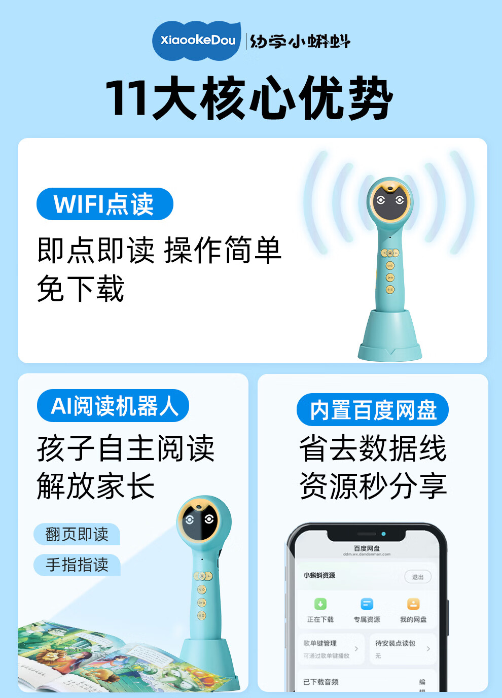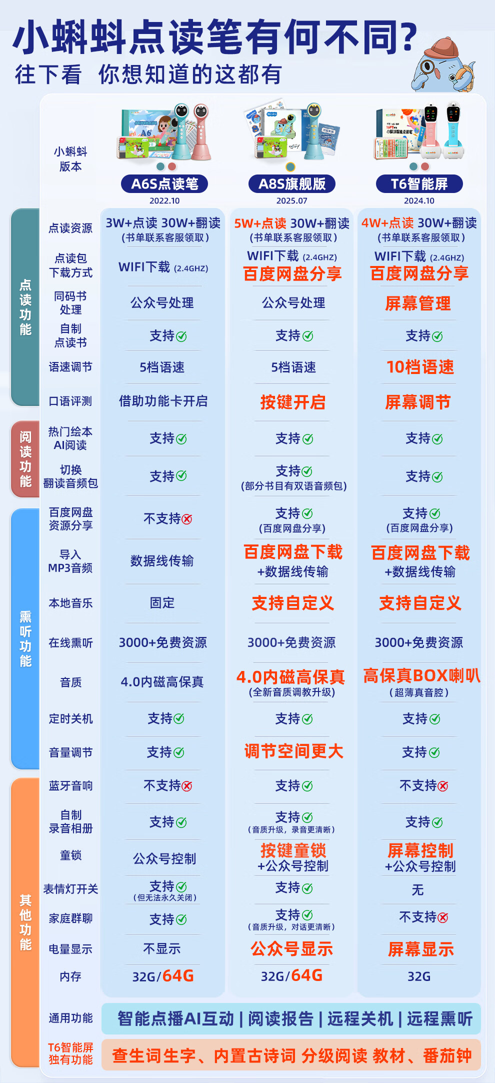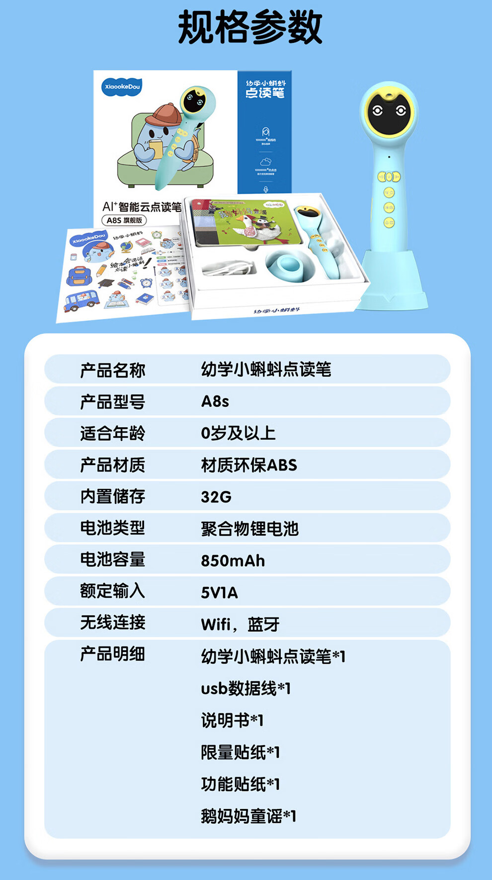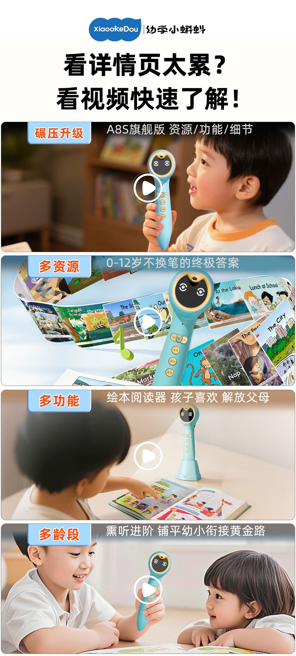 幼学小蝌蚪点读笔A8S幼儿童1-3-6-12岁raz分级阅读绘本英语早教幼学毛毛虫 【海量内存】A8S旗舰版-64g