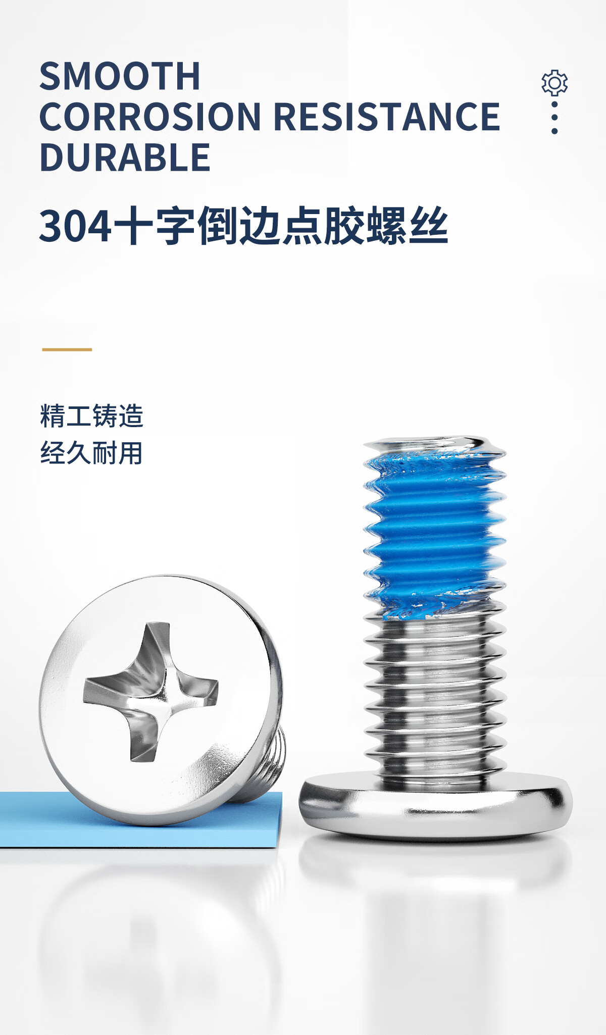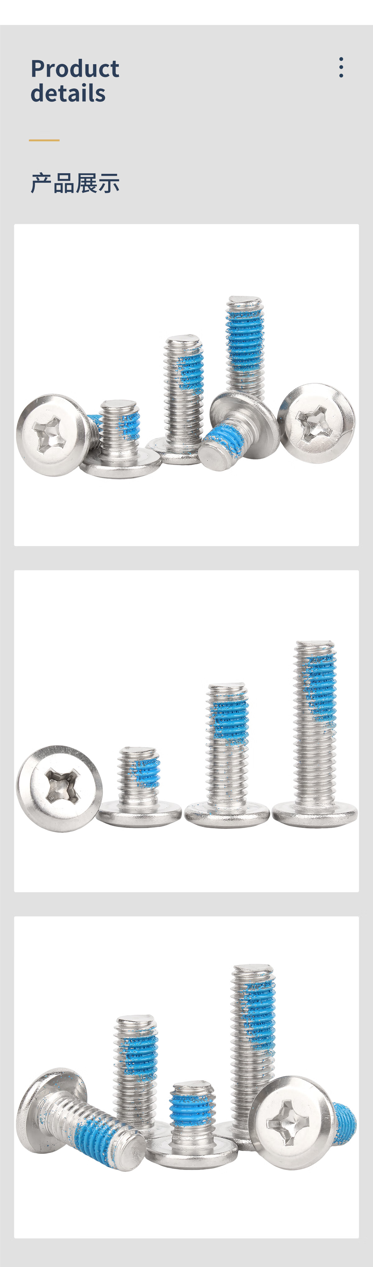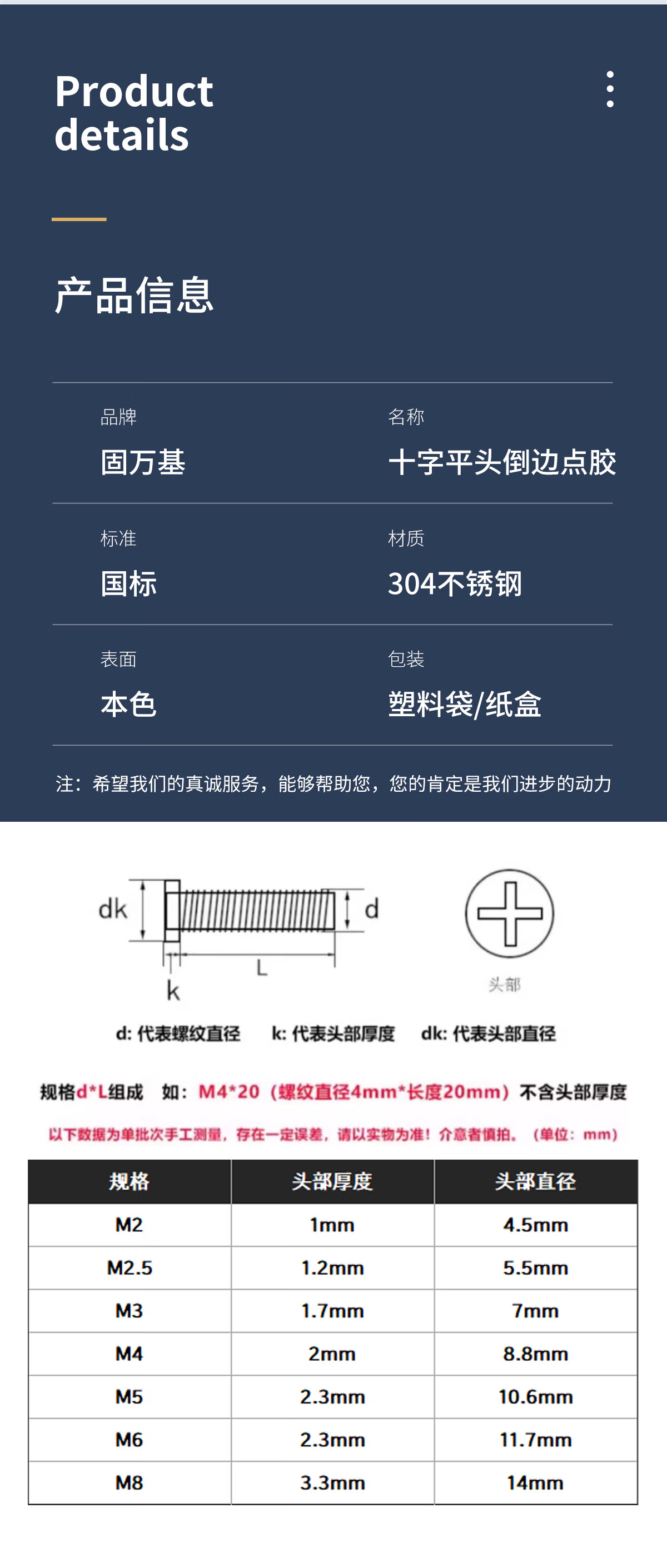 固万基(GUWANJI)304不锈钢大平头十字倒边螺丝蓝色点胶扁头家具螺栓M2-M8 M2x3[500个]