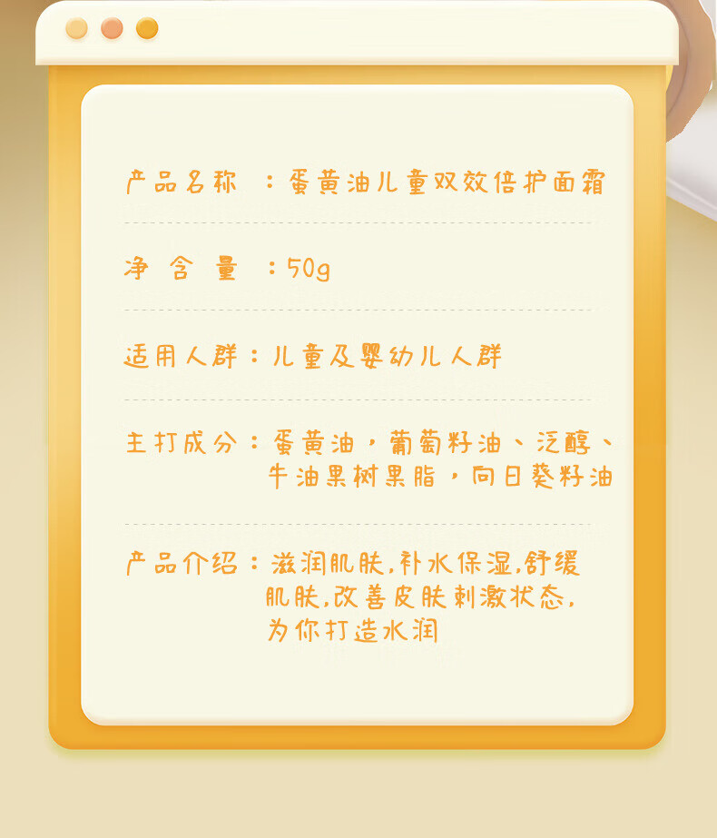 HKCQCQHKC蛋黄油双效面霜宝宝舒缓保湿 儿童面霜(控价产品,合作请咨询客服)