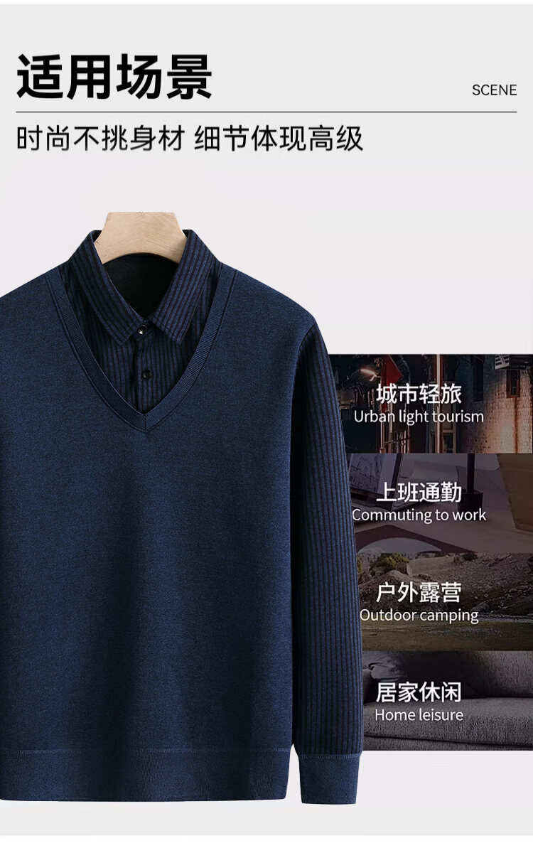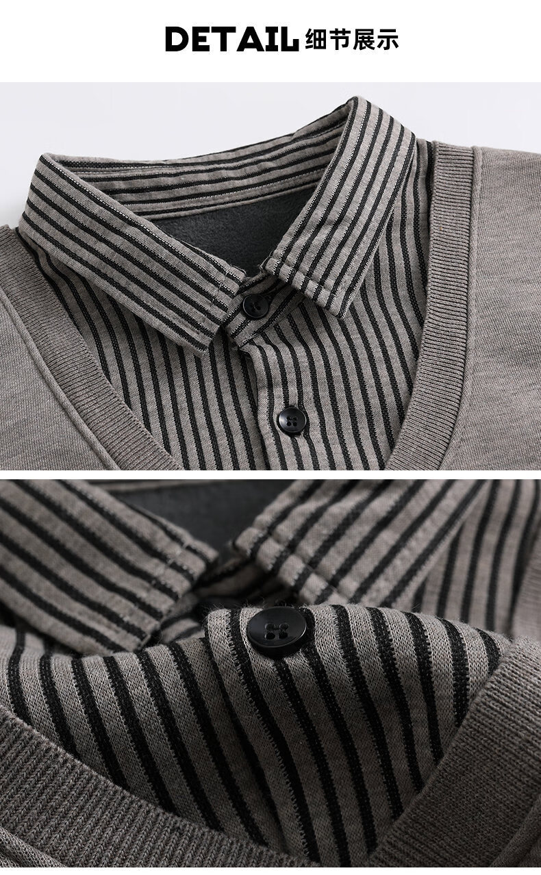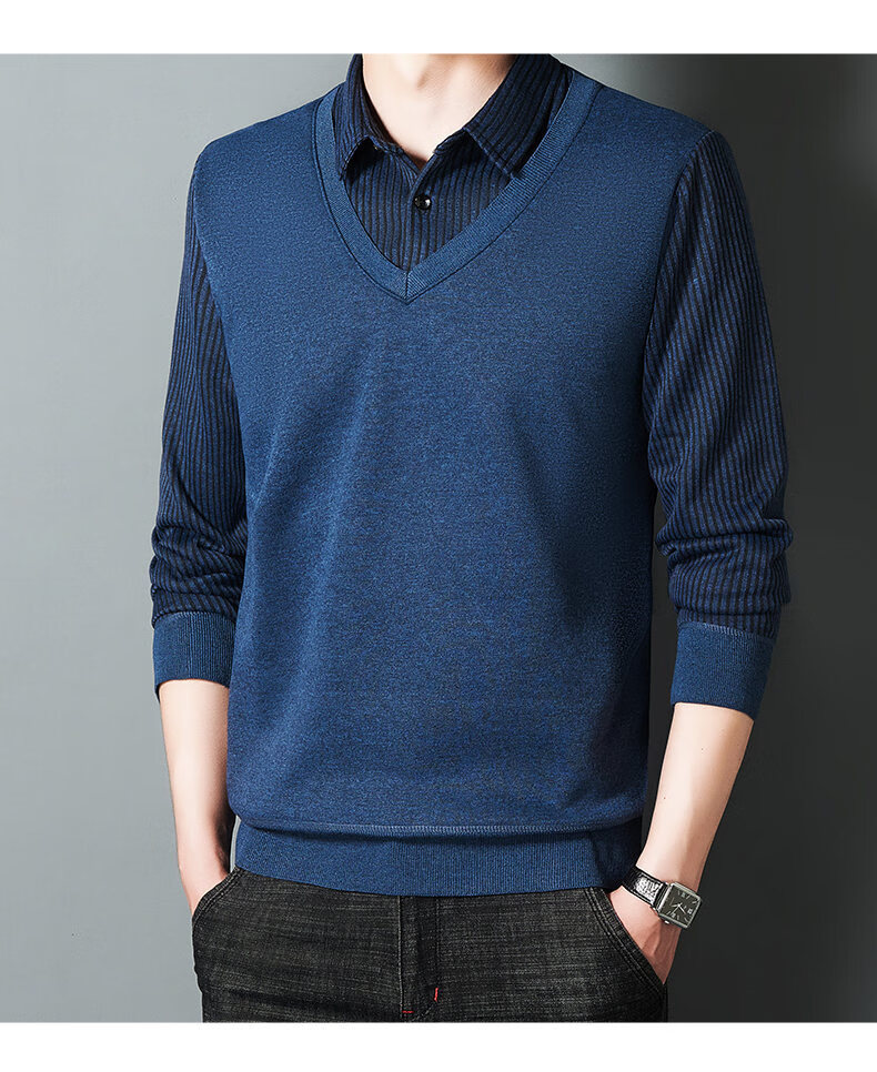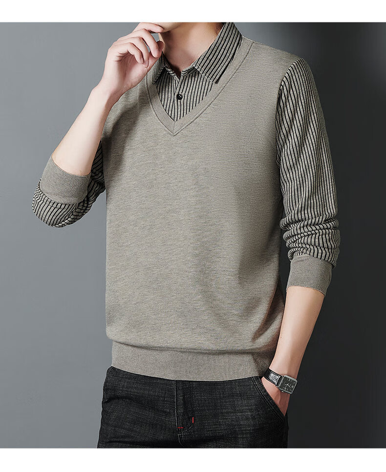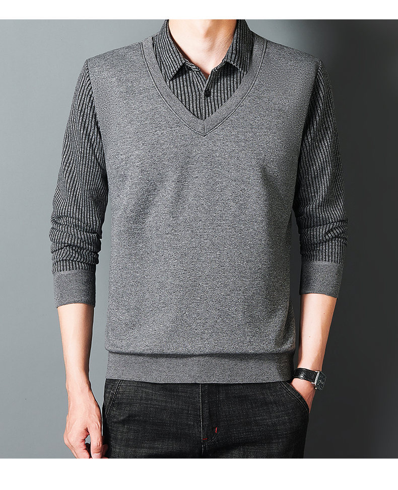 CronetKcnsy男士假两件毛衣男衬衫领针织衫男冬季加绒加厚线衣中老年衣服男装 深灰色 3XL 推荐165-180斤