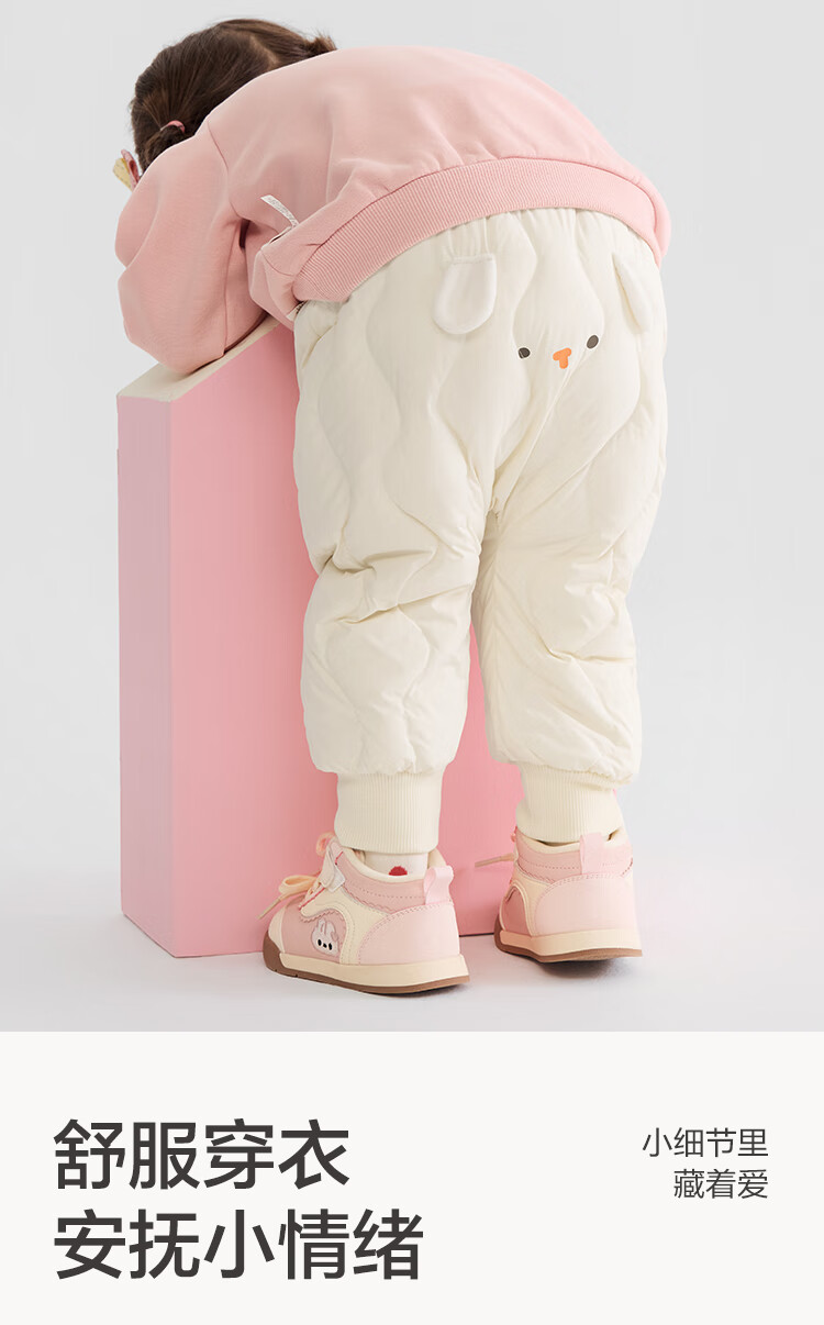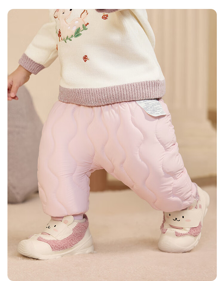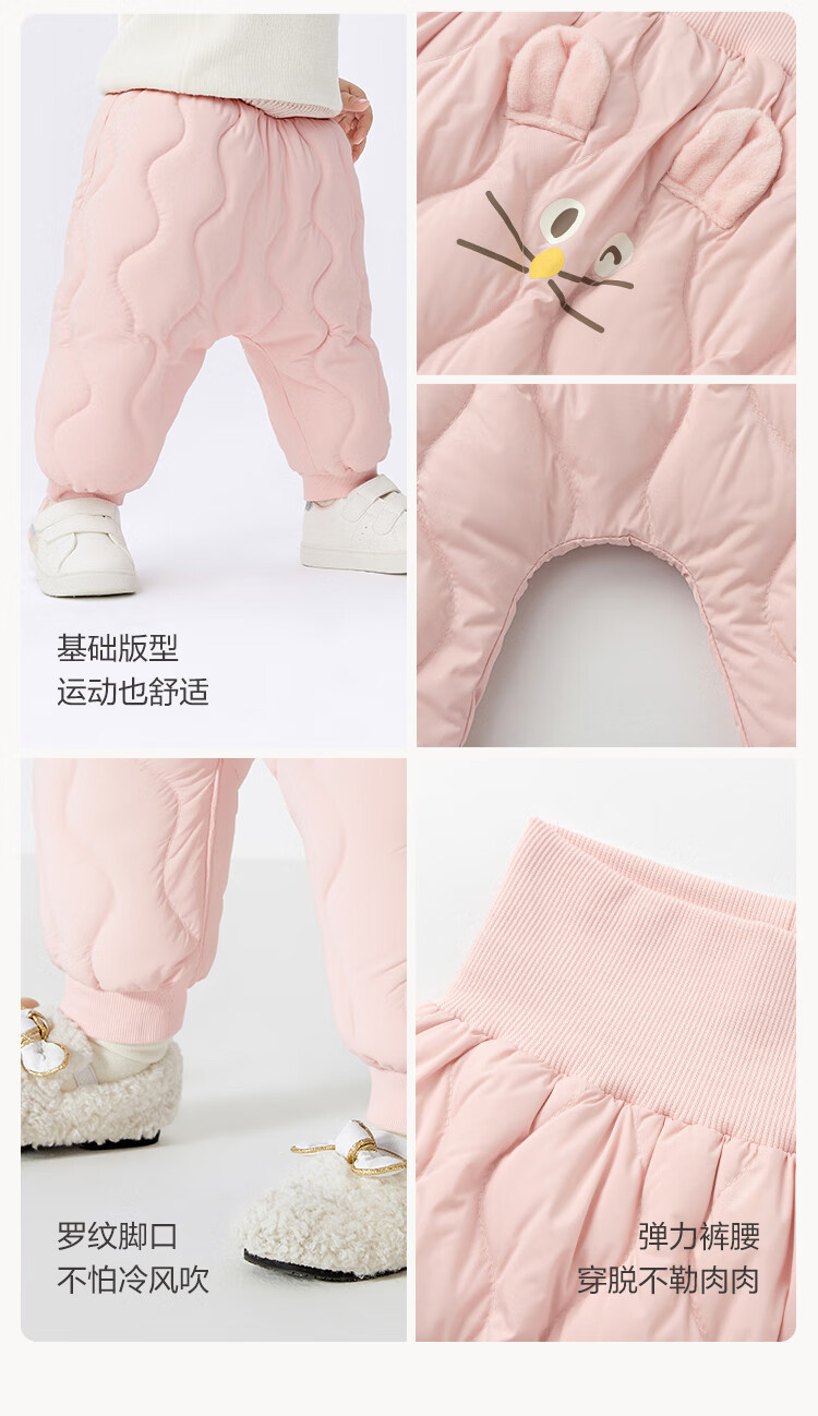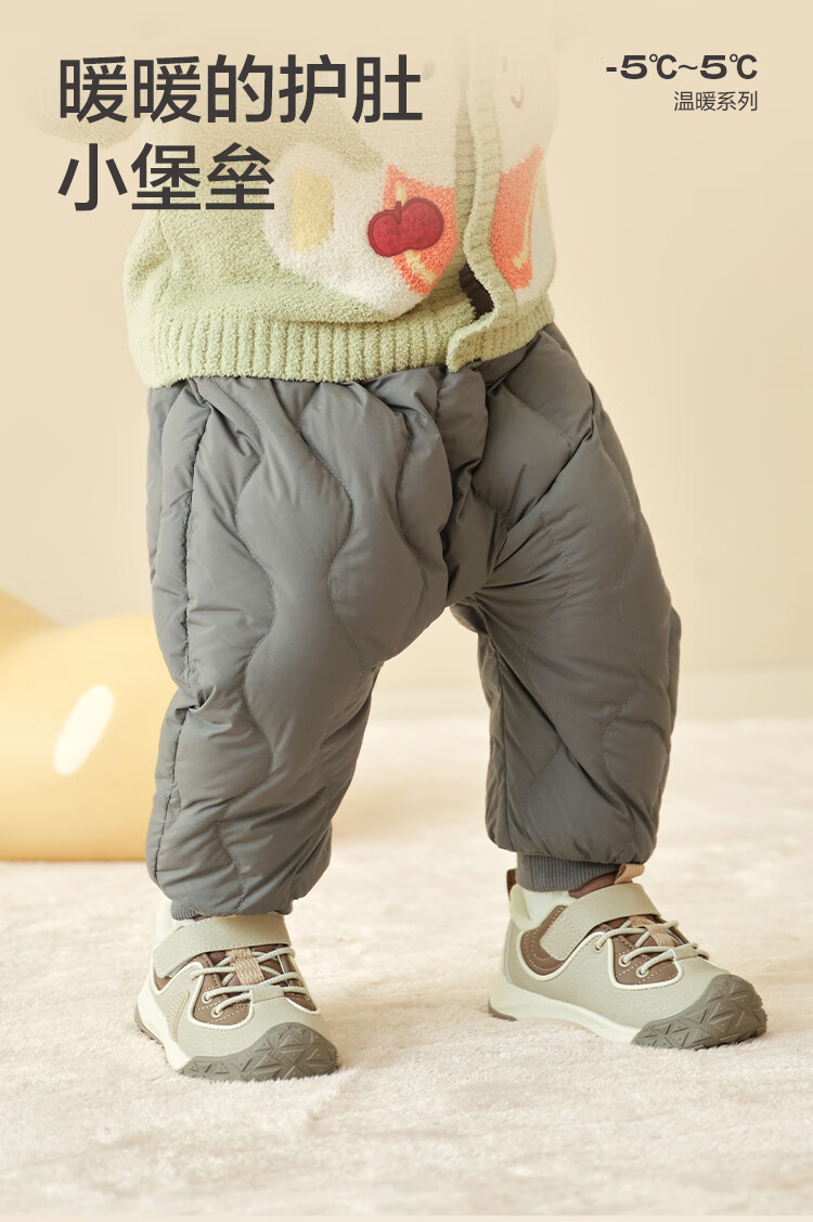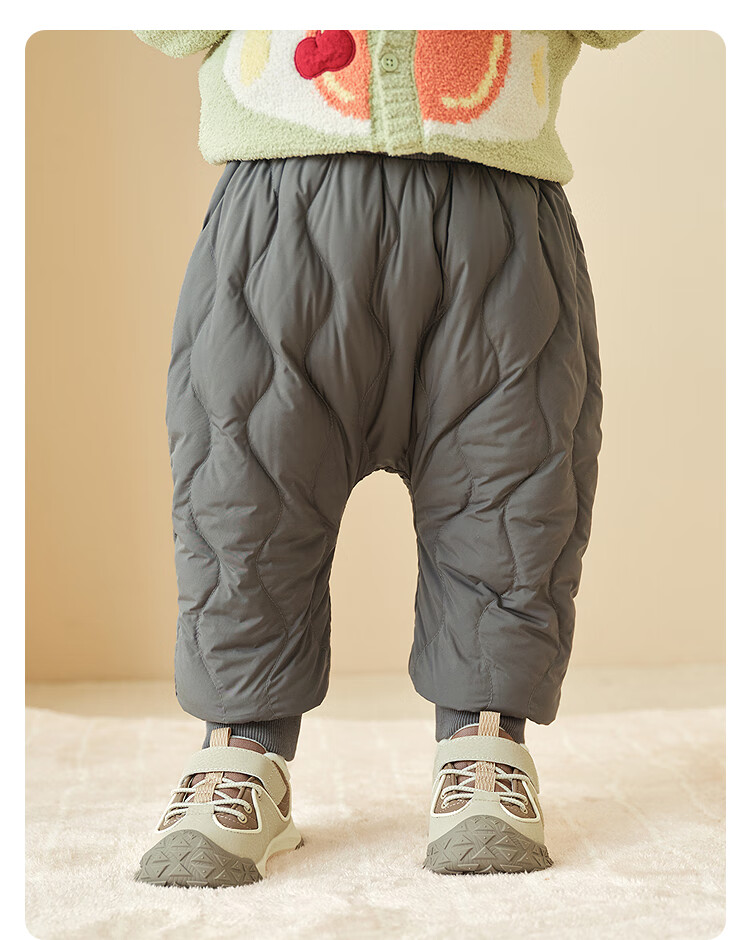 巴拉巴拉balaOne儿童羽绒裤男女童长裤宝宝保暖2025冬季新款高腰 灰色熊-白鸭绒 90 cm-充绒量22g