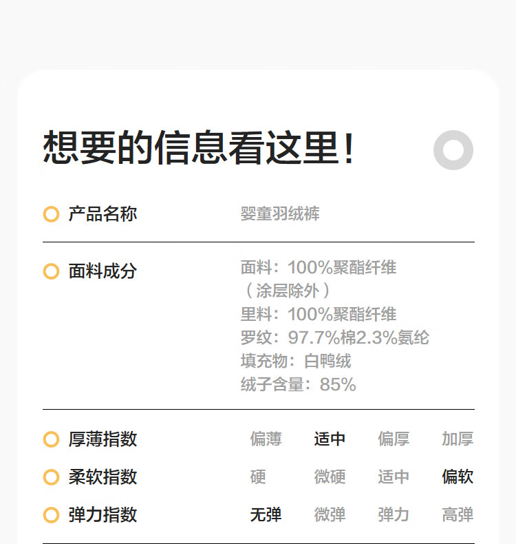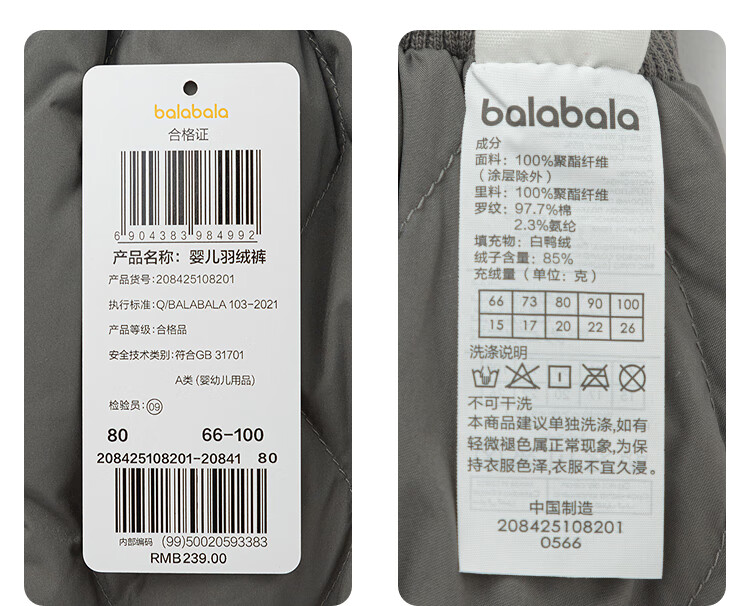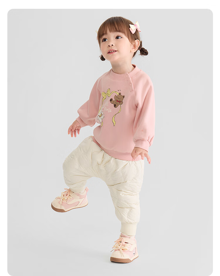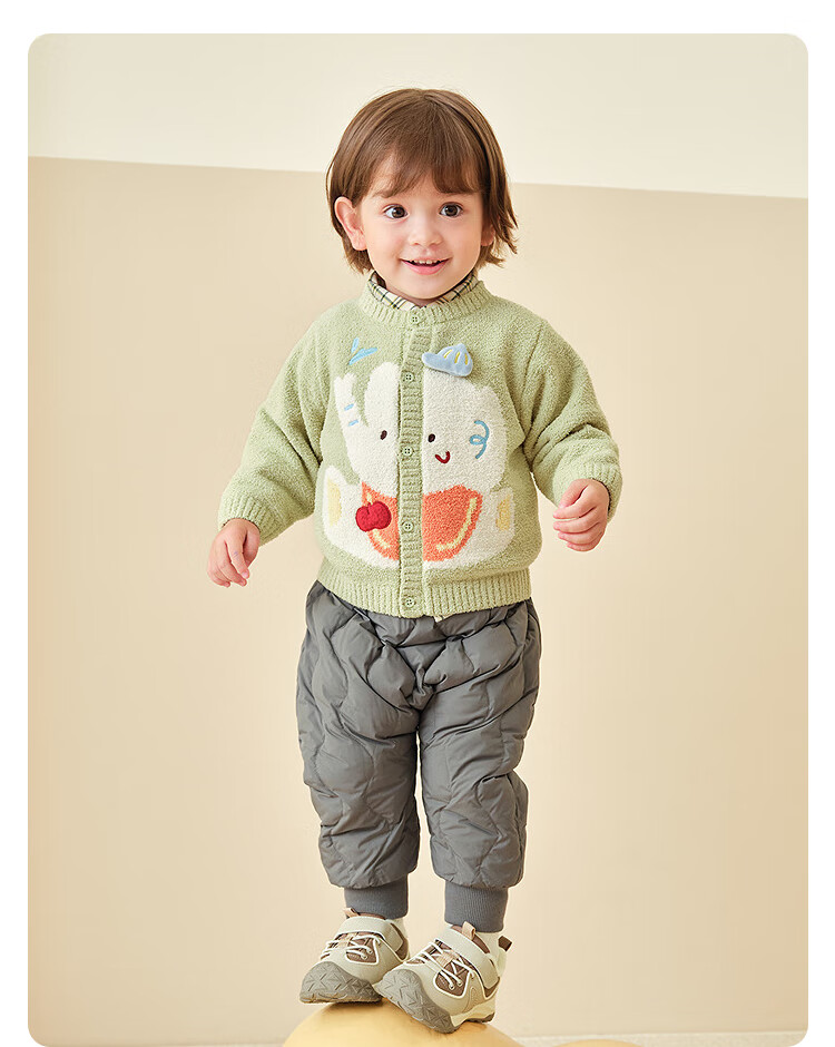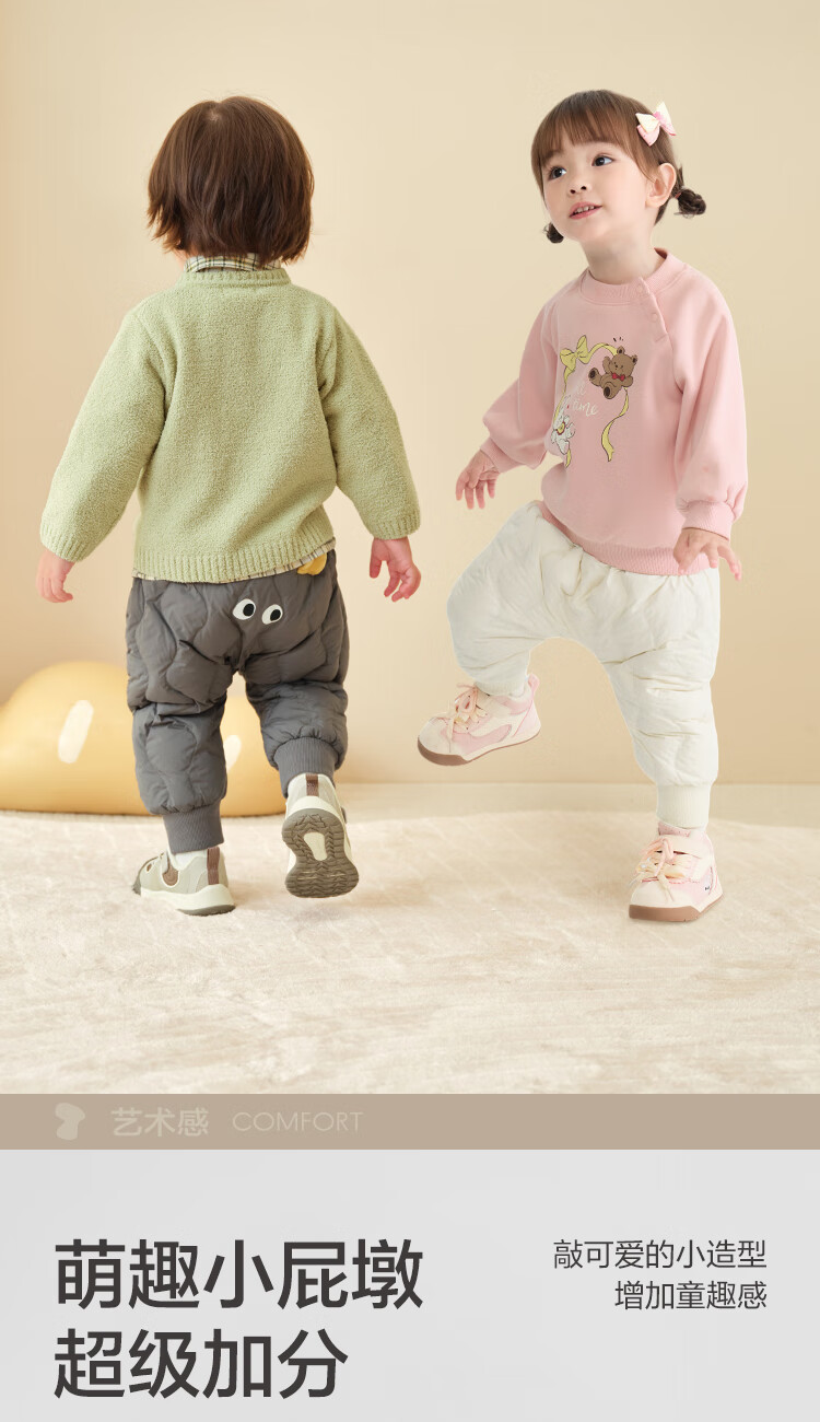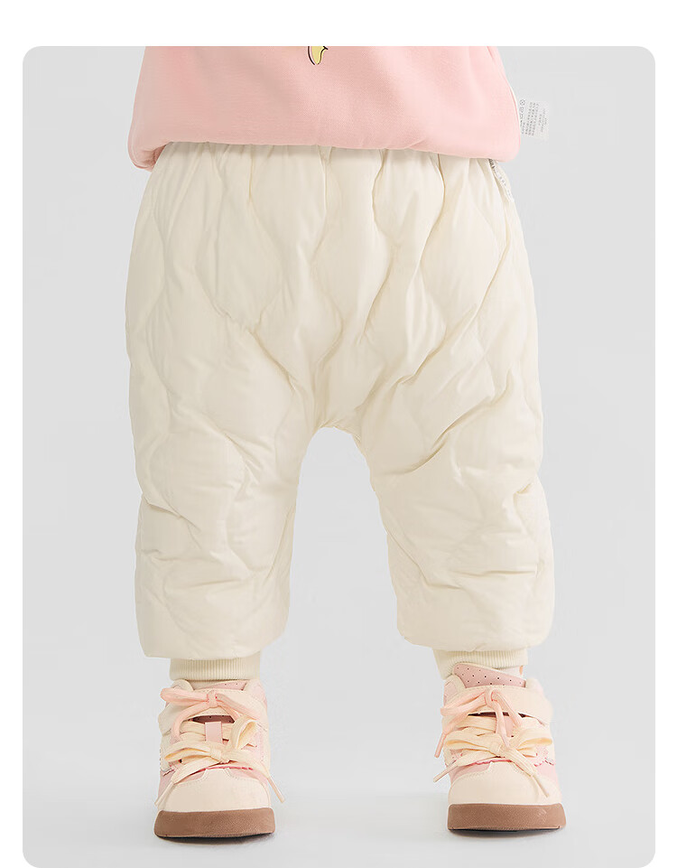 巴拉巴拉balaOne儿童羽绒裤男女童长裤宝宝保暖2025冬季新款高腰 灰色熊-白鸭绒 90 cm-充绒量22g