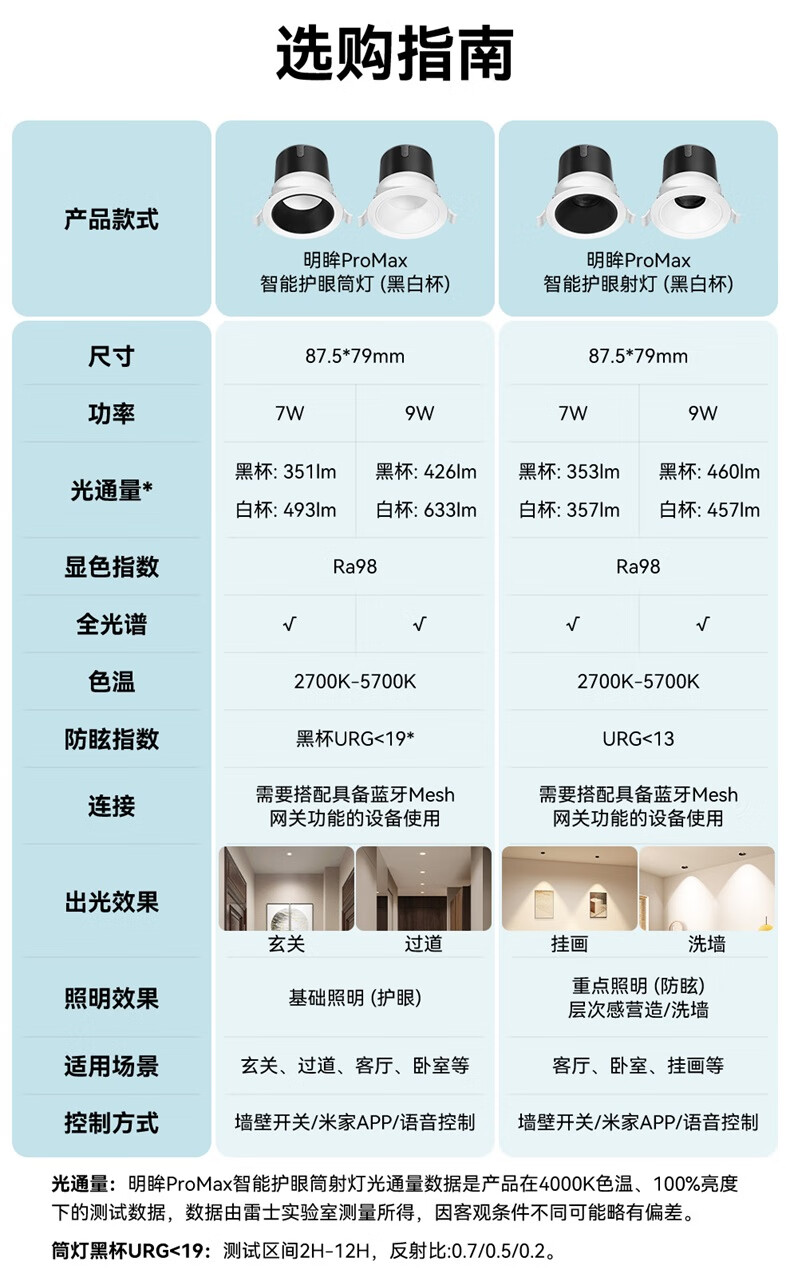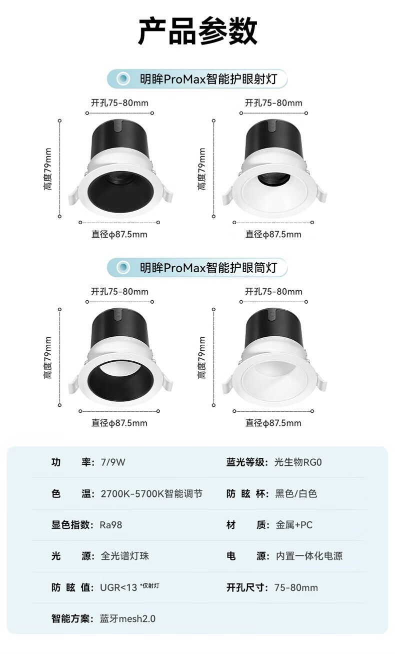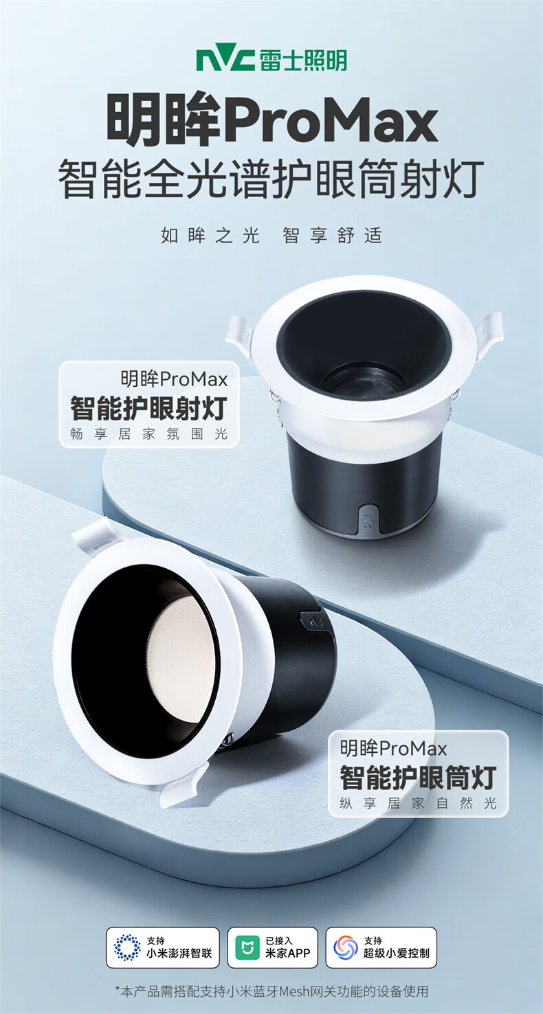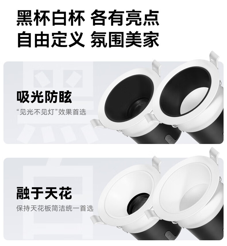 雷士(NVC)LED智能筒射灯防眩嵌入式无主灯天花客厅过道护眼全光谱无极调光 【无极调光/全光谱Ra98】明眸智能射灯-黑杯9W