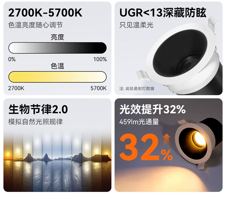 欧普(OPPLE)欧普led防眩光深杯筒灯窄边框家用无主灯嵌入式桶灯全铝开孔7—8 白杯【三色变光】开孔7-8CM 7W