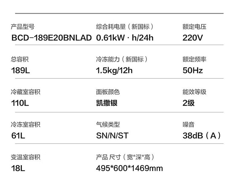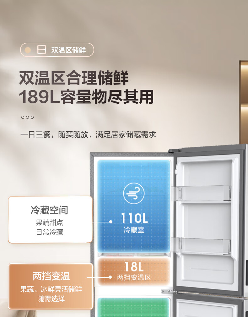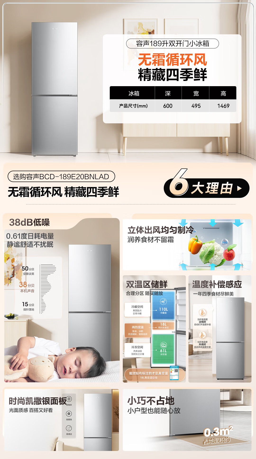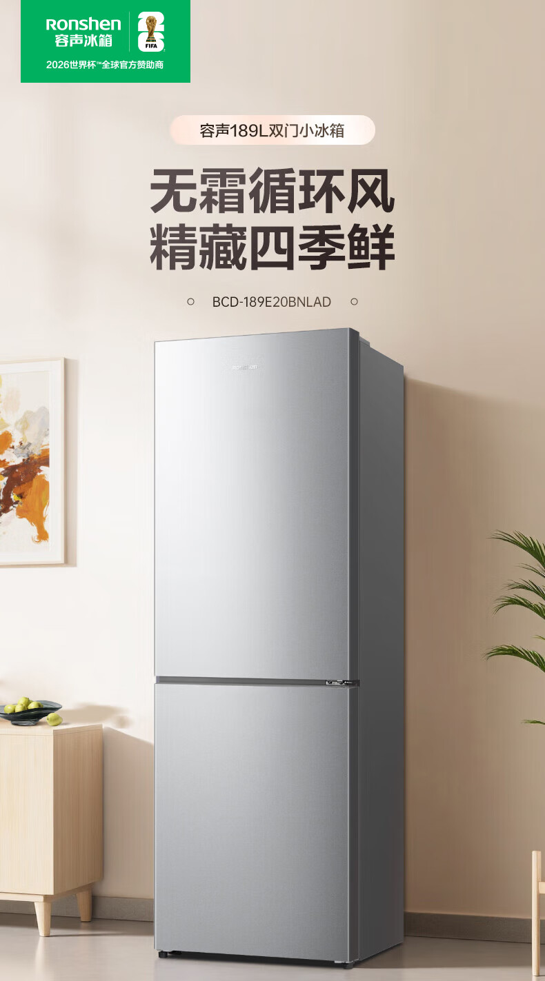 容声189L两门小冰箱小户型风冷无霜节能超薄冷藏冷冻出租屋宿舍低噪以旧换新BCD-189E20BNLAD国家补贴