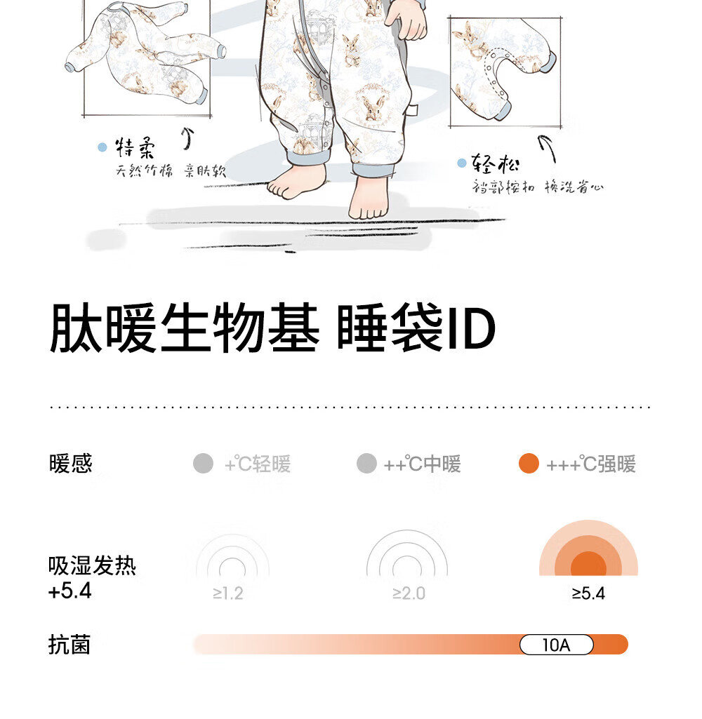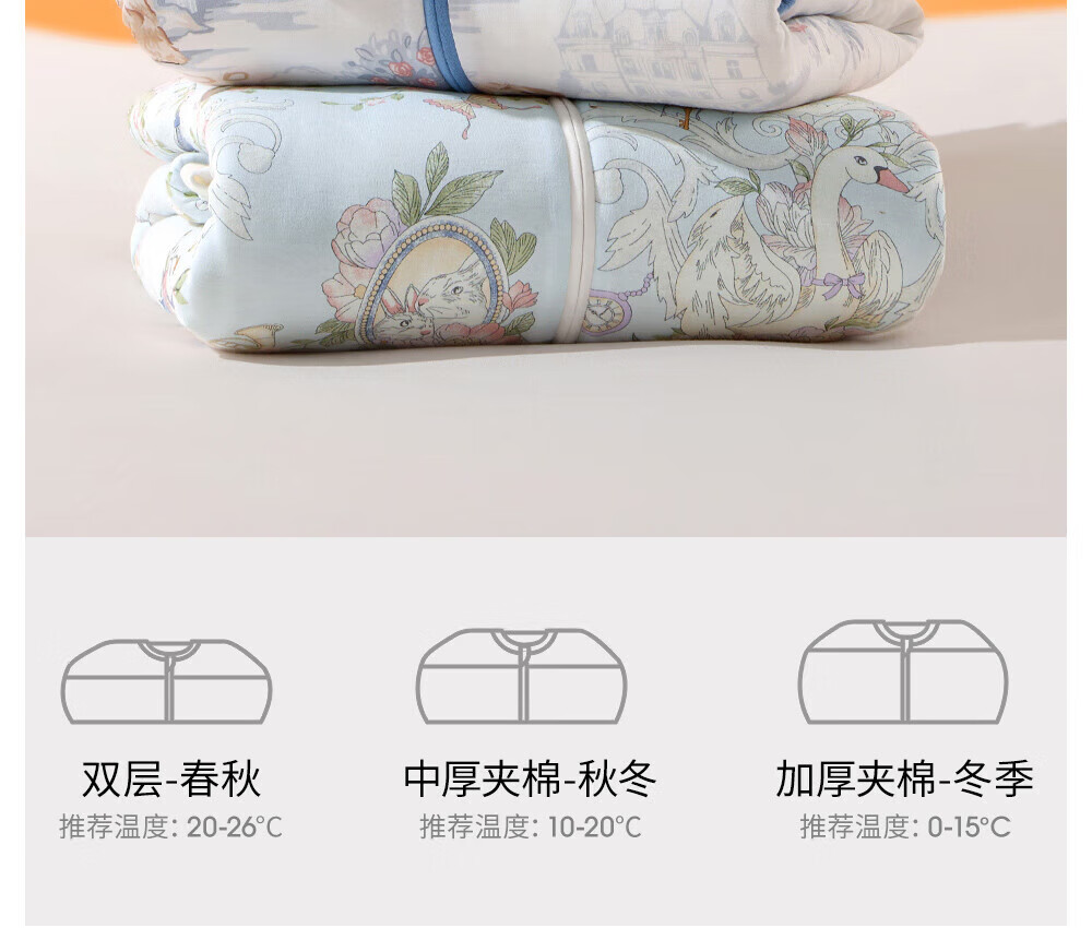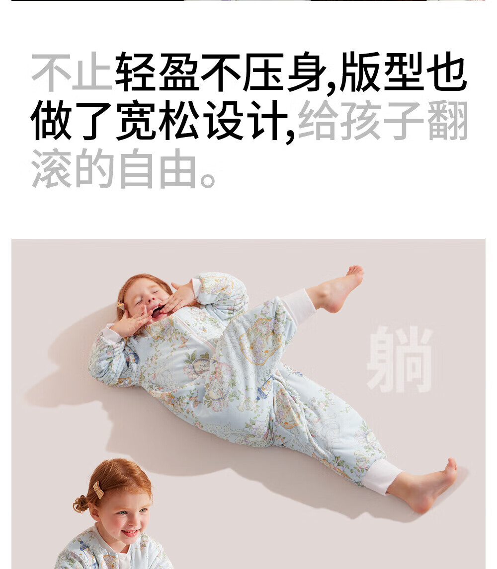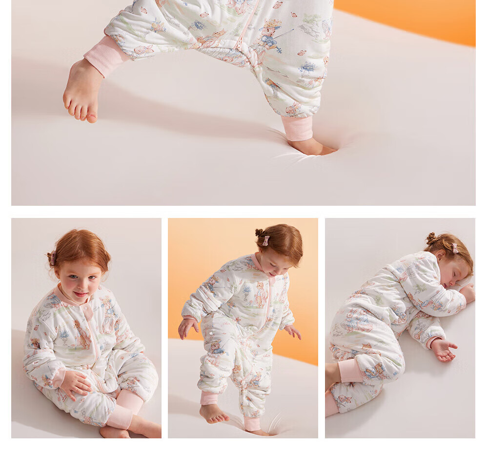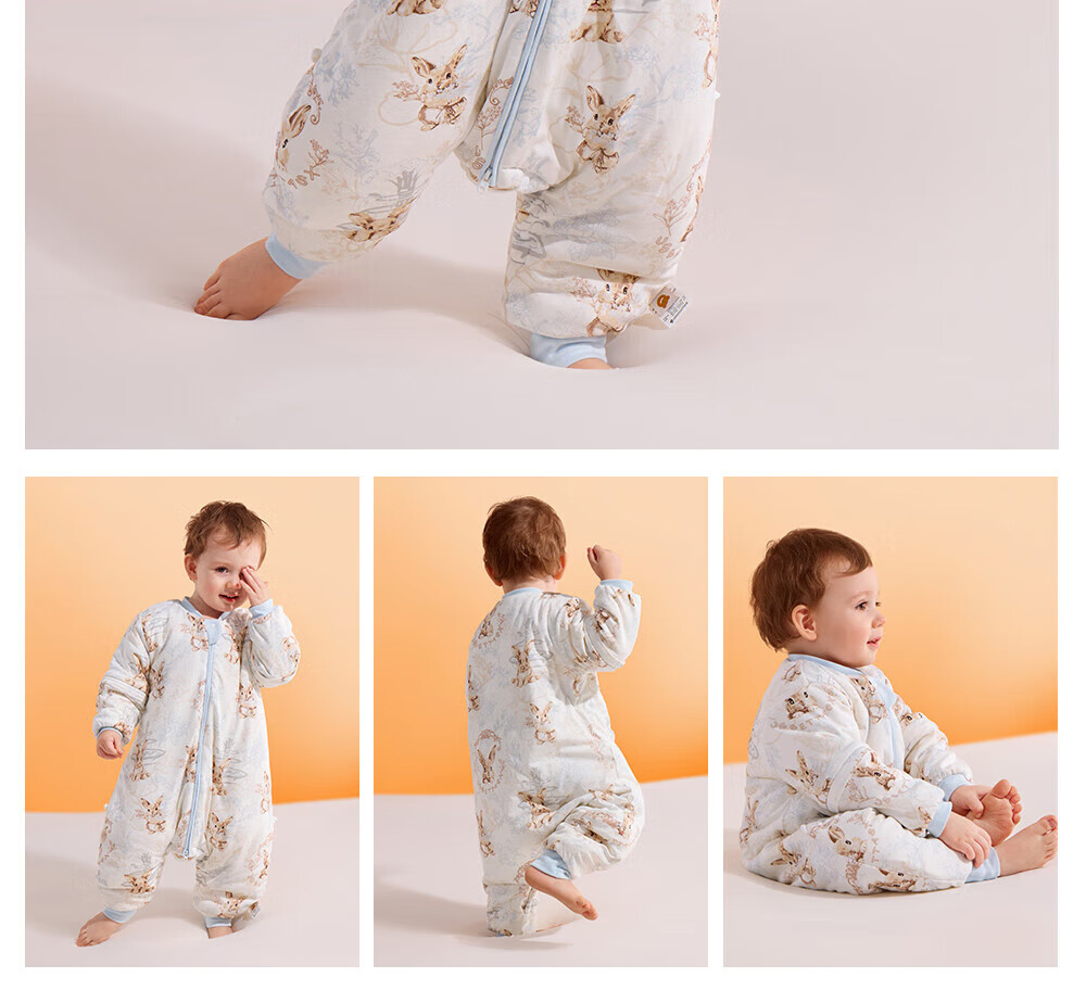 贝肽斯睡袋婴儿恒温发热宝宝1-3岁秋春秋儿童防踢被子保暖分腿式防惊跳 觅旅萌免【秋冬中厚10-20°C】恒温x天竹 M码 身高80-95cm建议1.2-2.5岁