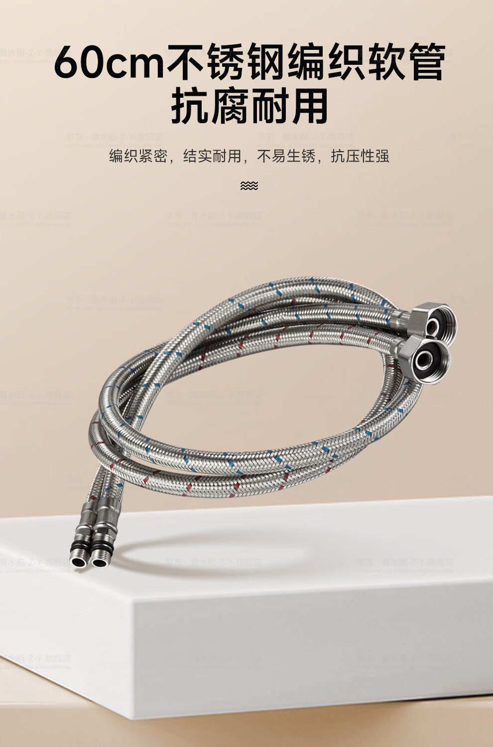 山头林村4分进水软管304不锈钢编织软管家用热水器马桶连接管防爆双头软管 普通款黑丝编织3年 50 厘米