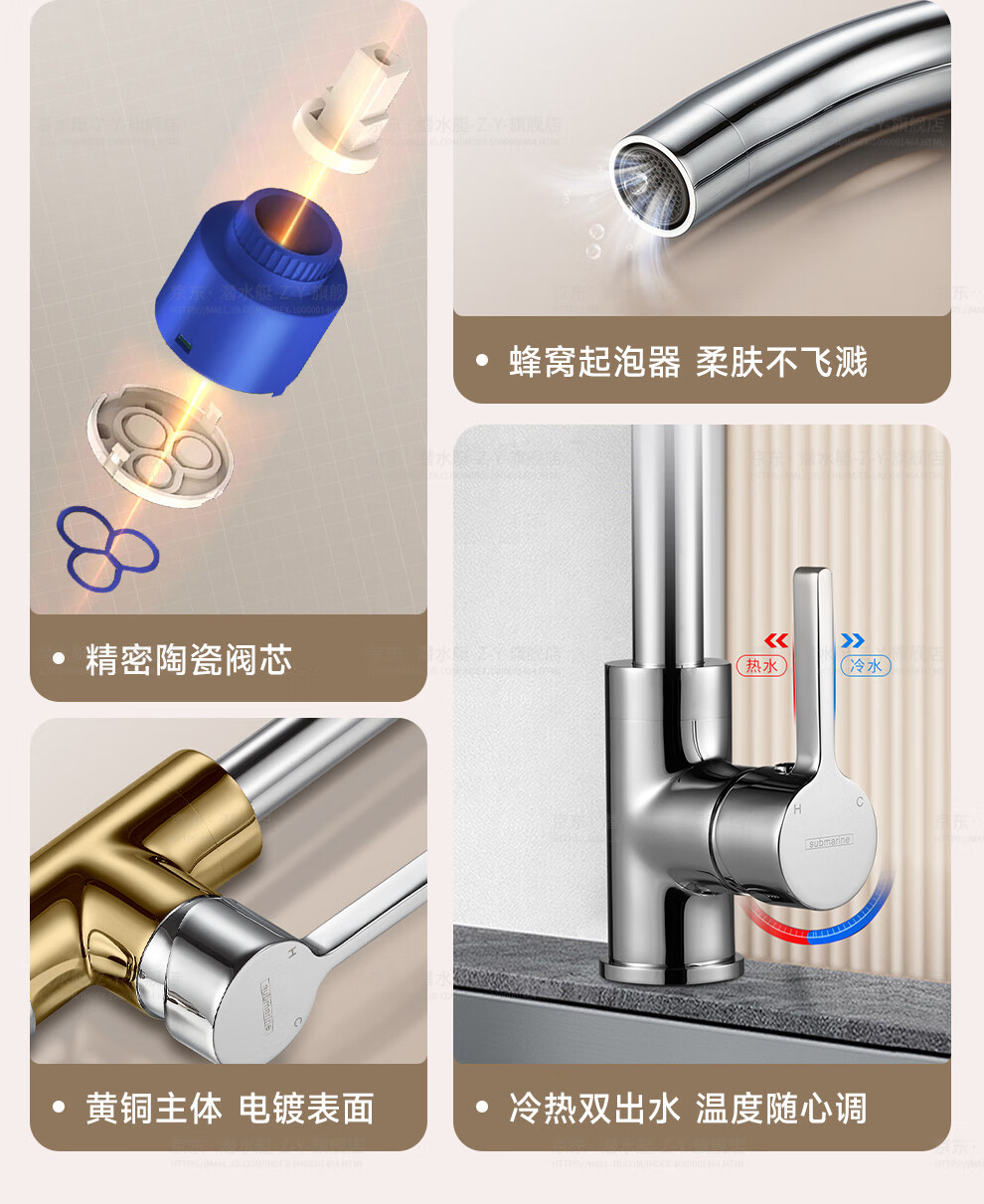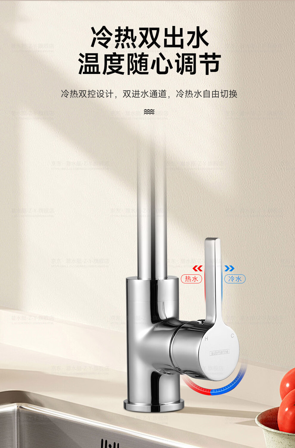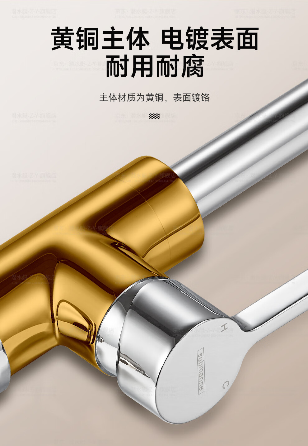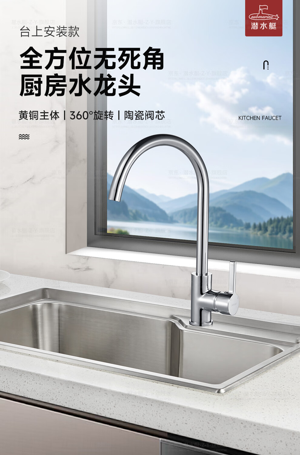 潜水艇(Submarine)L3012黄铜镀铬厨房菜盆龙头水槽龙头冷热水龙头陶瓷阀芯