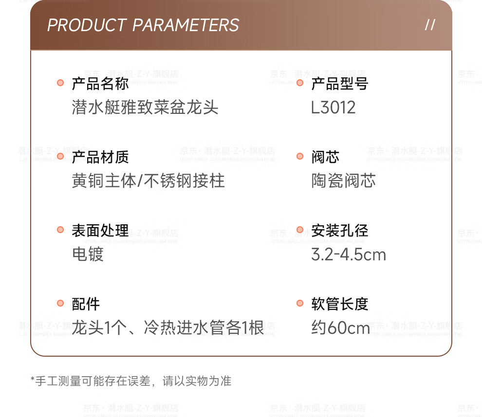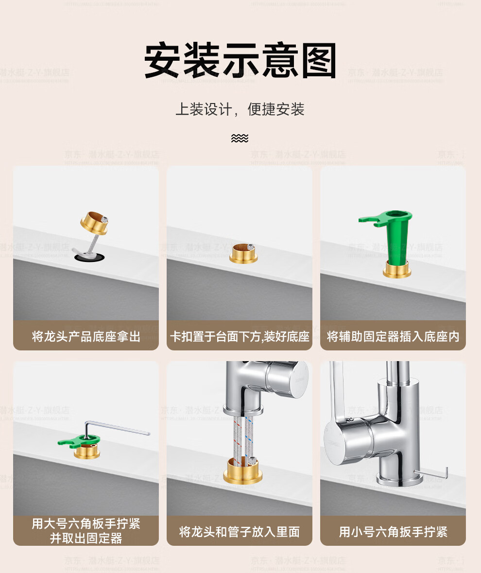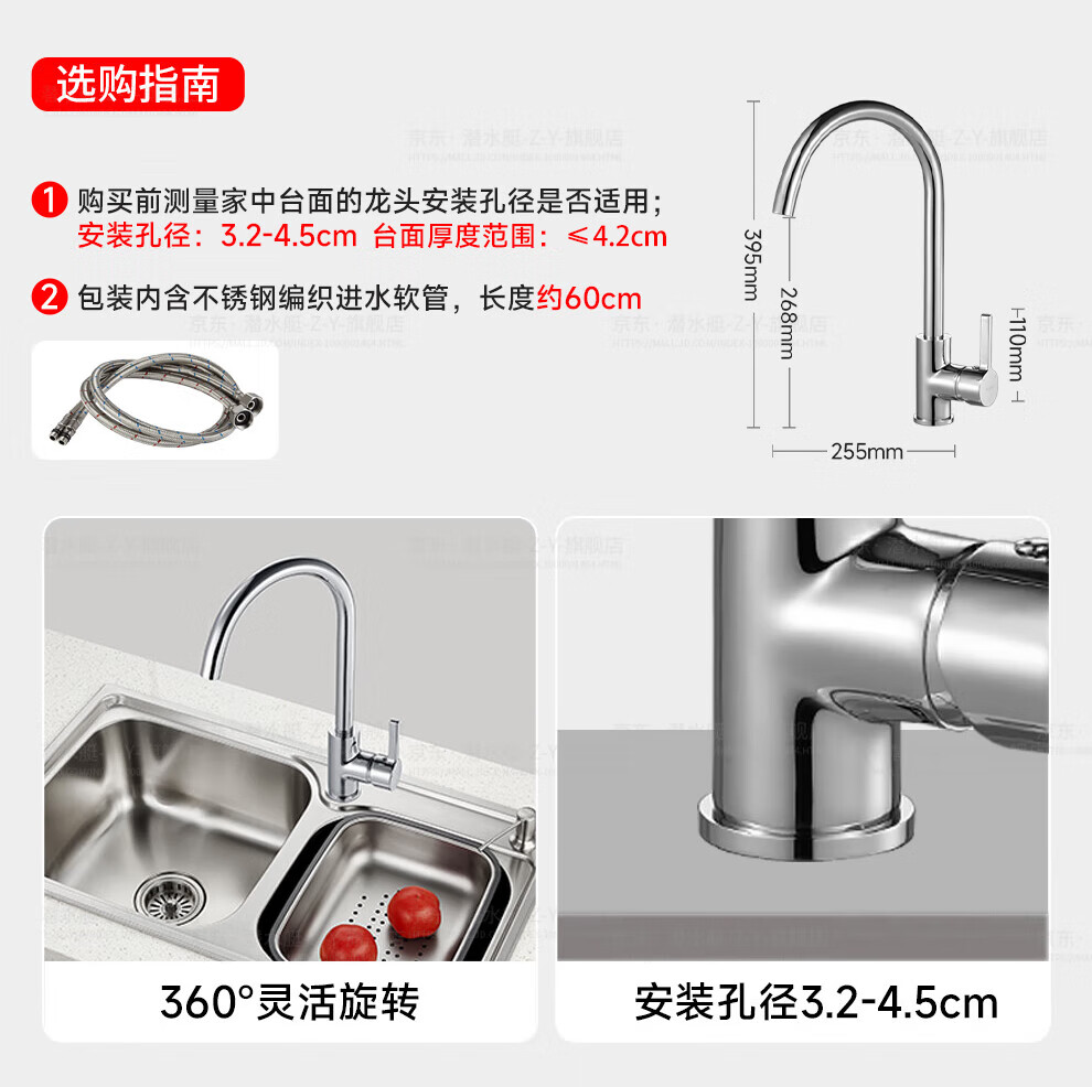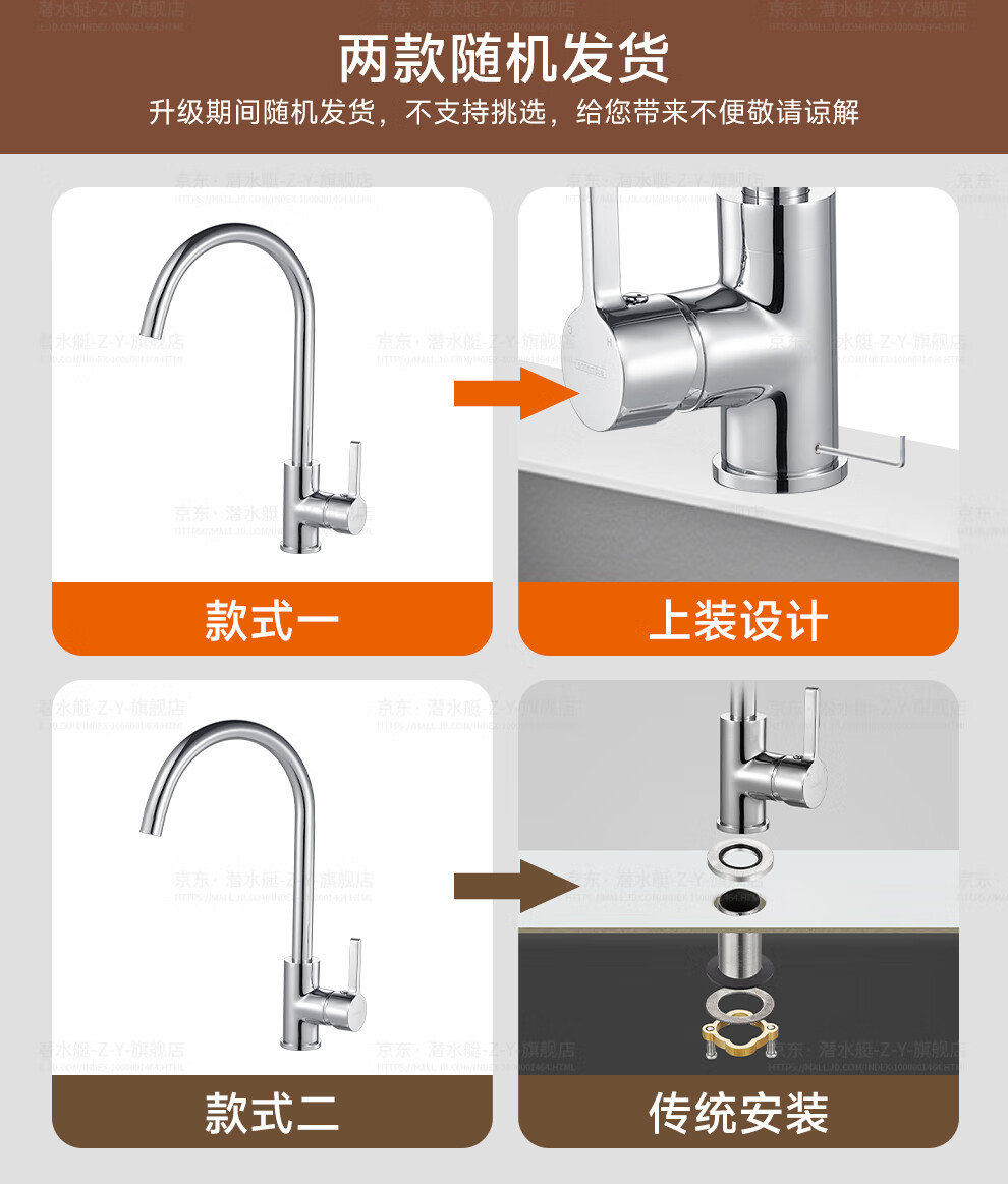 潜水艇(Submarine)L3012黄铜镀铬厨房菜盆龙头水槽龙头冷热水龙头陶瓷阀芯