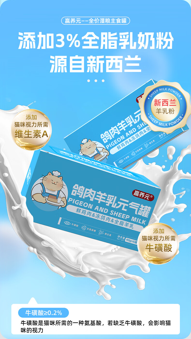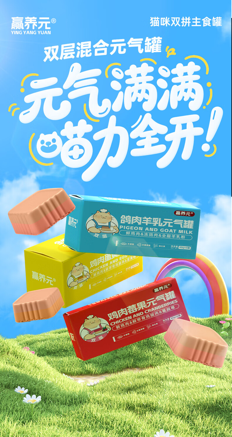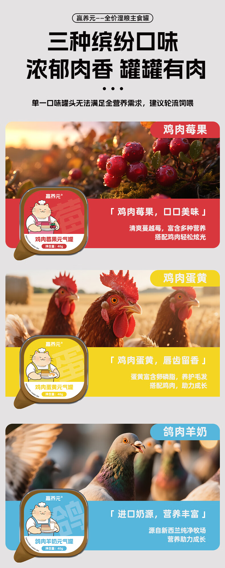 赢养元猫罐头主食餐盒双层鲜肉羊乳全价猫罐头主食罐猫湿粮 鸡肉蛋黄 40g*6一盒