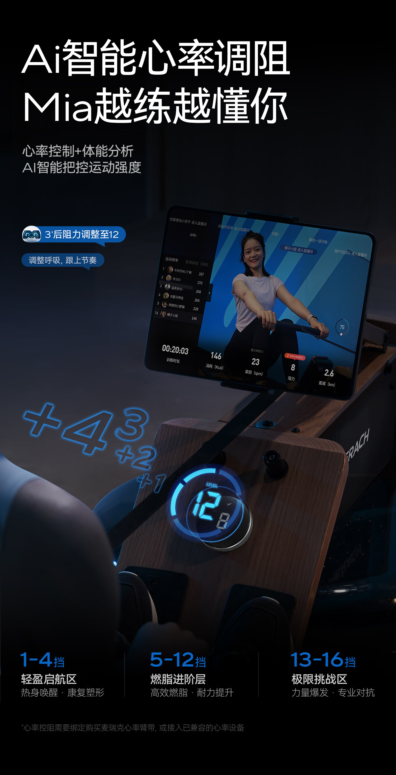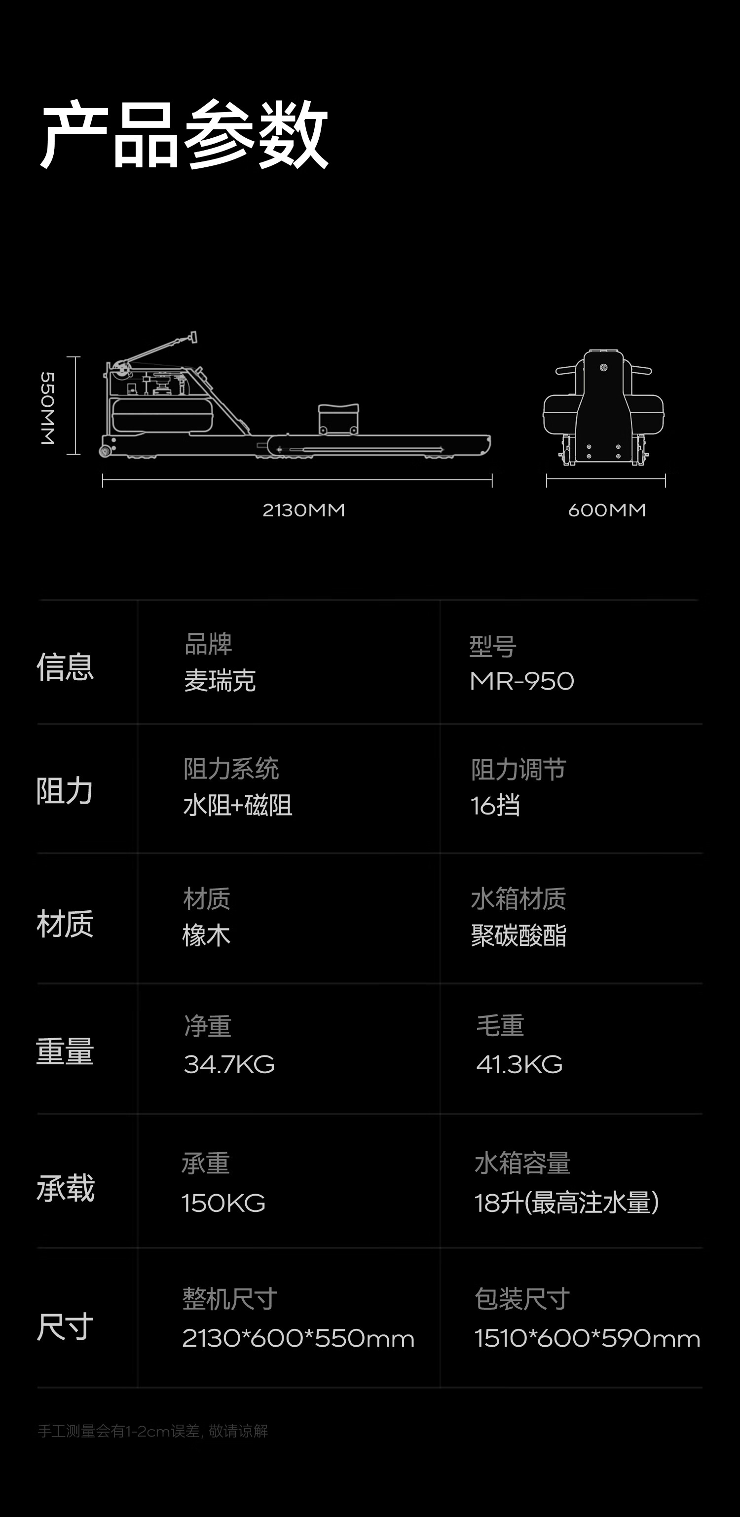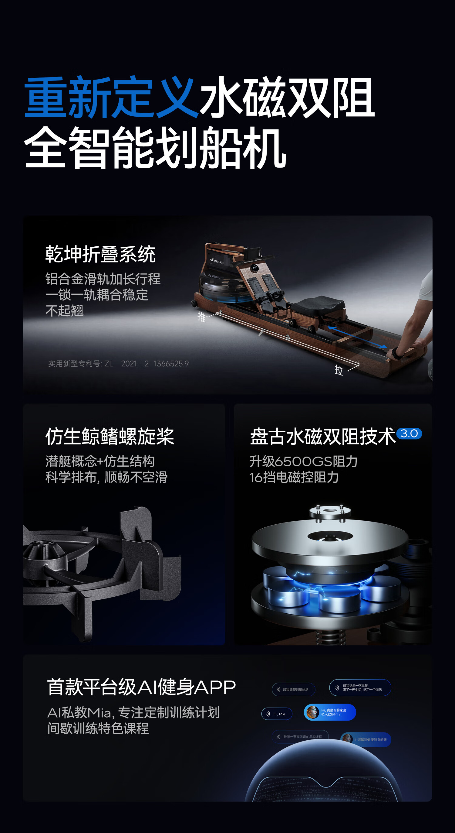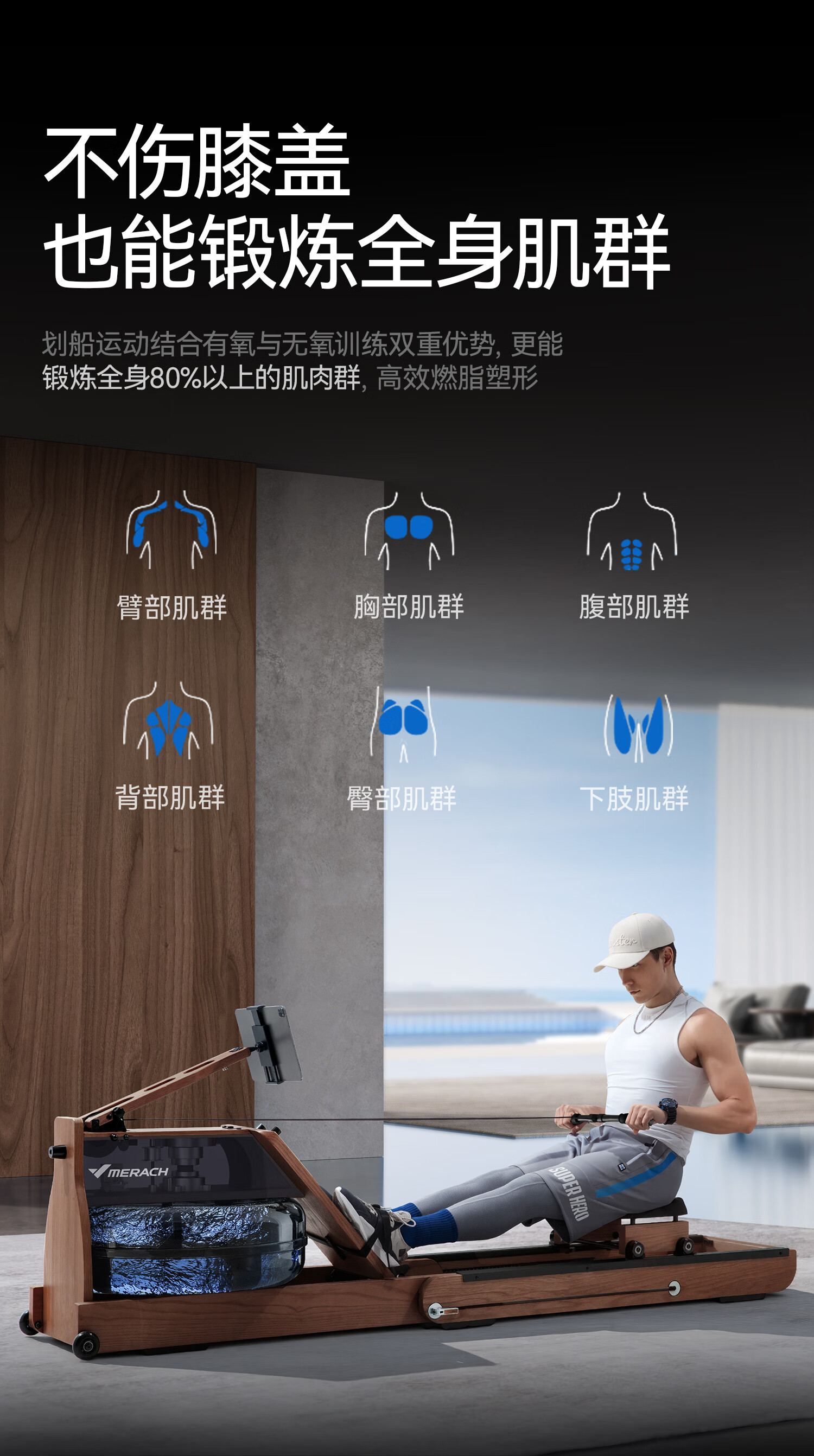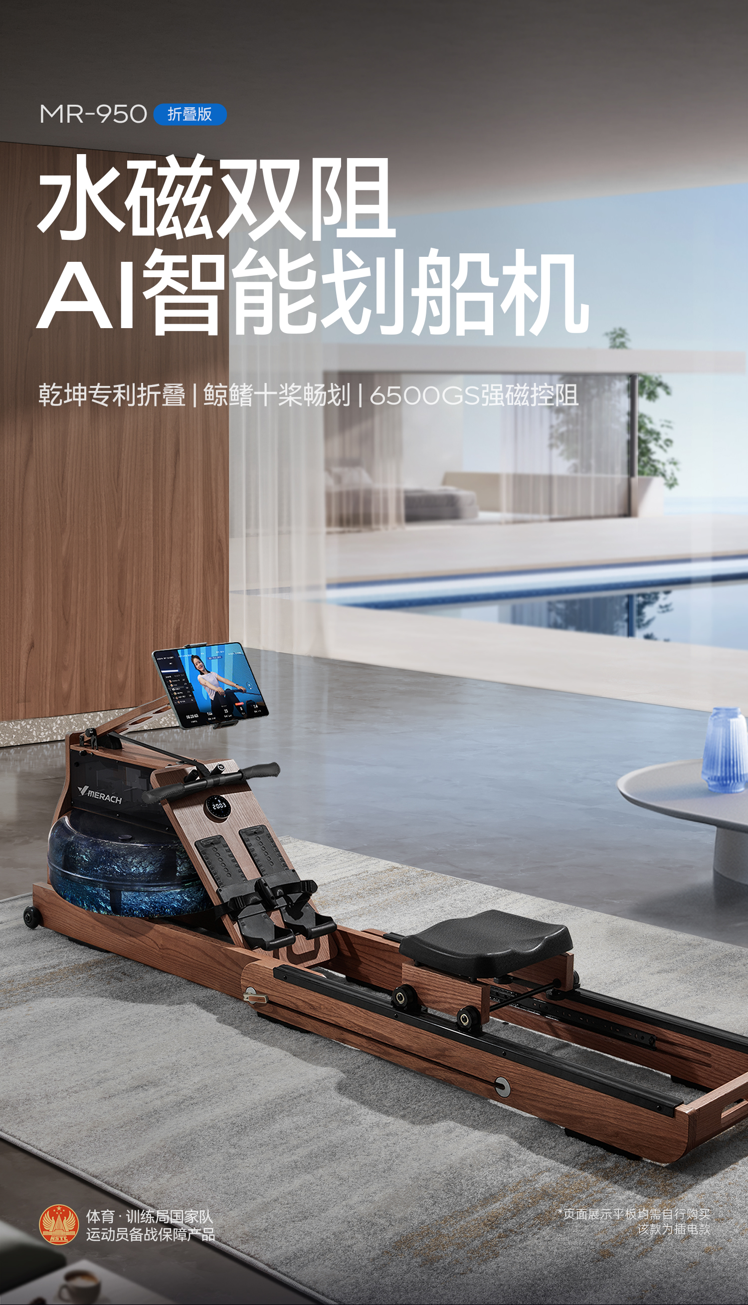 麦瑞克(MERACH)划船机家用水阻磁控室内运动健身器材智能调节可折叠MR-950R7ZH