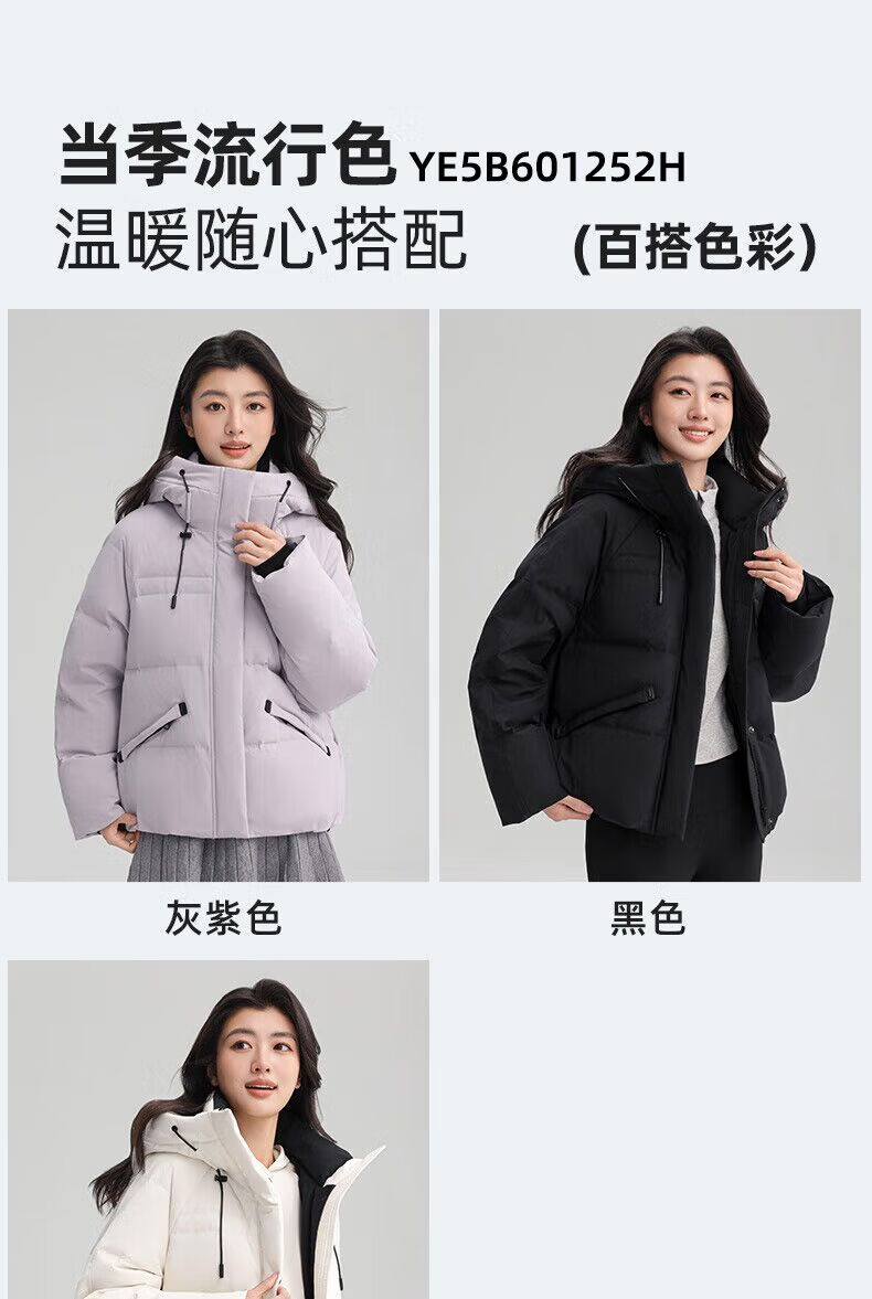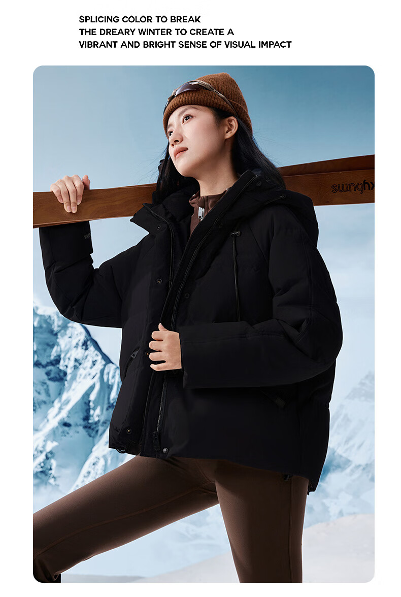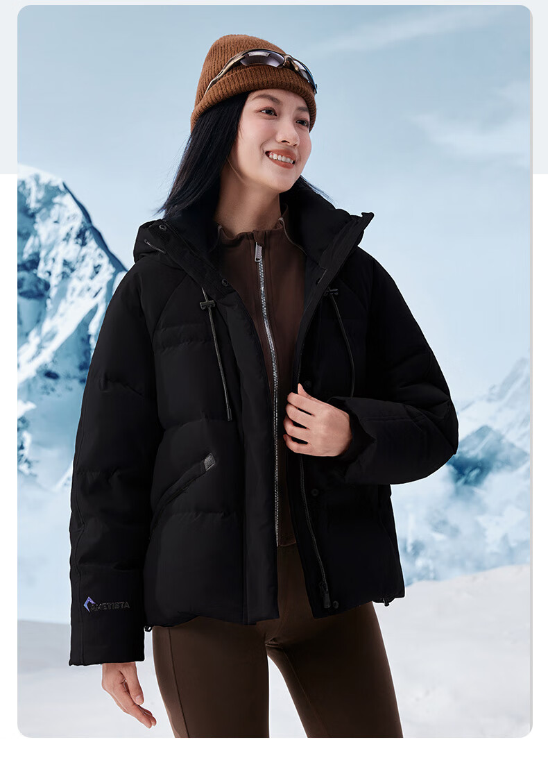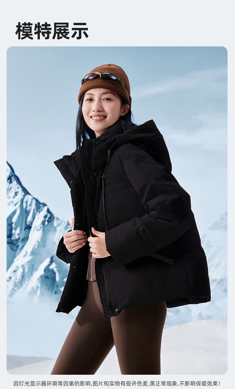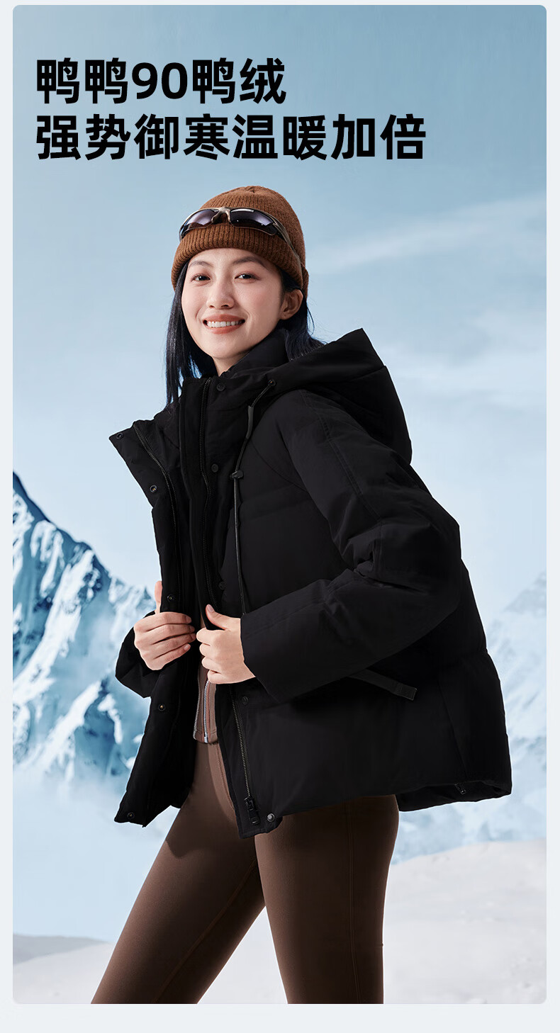 鸭鸭王一博同款轻壳系列羽绒服女短款2025冬季新款简约保暖轻薄外套HY 黑色 2XL