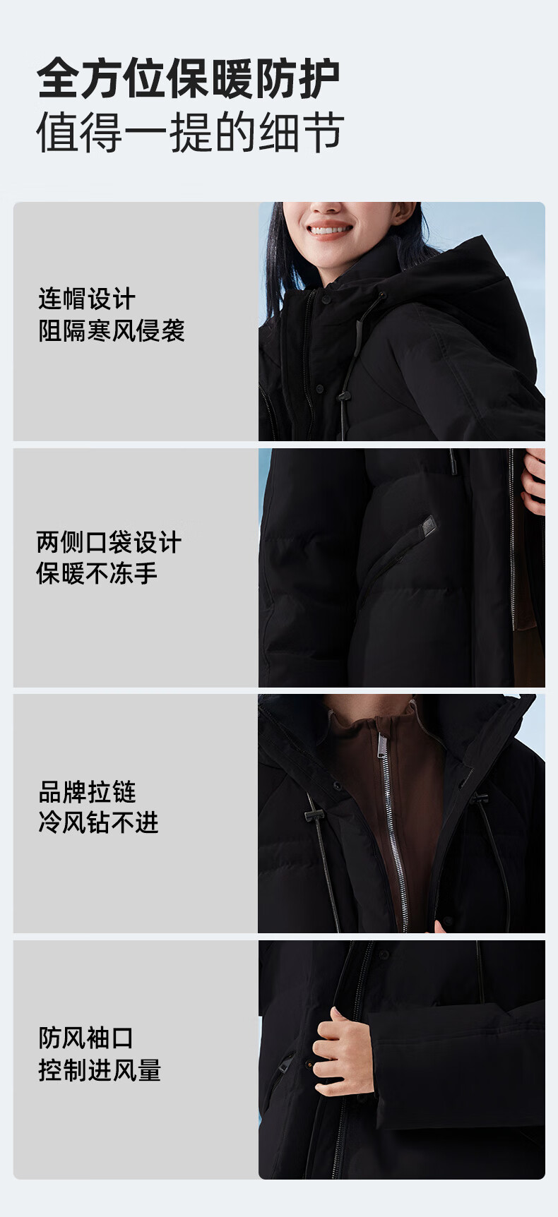 鸭鸭(YAYA)【王一博同款】户外冲锋衣羽绒服女冬季防寒运动三合一情侣厚外套 青光黑色 L (175)