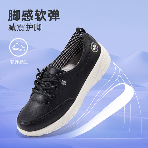 舒悦妈妈鞋软底软面舒适小皮鞋