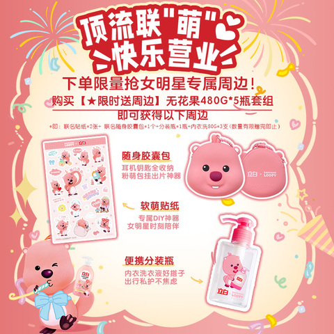 前3千名买2支送大师爆香珠2颗*3袋,买5支装送LOOPY联名款分装瓶*1个+内衣洗80g,官方立减7.8元+券15元+88vip省2.1元+淘金币省0.64元+限时红包2元后约37.16元!叠加消费券后32.5元更实惠!内衣内裤洗衣液!弱酸性配方~7大0添加,强效去血渍~有效除菌除螨,48小时长效抑菌!