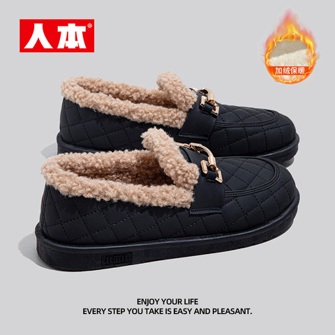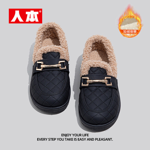 2026新款人本豆豆鞋女,秋冬加绒加厚设计,柔软舒适,一脚蹬方便穿脱,毛毛内里保暖升级,适合日常通勤和休闲穿搭。