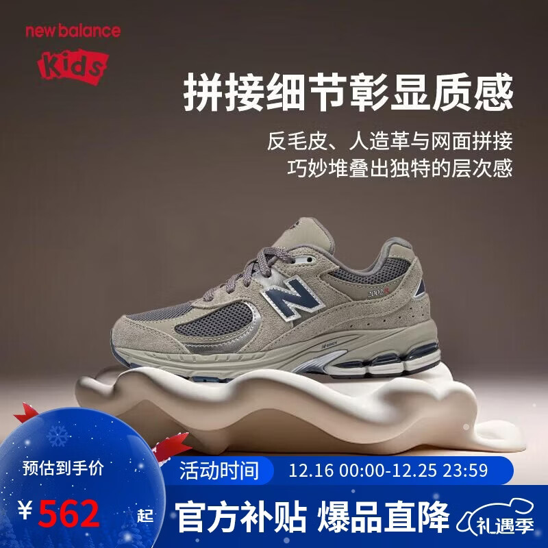 NEW BALANCE童鞋儿童男女秋季透气复古灰色休闲运动鞋GC2002R0 36码