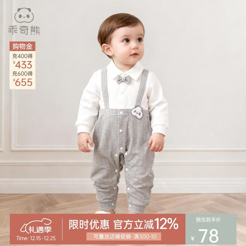 乖奇熊绅士风男宝宝假两件长袖连体衣春秋冬季婴儿保暖哈衣爬服周岁礼服