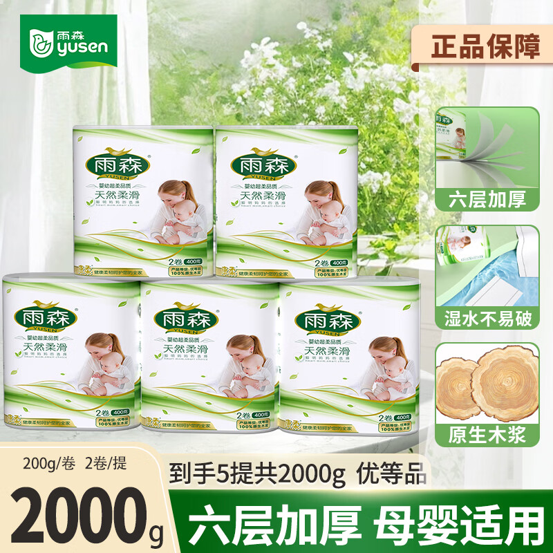 雨森(YUSEN)卷纸母婴6层加厚柔韧亲肤妇婴适用 无芯厕所经期适用 6层 200g/卷*10卷 【共5提】活动款