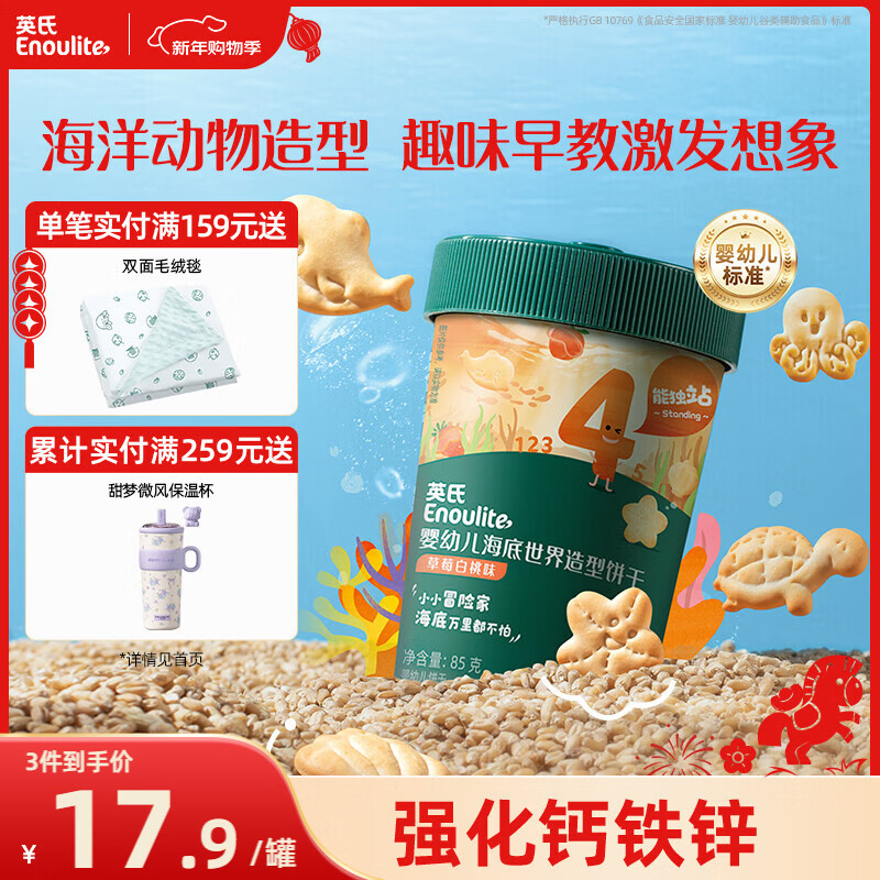 英氏(Engnice)婴幼儿海底世界饼干草莓白桃味 婴儿零食辅食营养饼干宝宝零食85g