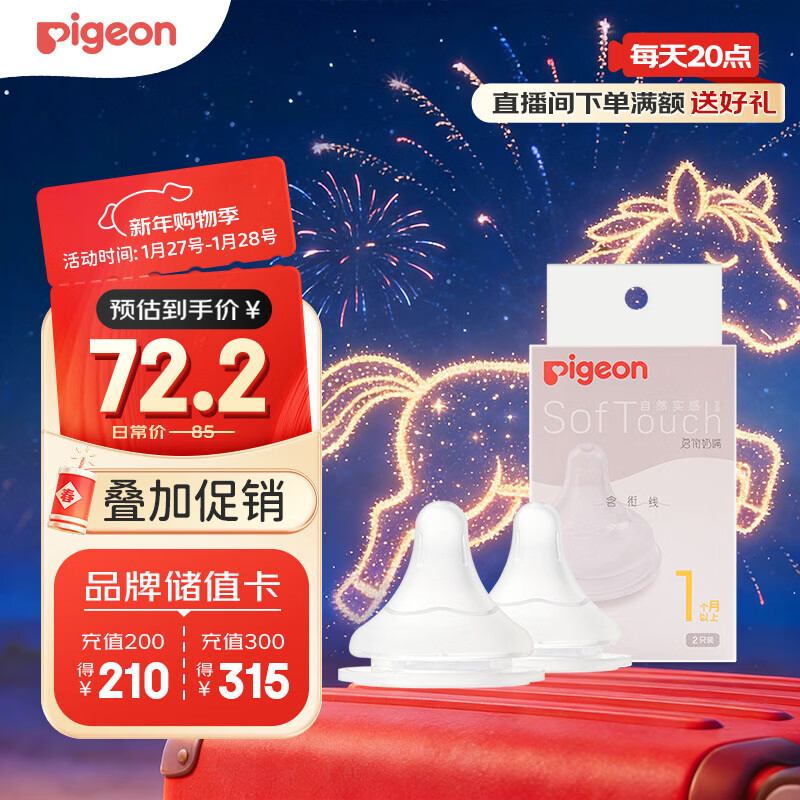 贝亲(Pigeon)自然实感第3代启衔奶嘴 宽口径奶嘴 S号-2只装 1个月以上 BA134
