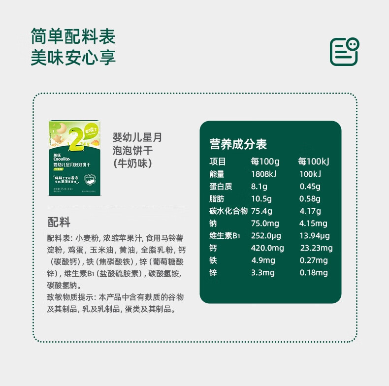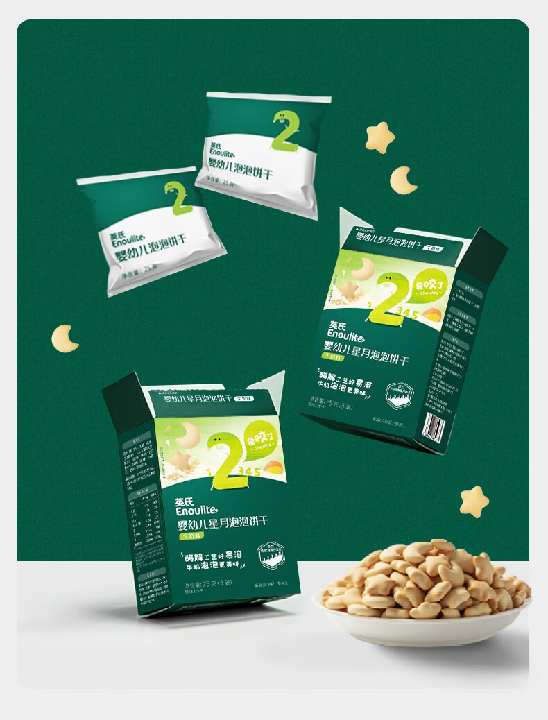 英氏(Engnice)婴幼儿星月泡泡饼干牛奶味 婴儿零食儿童零食磨牙饼干宝宝零食75g