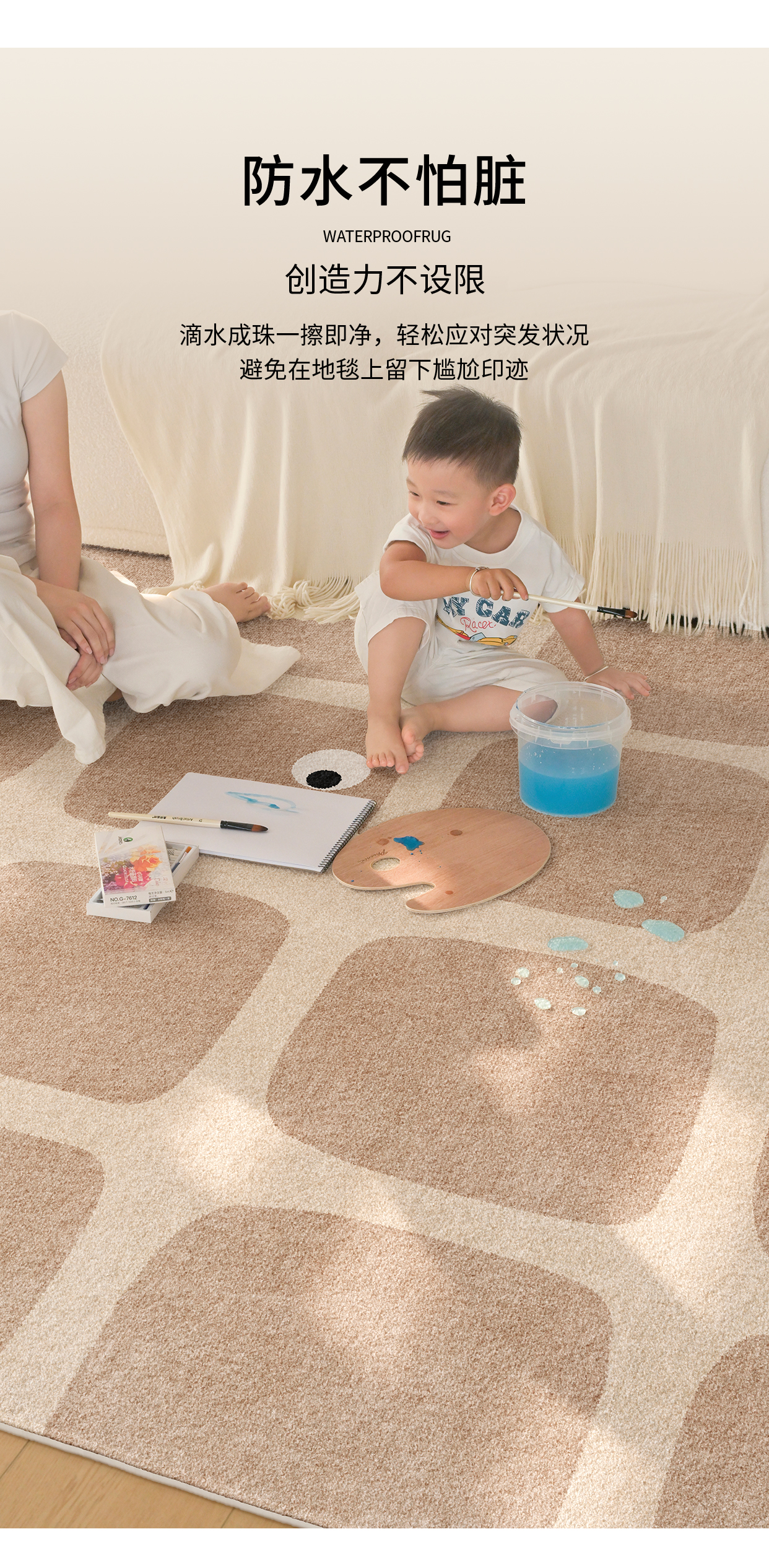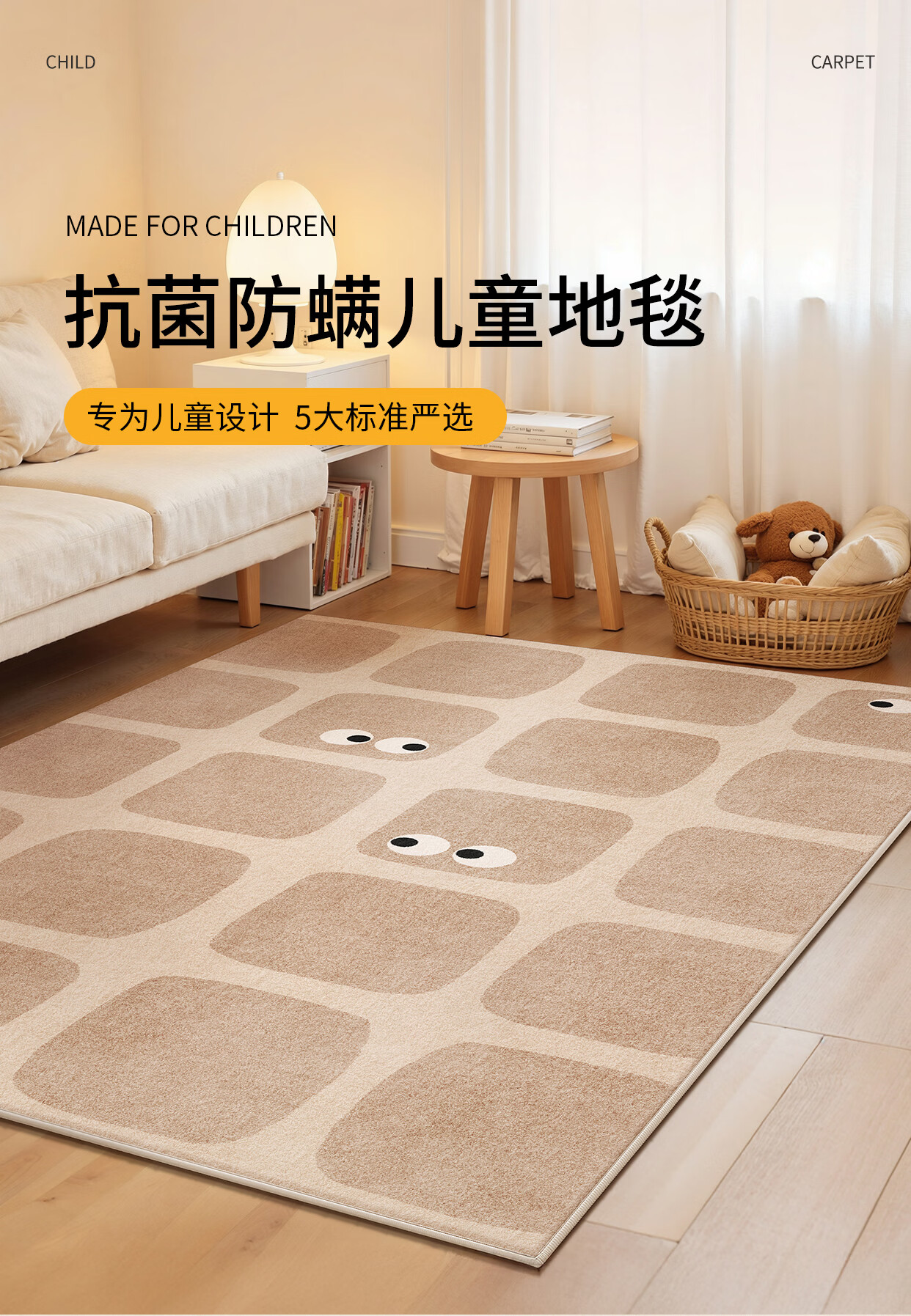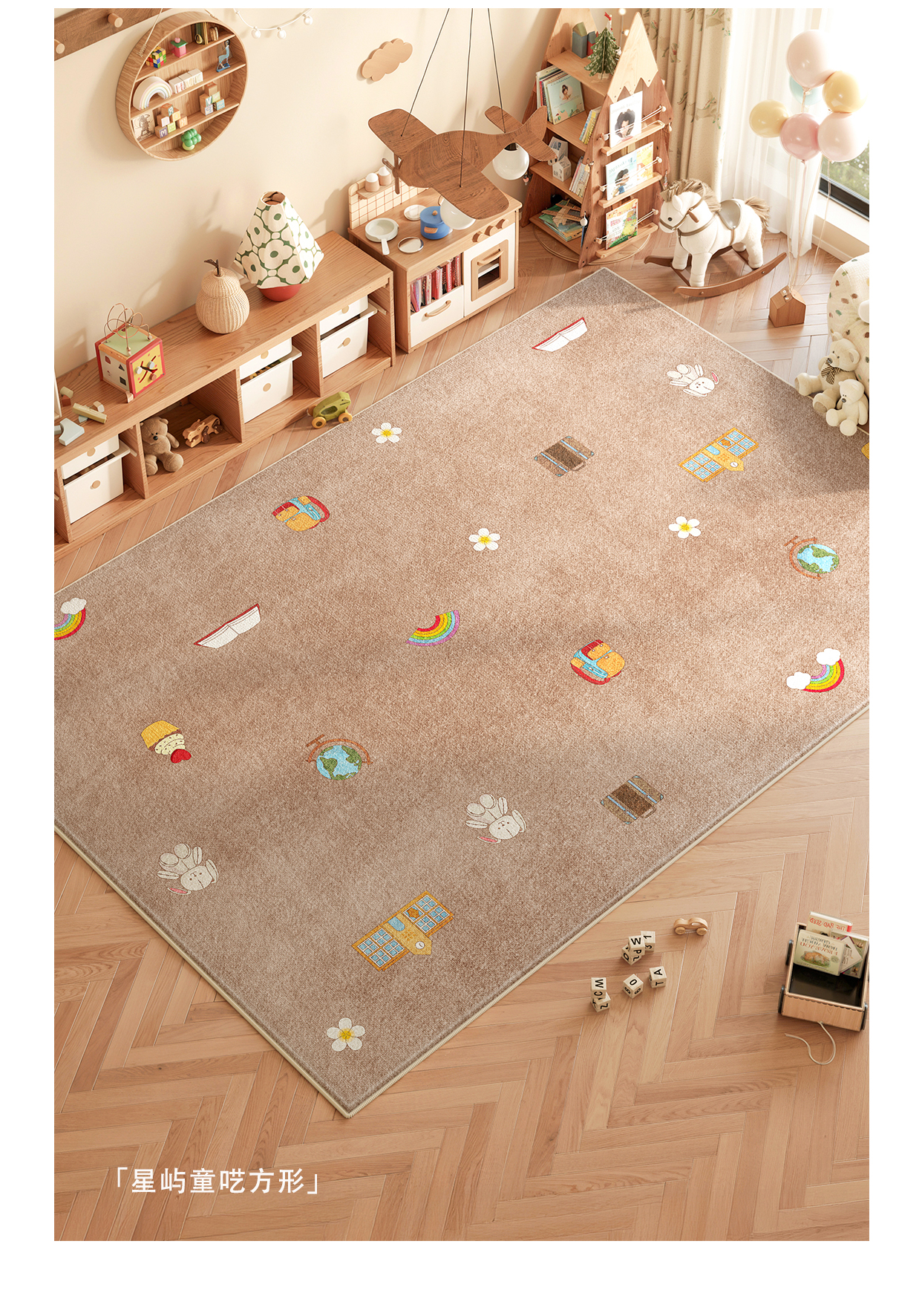 Y U-LIVE地毯客厅地毯卡通儿童房地毯婴儿爬爬垫防摔加厚宝宝房免打理地毯 S仿羊绒-星屿童呓方形 180*280CM 【超级百搭 颜值在线】