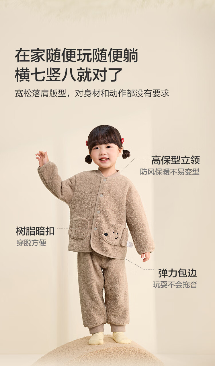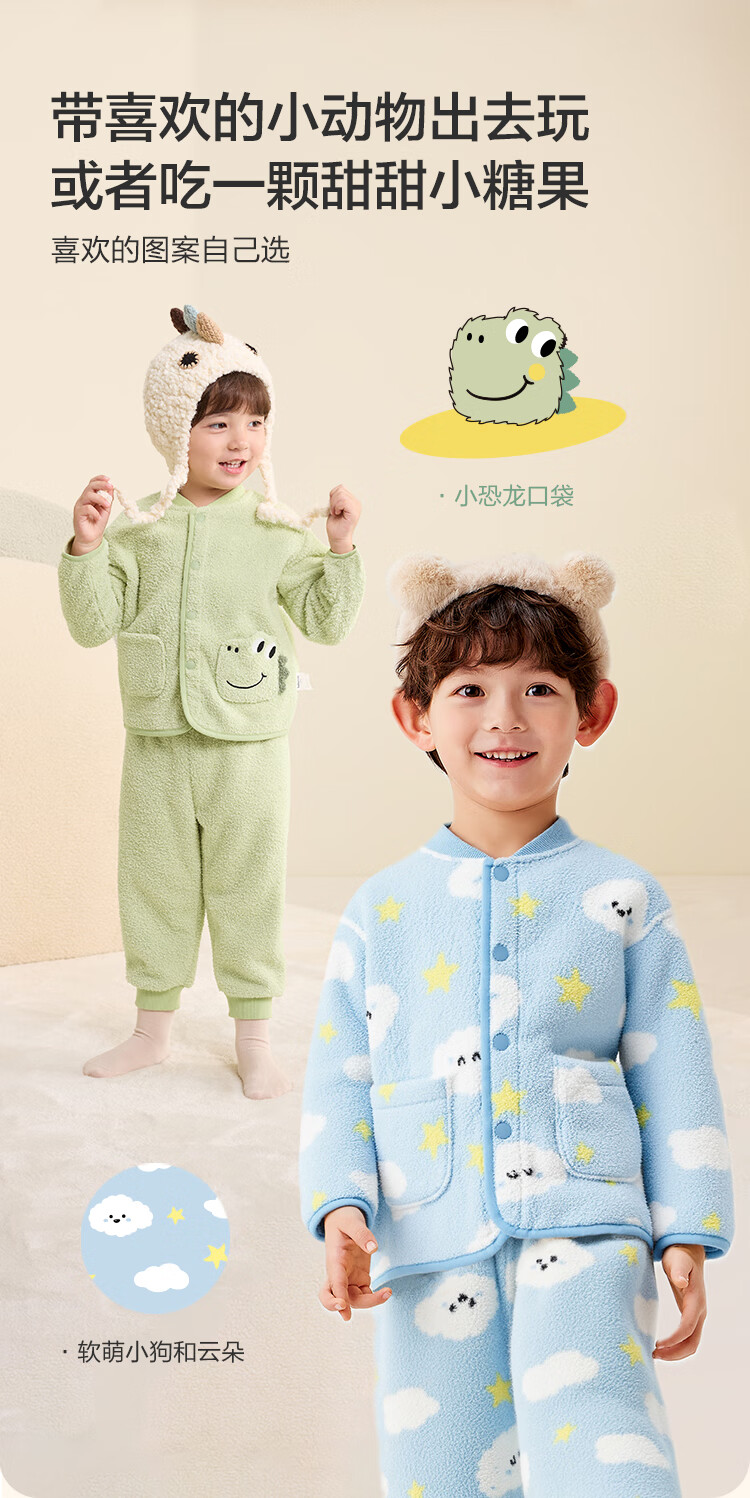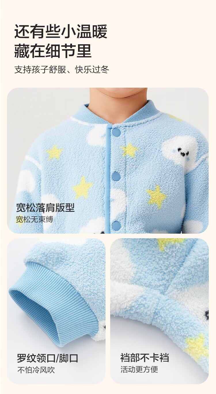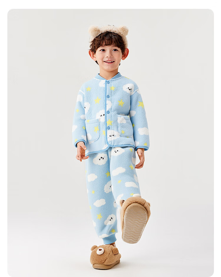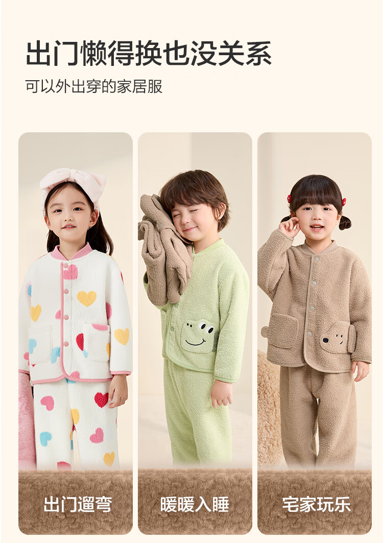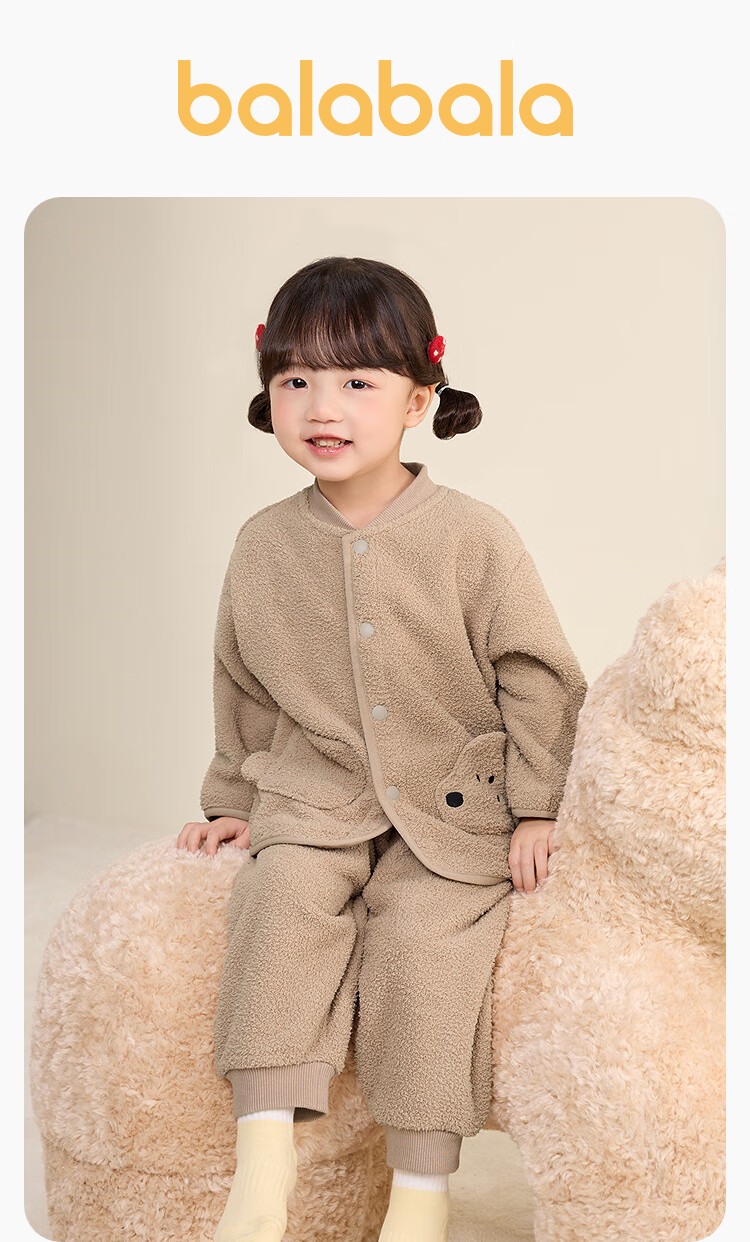 巴拉巴拉balaOne儿童家居服套装男童女童冬季新款半边绒保暖