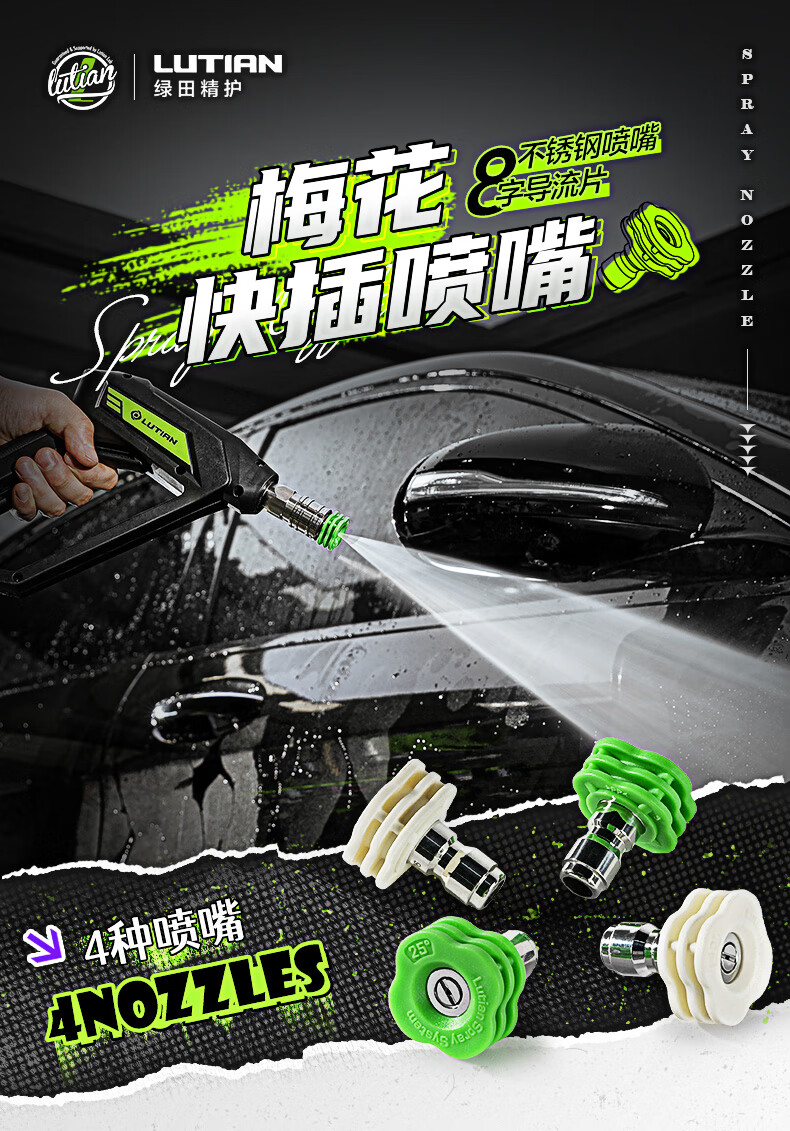 绿田(LUTIAN)快插喷嘴1/4快接式25度40度高压洗车机水枪头家商用专用配件