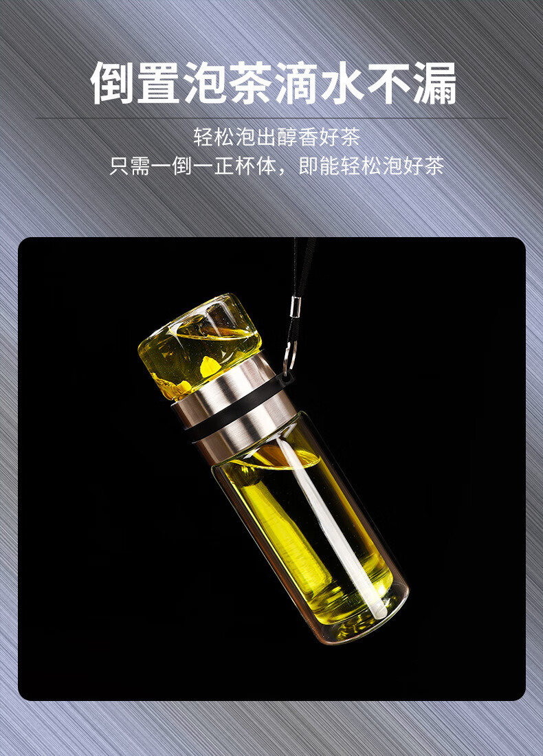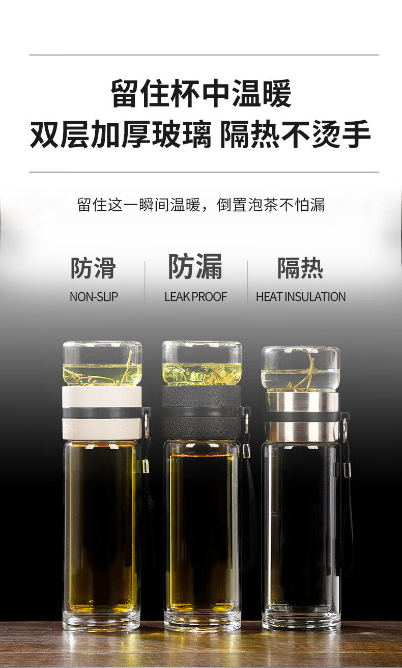 茶水分离杯泡茶杯保温双层创意玻璃杯女士大容量过滤水杯现货 500ml 黑色单层(1个
