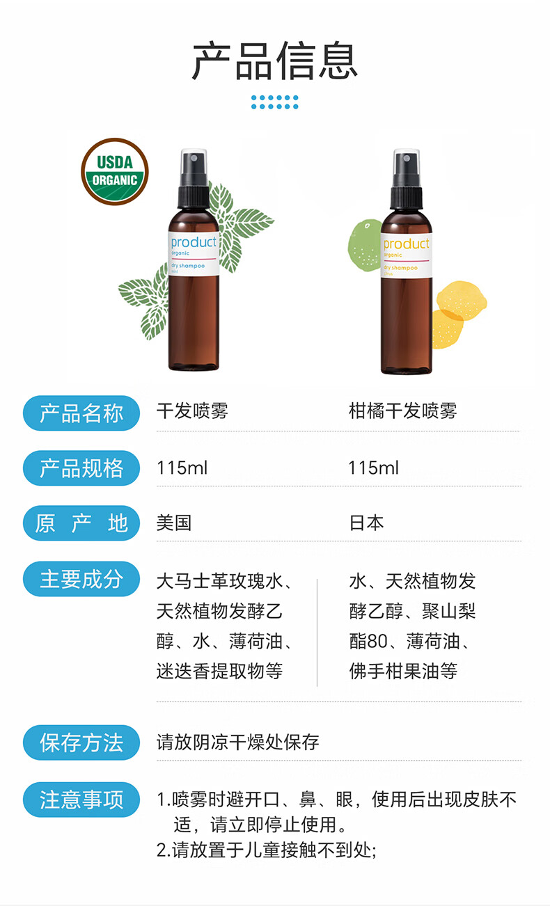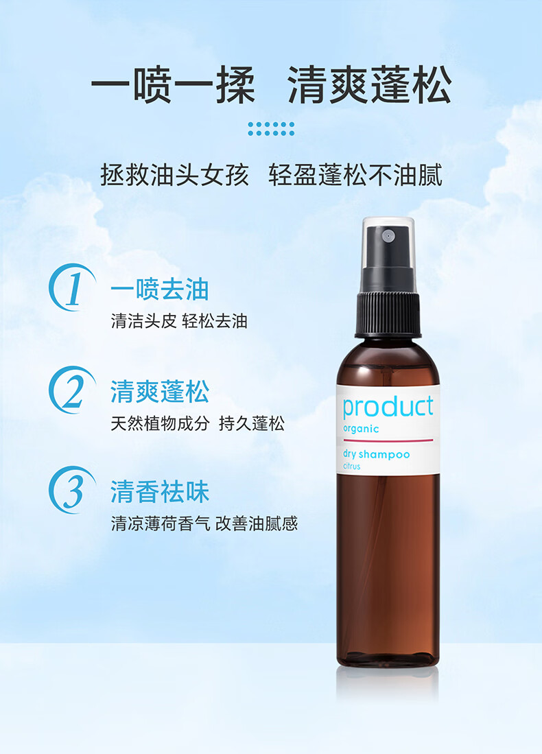 product普柔达干发喷雾免洗去油持久蓬松秀发喷雾115ml(柑橘味) 柑橘干发喷雾115ml