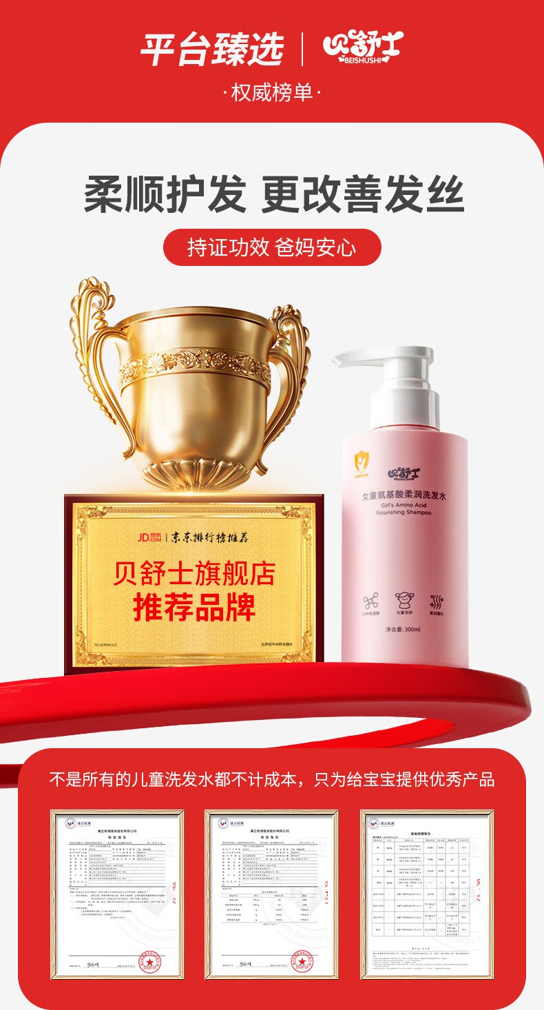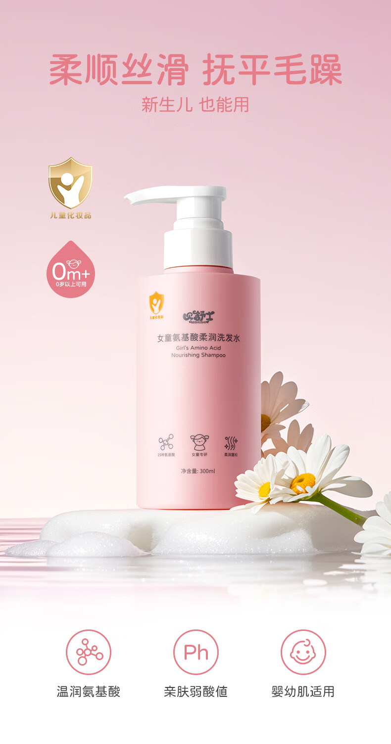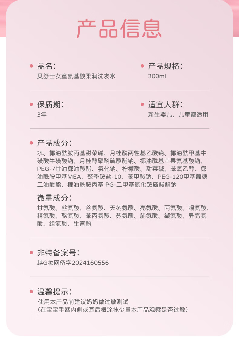 贝舒士儿童宝宝洗发水1-3岁3-6岁6-12岁以上氨基酸洗发水男孩小学生 【氨基酸】女童洗发水300ML