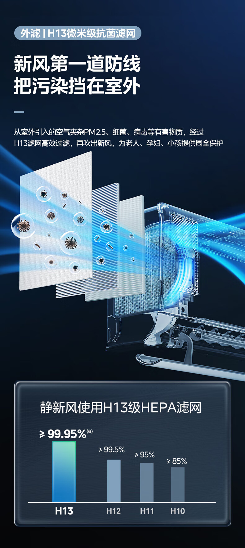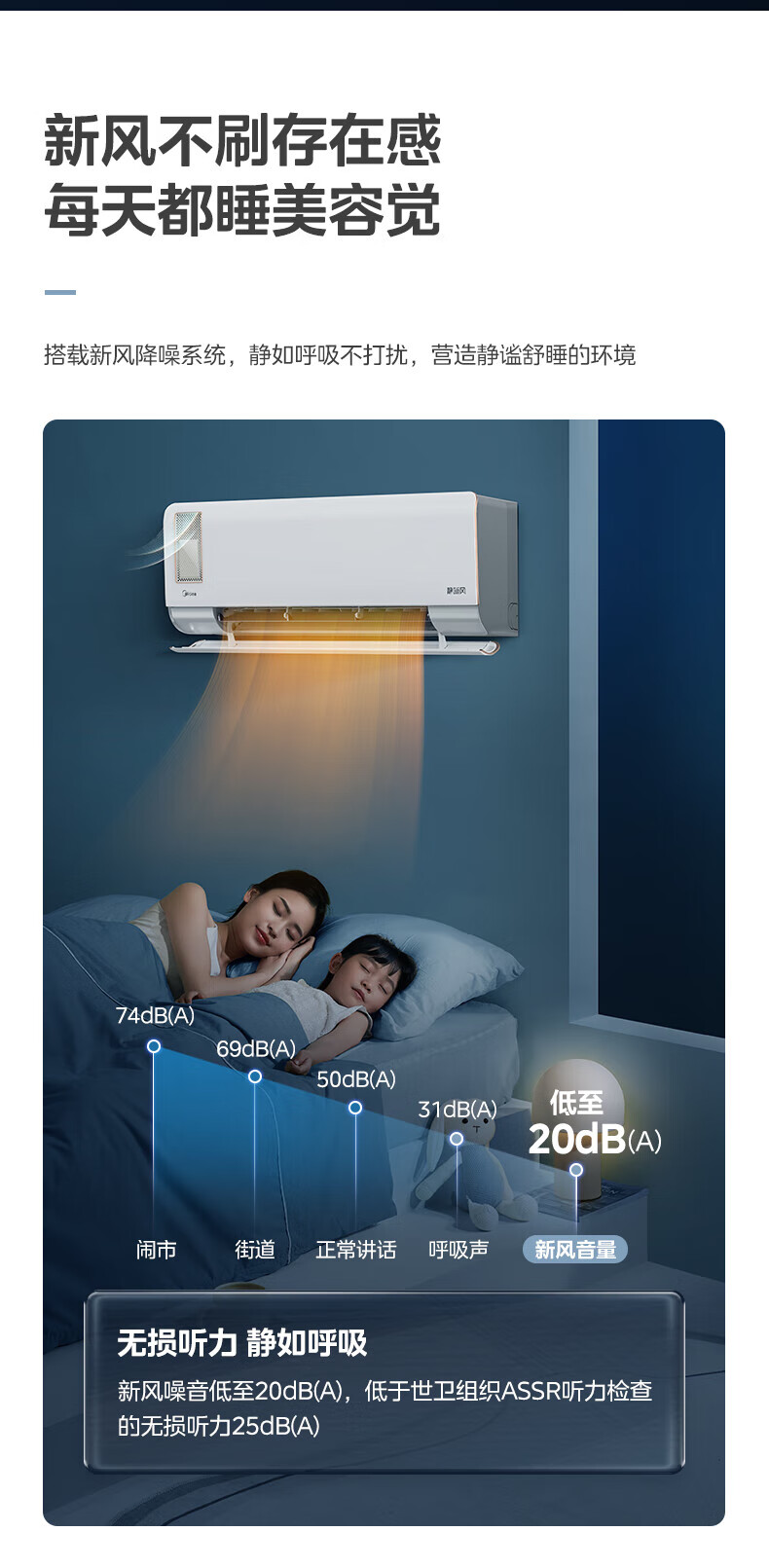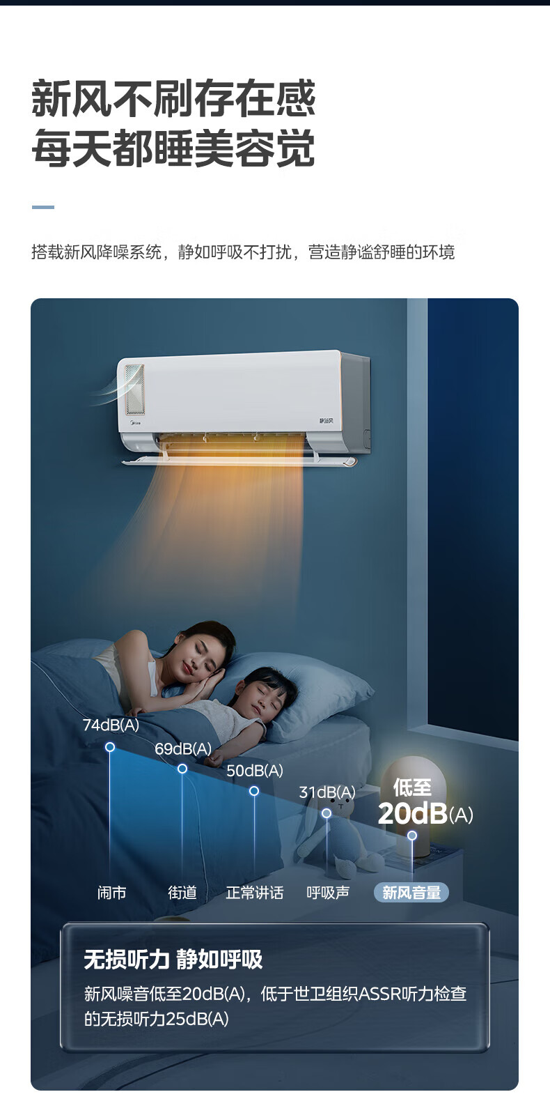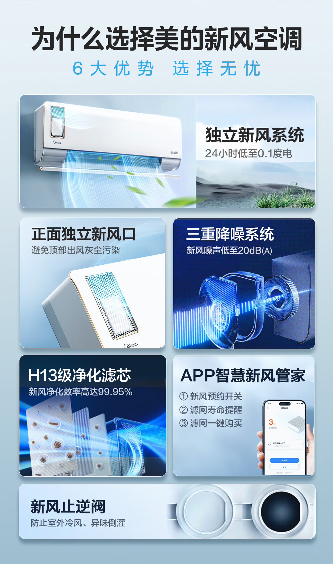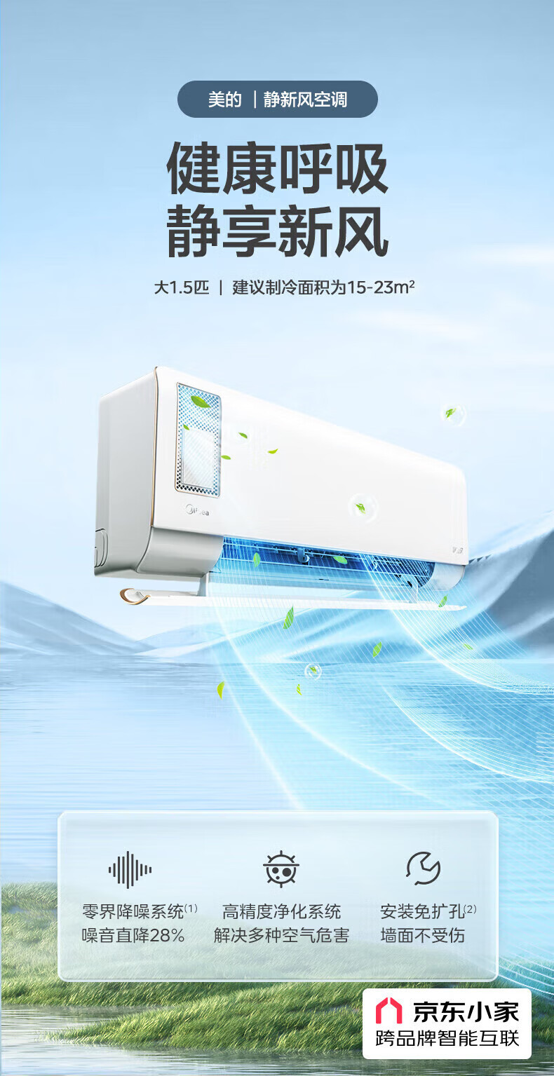 美的(Midea)静新风空调挂机大1.5/1匹 健康风新风 新一级能效 变频冷暖 空调补贴20%以旧换新 壁挂式节能低噪 大1匹 一级能效静新风-健康净化-撩客服享底价