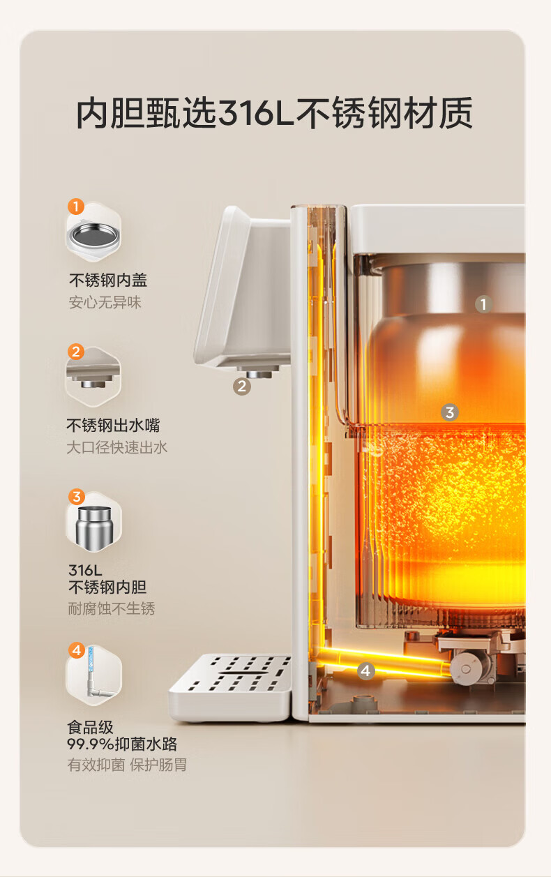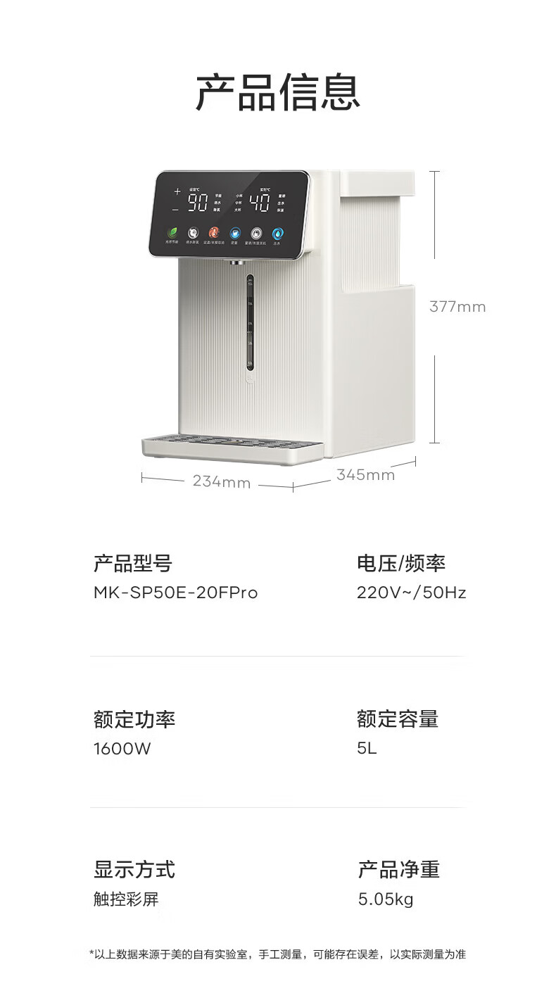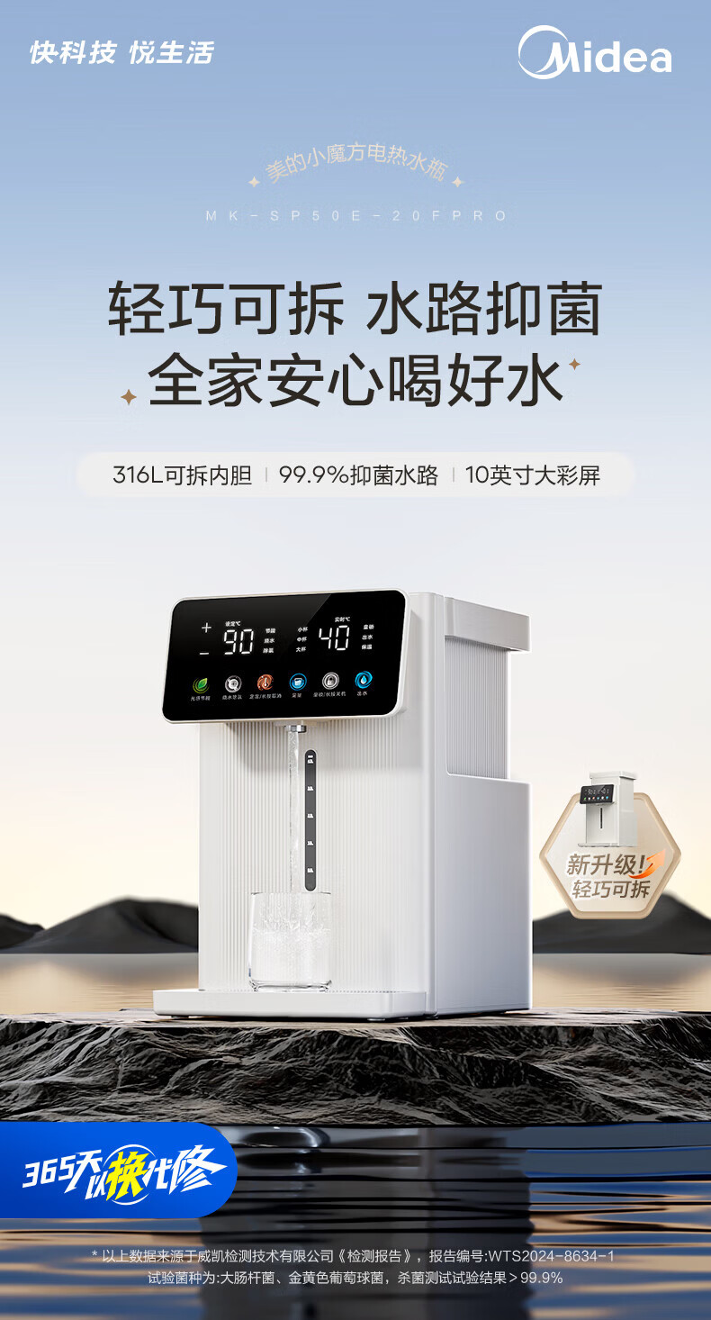 美的(Midea)小魔方电热水壶 家用5升大容量烧水壶电热水瓶316L不锈钢抑菌水路保温恒温控温家用一体可拆饮水机 5L 【大功率1600W】分体可拆水箱