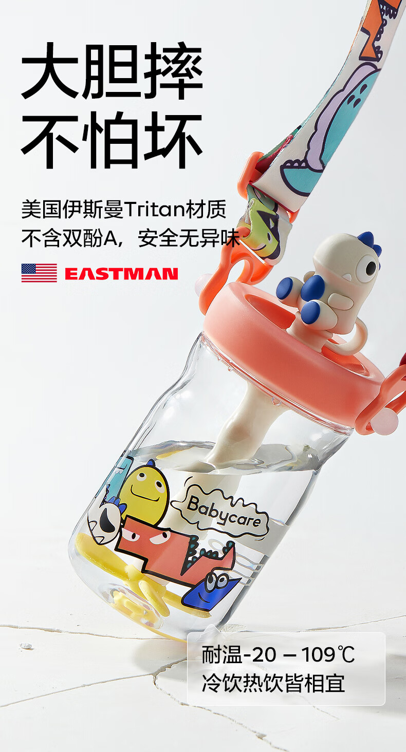 babycare儿童水杯吸管杯大宝宝直饮杯幼儿园水壶500ml维卡紫上学专用