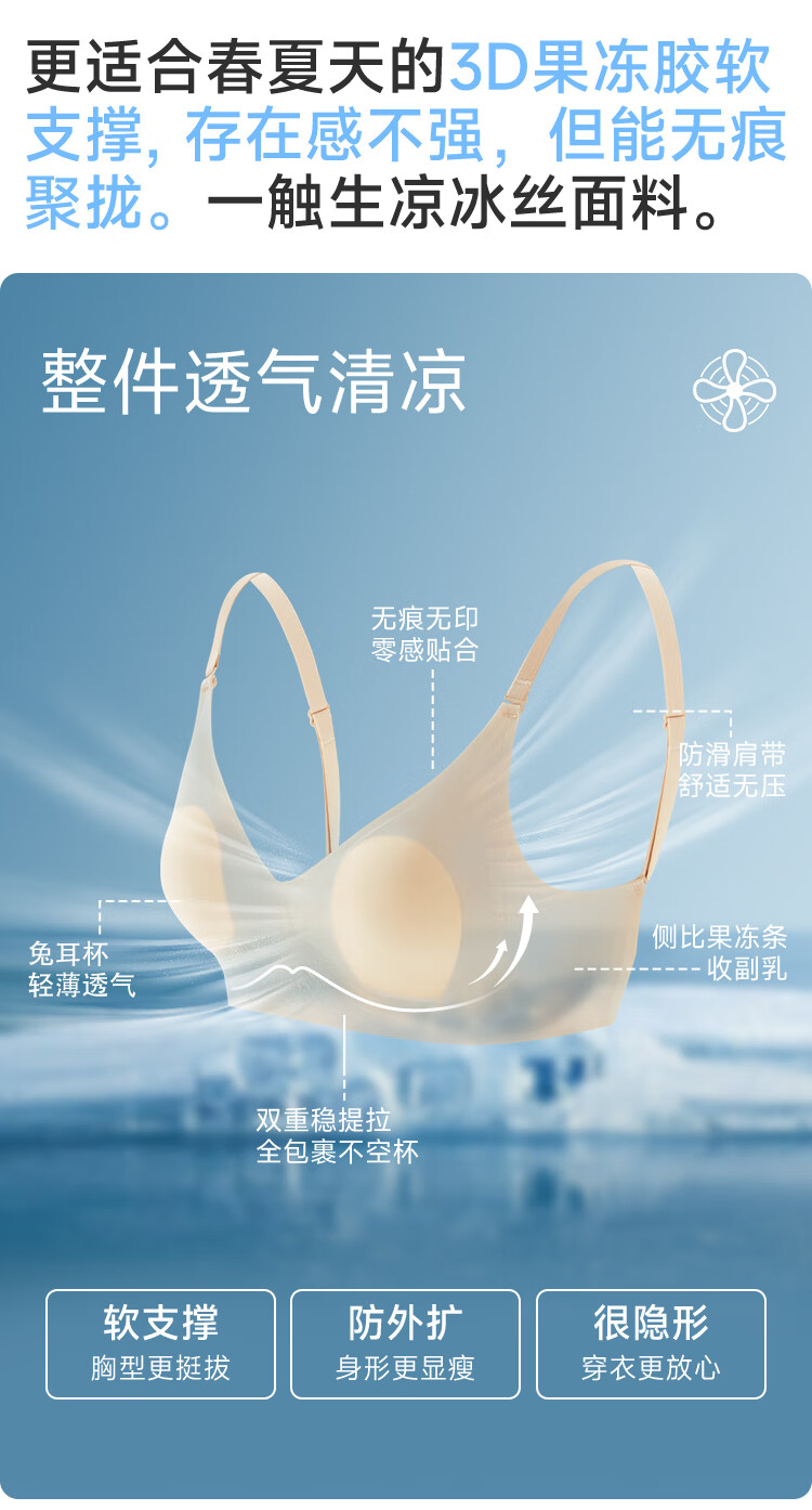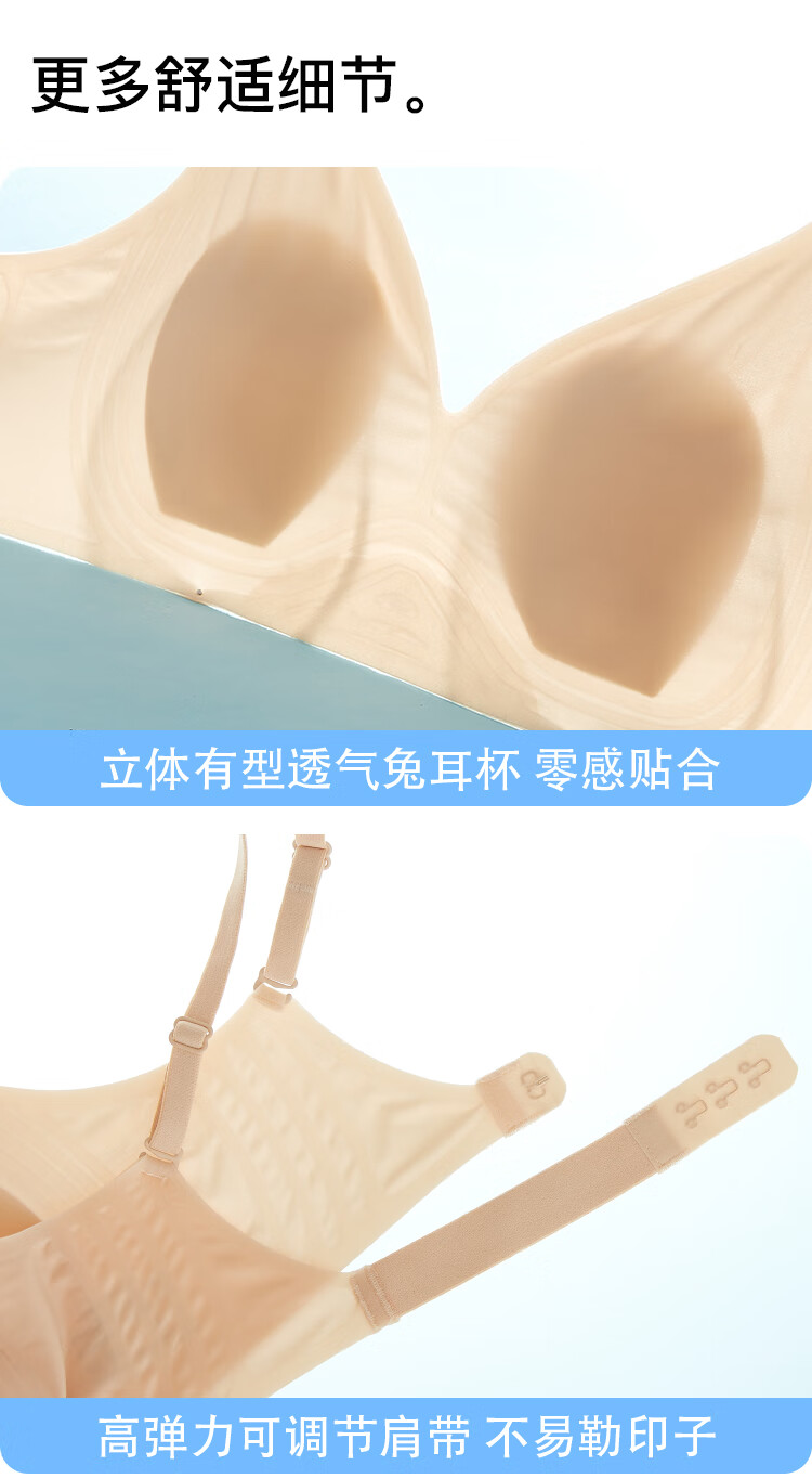 古今(GUJIN)内衣女无钢圈聚拢收副乳防下垂文胸凉感无痕兔耳杯美背超薄款 暖瓷肤 一衣两穿 L 建议36/80ABC 适用105-120斤