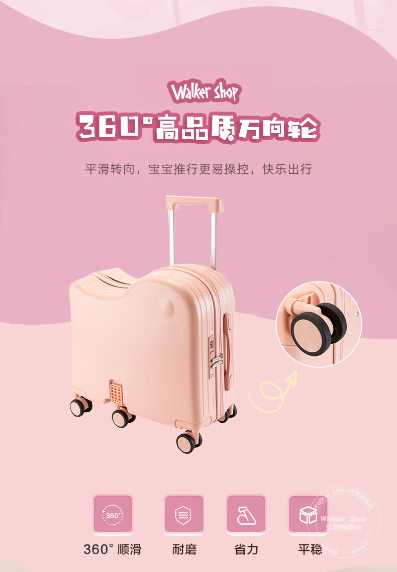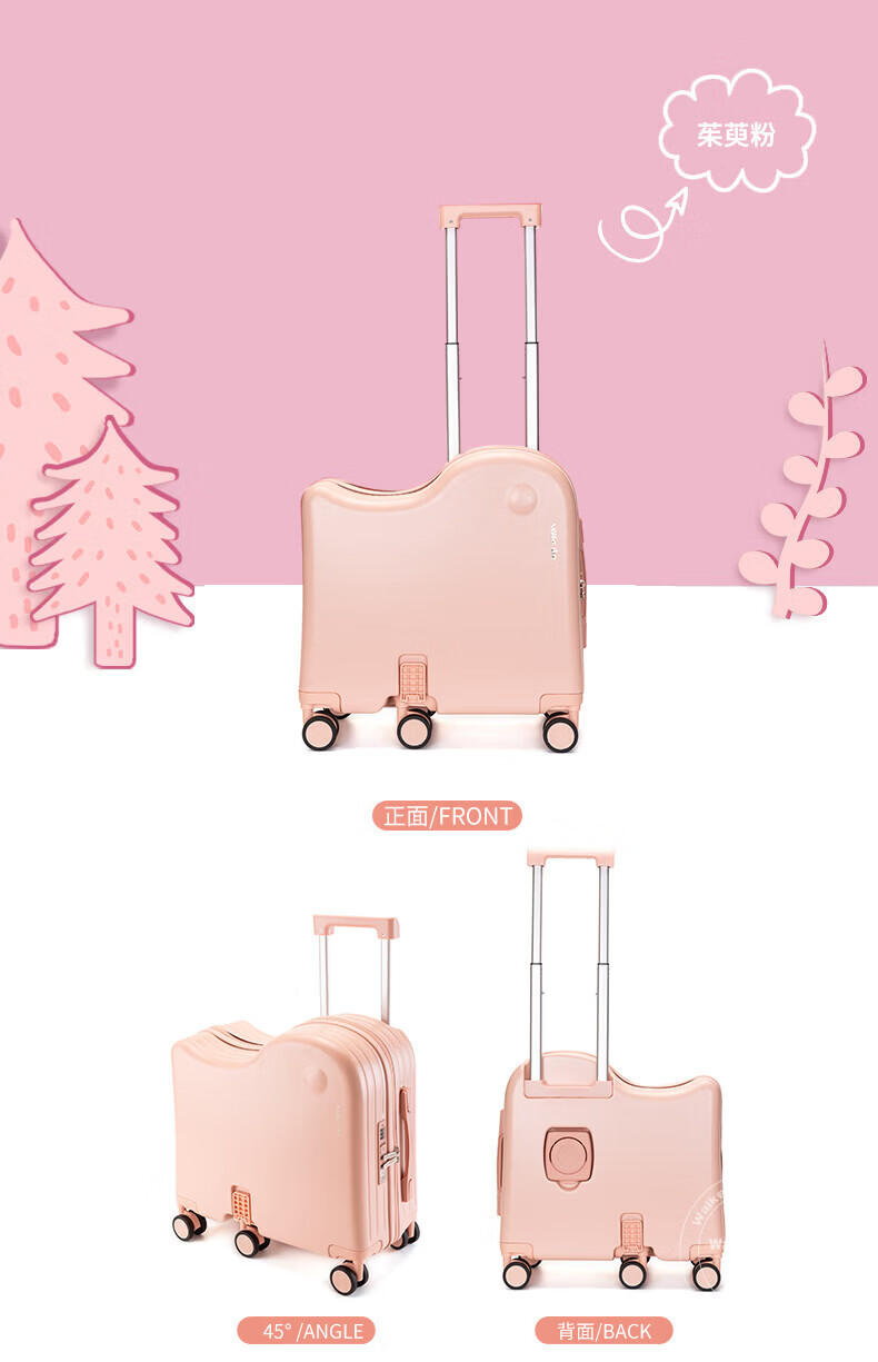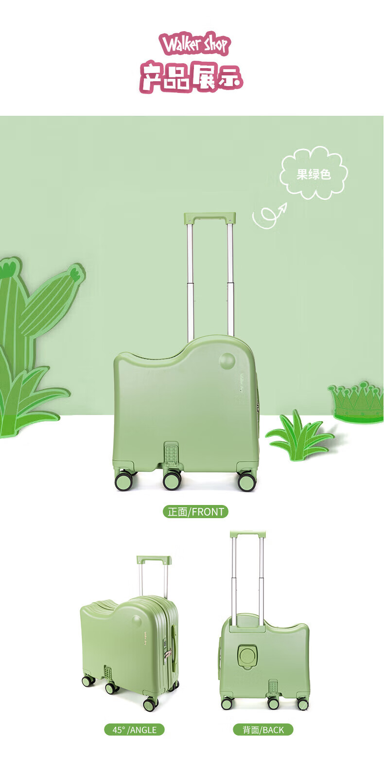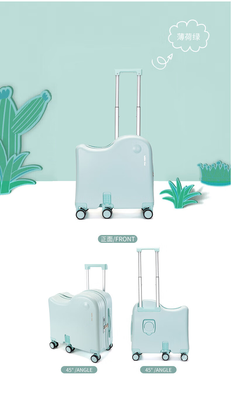 Walker Shop品牌儿童行李箱可坐可骑6-12岁轻便小型登机箱拉杆箱男女旅行箱 果绿 18英寸 【可登机】